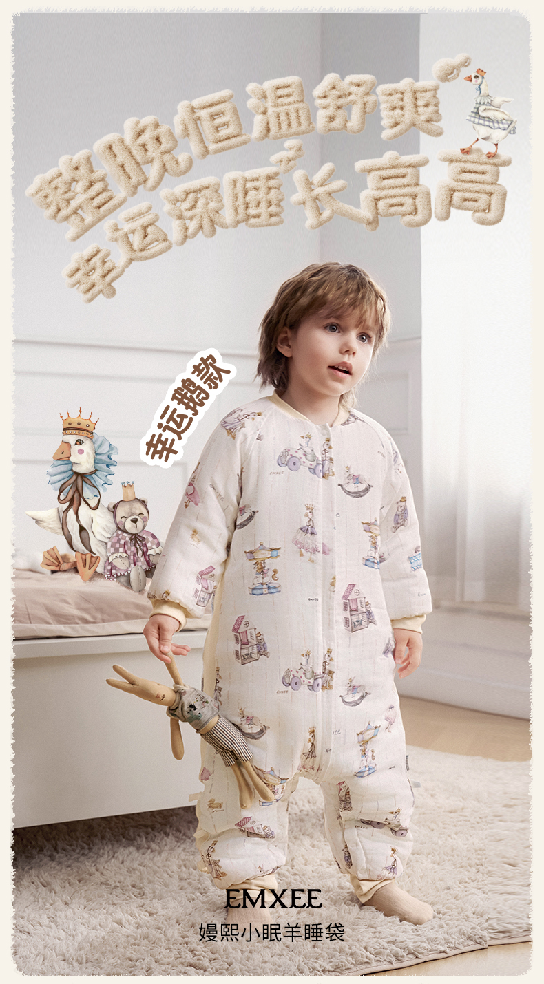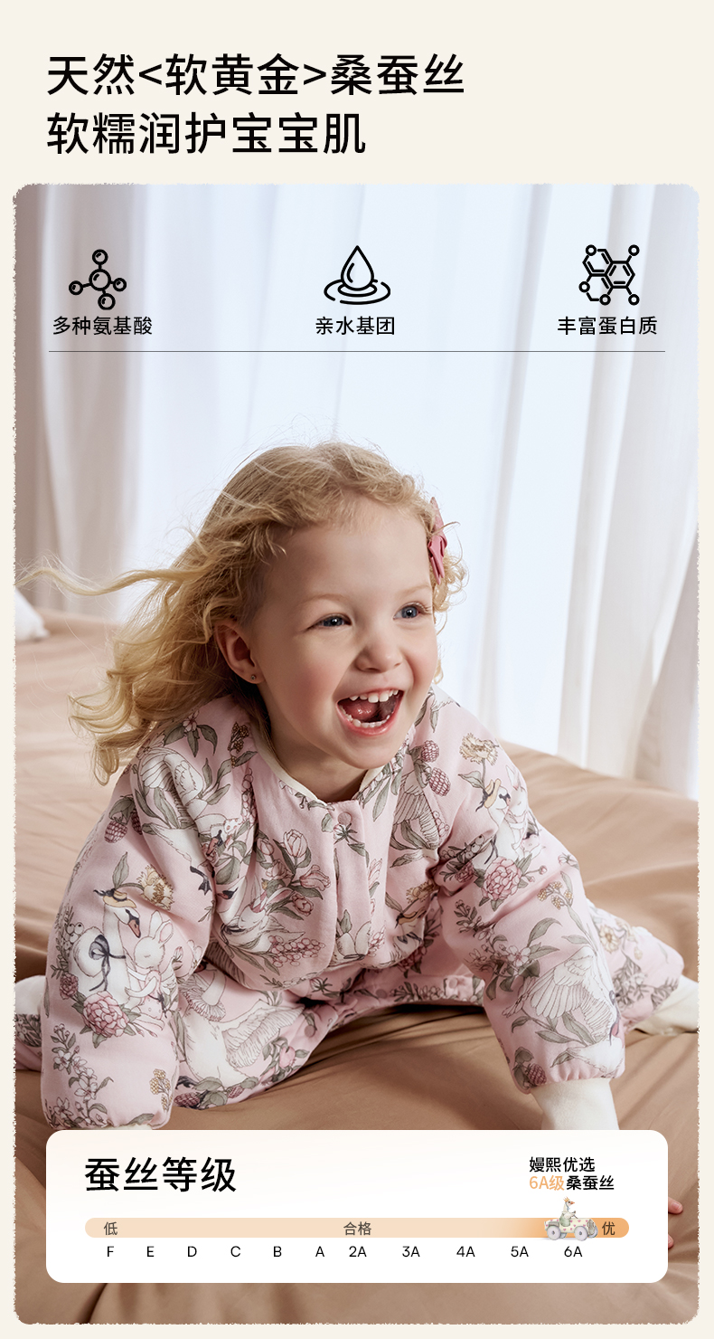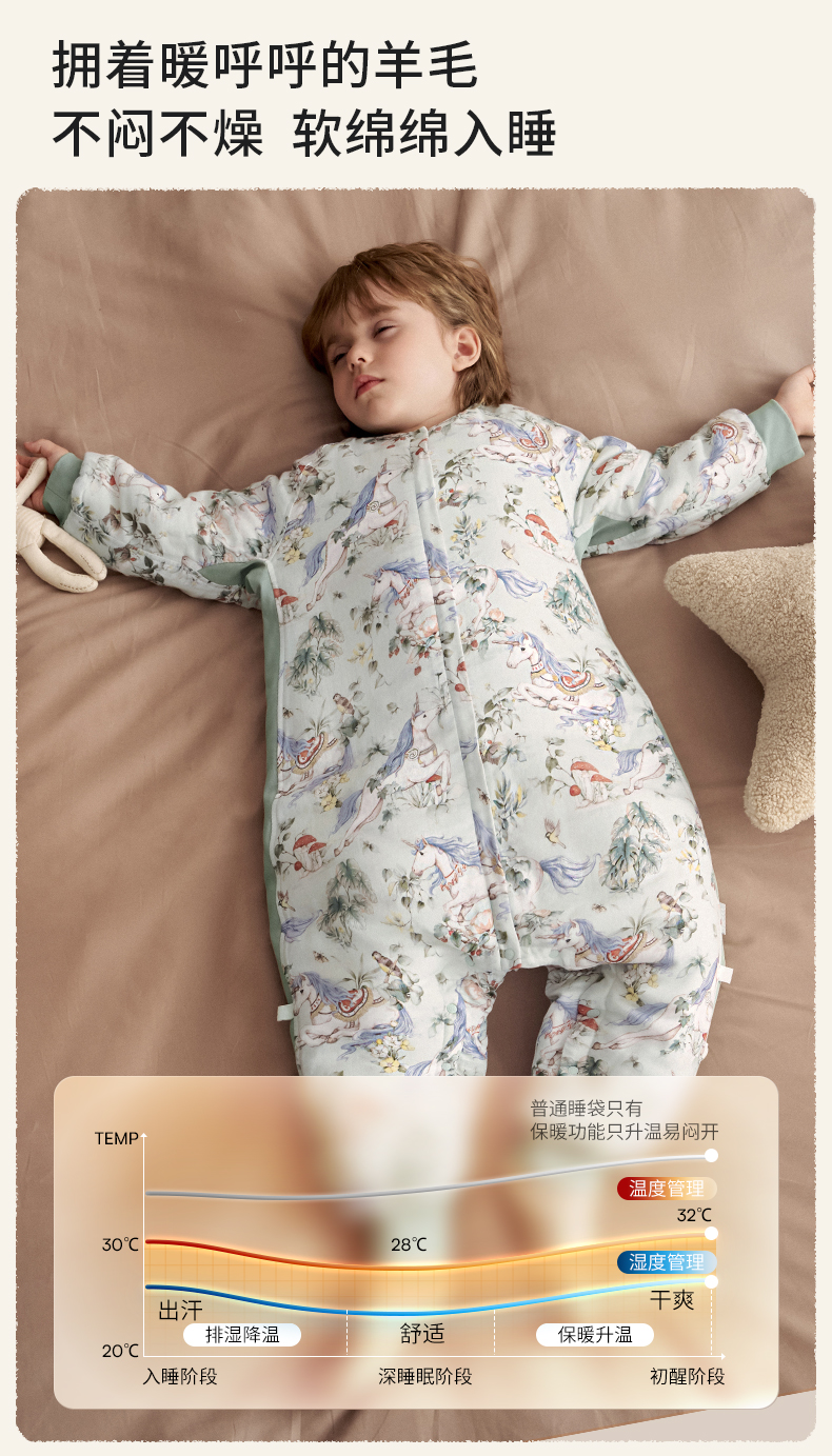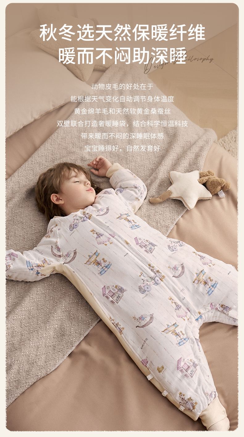 【宝宝安睡】嫚熙婴儿睡袋羊毛桑蚕丝宝宝睡袋儿童四季通用秋冬恒温分腿防踢被