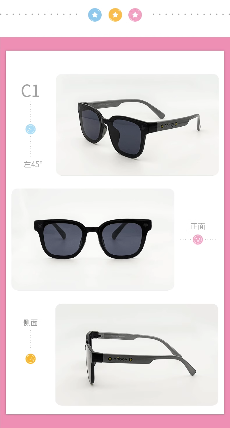 【2025年新品】ANBAY/安比儿童太阳镜防紫外线男孩墨镜高清遮阳镜2-10岁男童护目镜21257