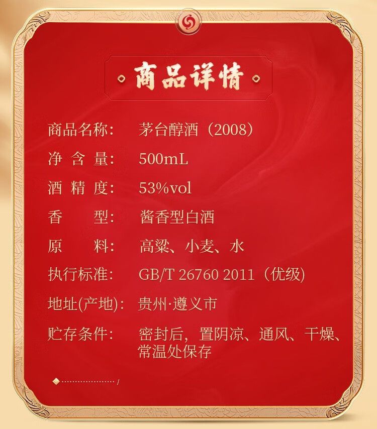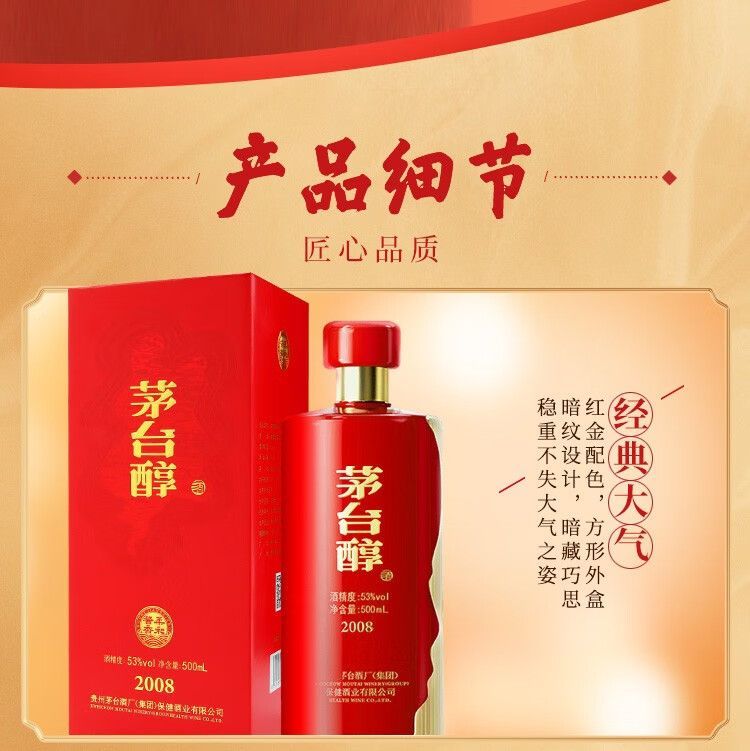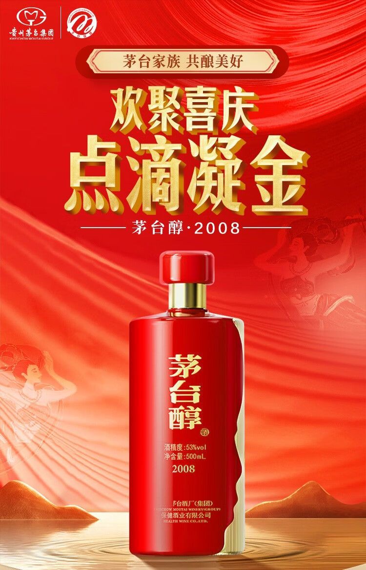2023年茅台醇2008 53度酱香型白酒 整箱500ml*6瓶包邮
