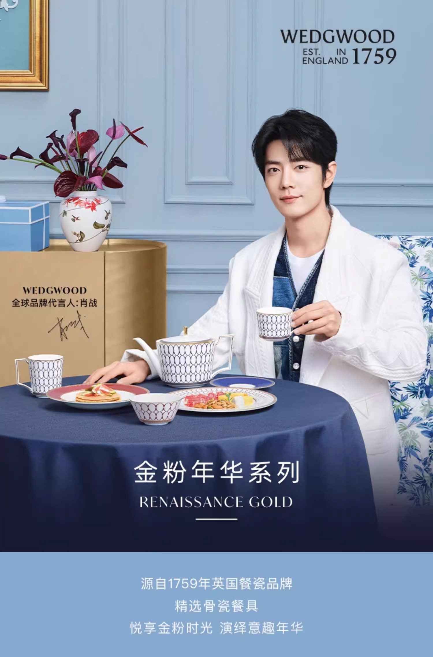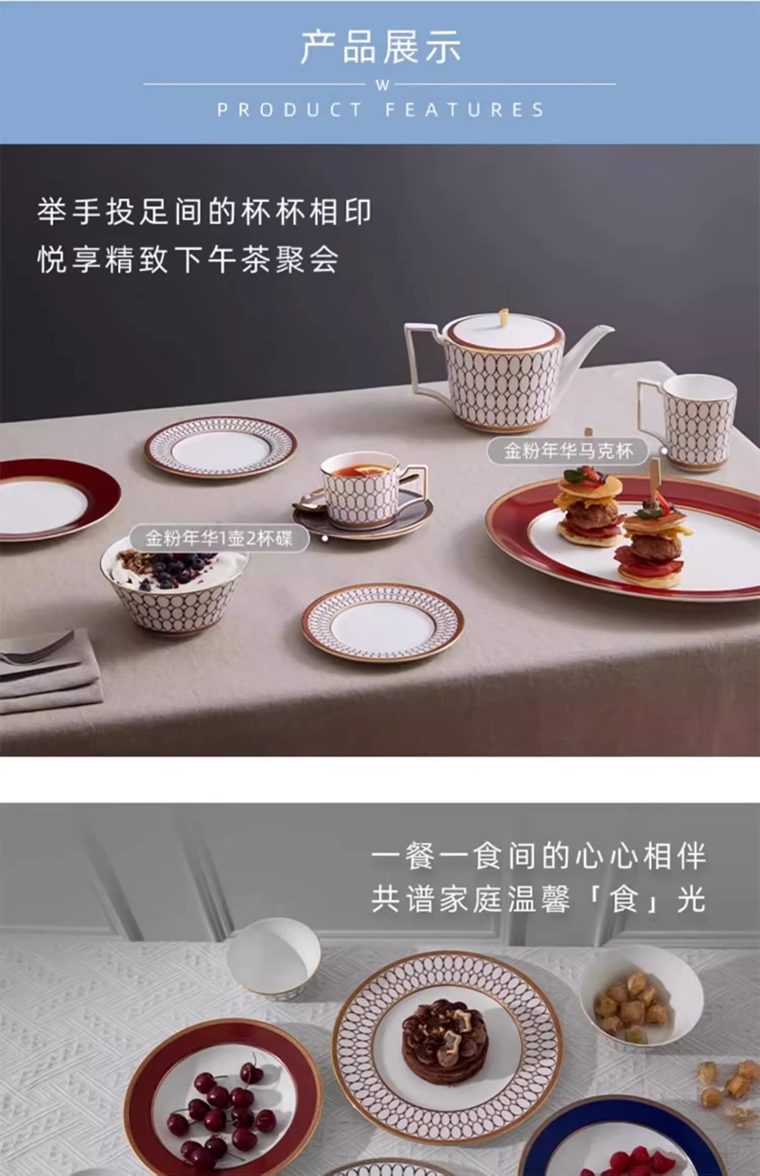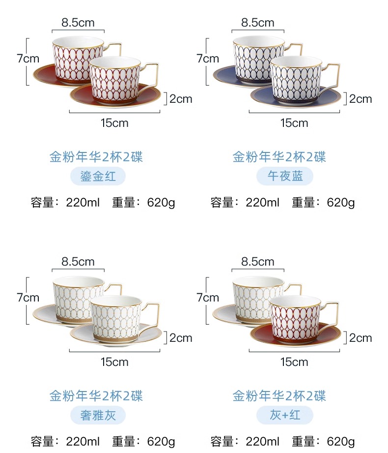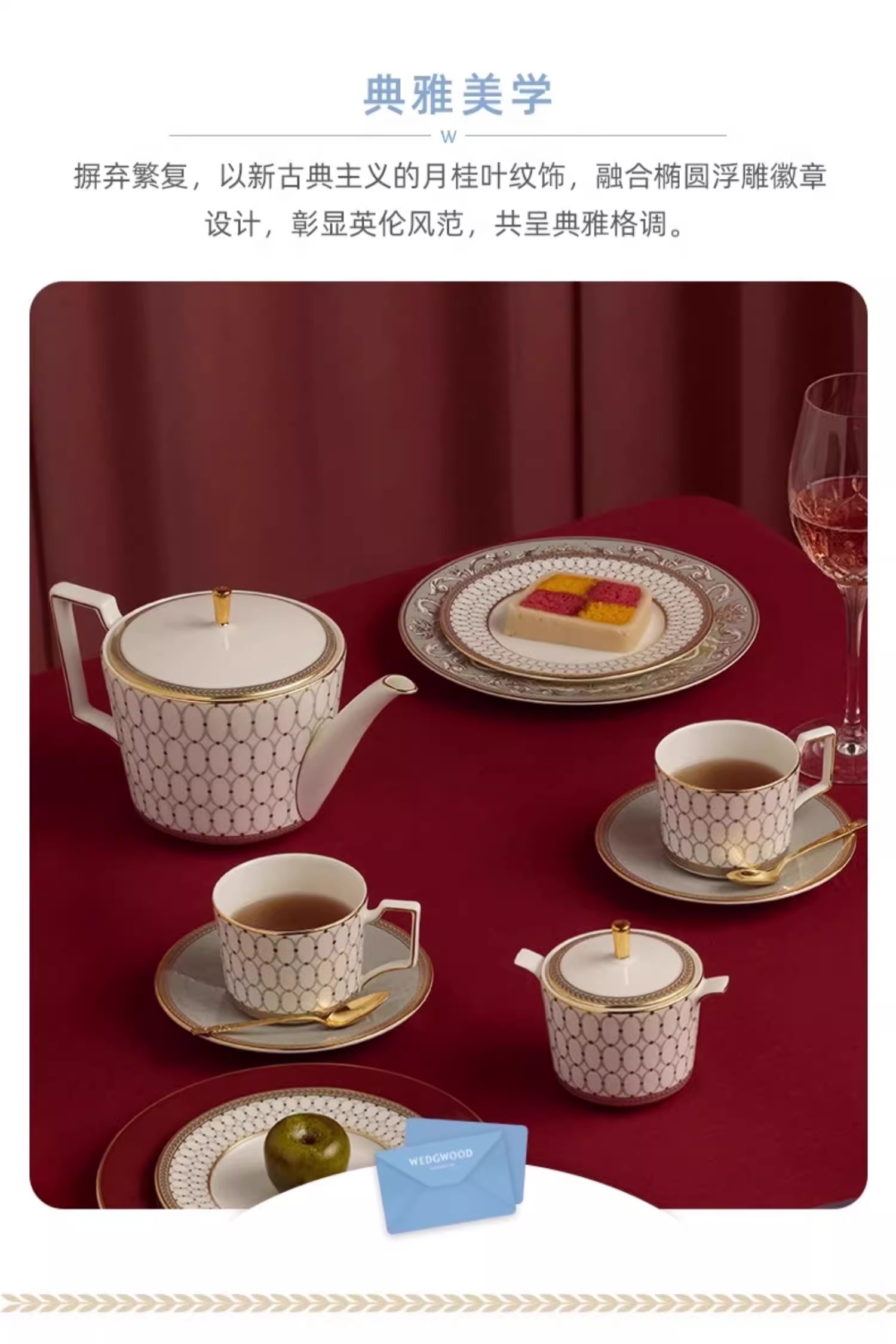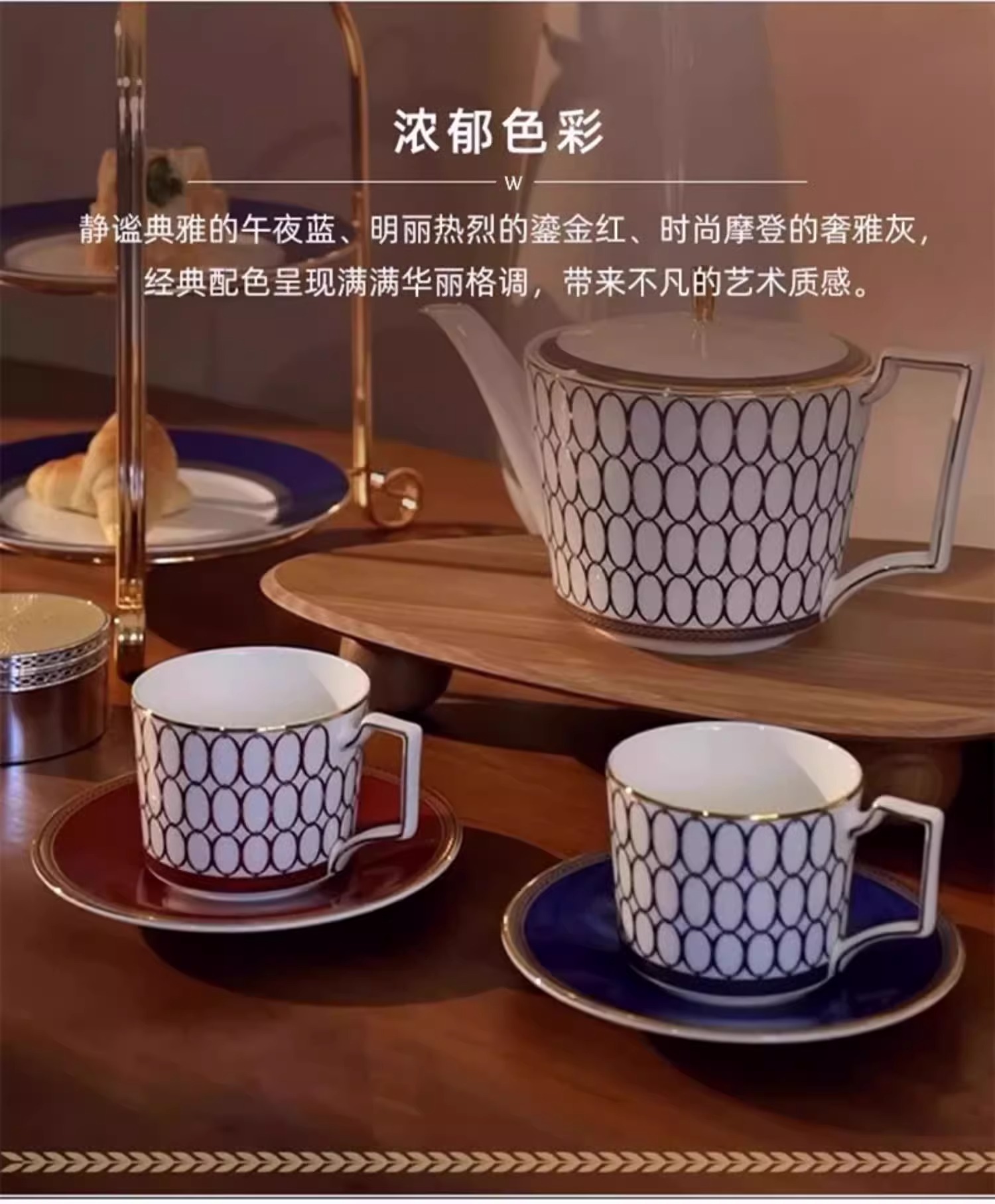 WEDGWOOD金粉年华2杯2碟骨瓷咖啡杯精致送礼威基伍德金粉年华婆金红+午夜蓝2杯2碟套装