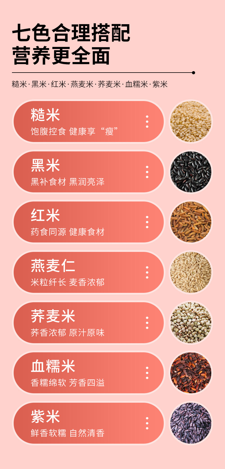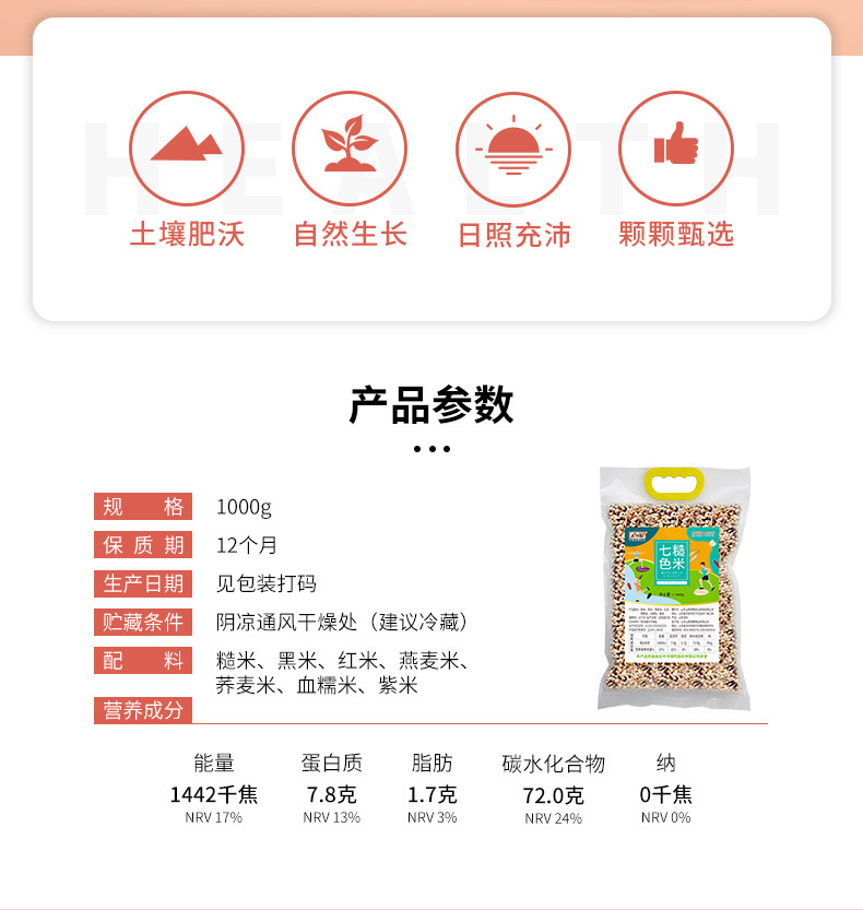 7种健康粗粮 颗粒饱满 色泽自然+1:1科学配比富含膳食纤维和多种维生素+高饱腹低升糖 低脂 低GI营养价值超高