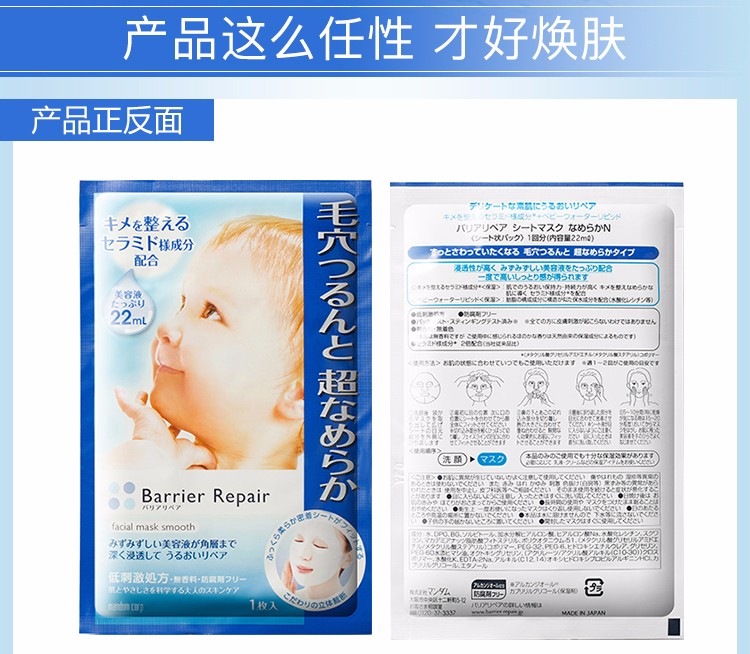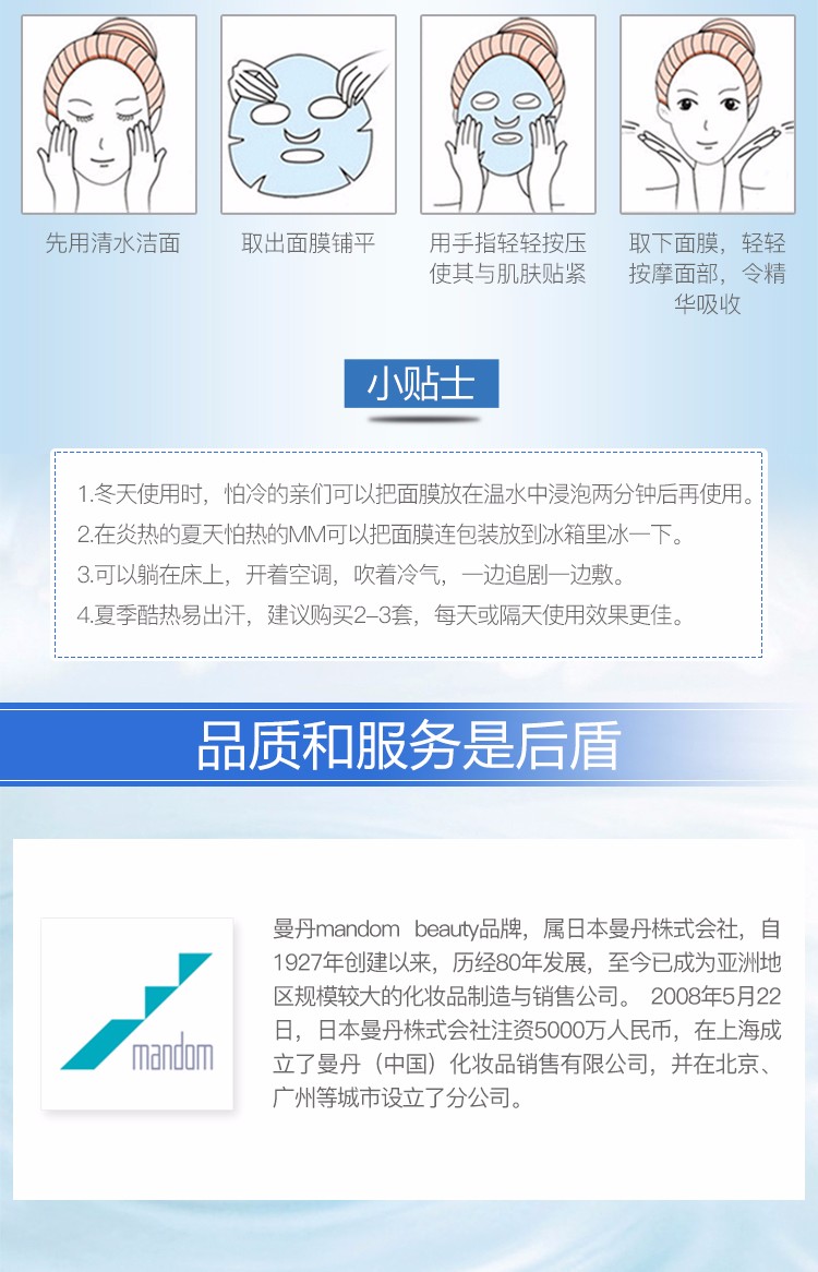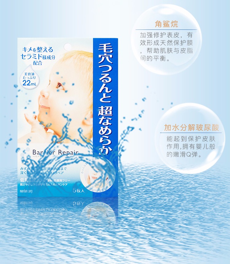 MANDOM曼丹 16版超滋润玻尿酸面膜 5片 蓝色 日本