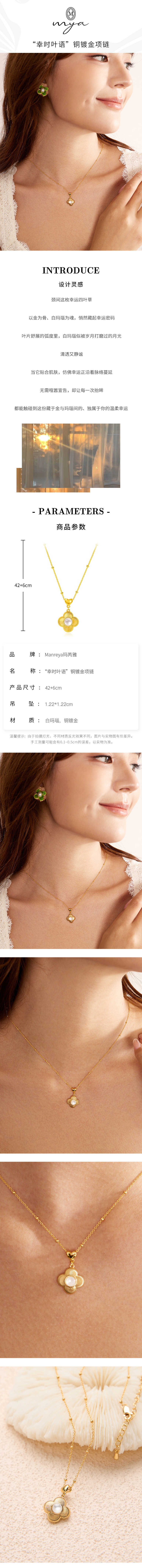 Manreya玛芮雅幸时叶语项链串珠颈链女四叶草吊坠经典玛瑙锁骨链| 长度:42+6cm