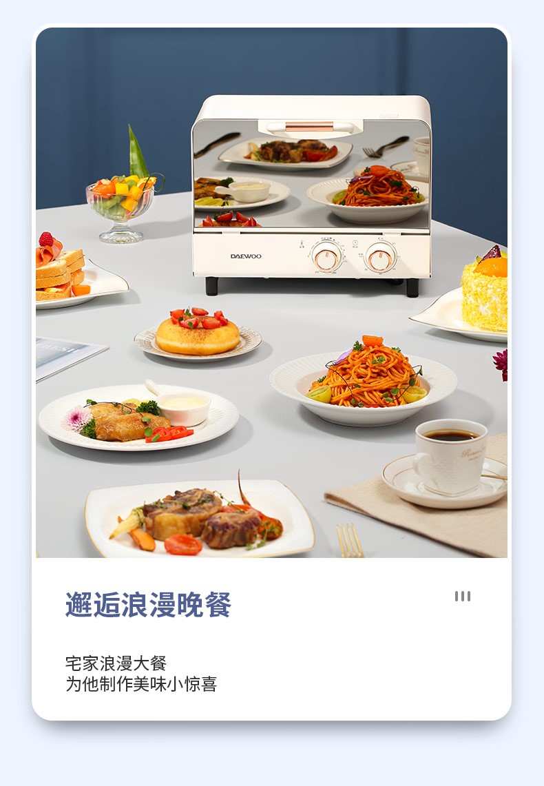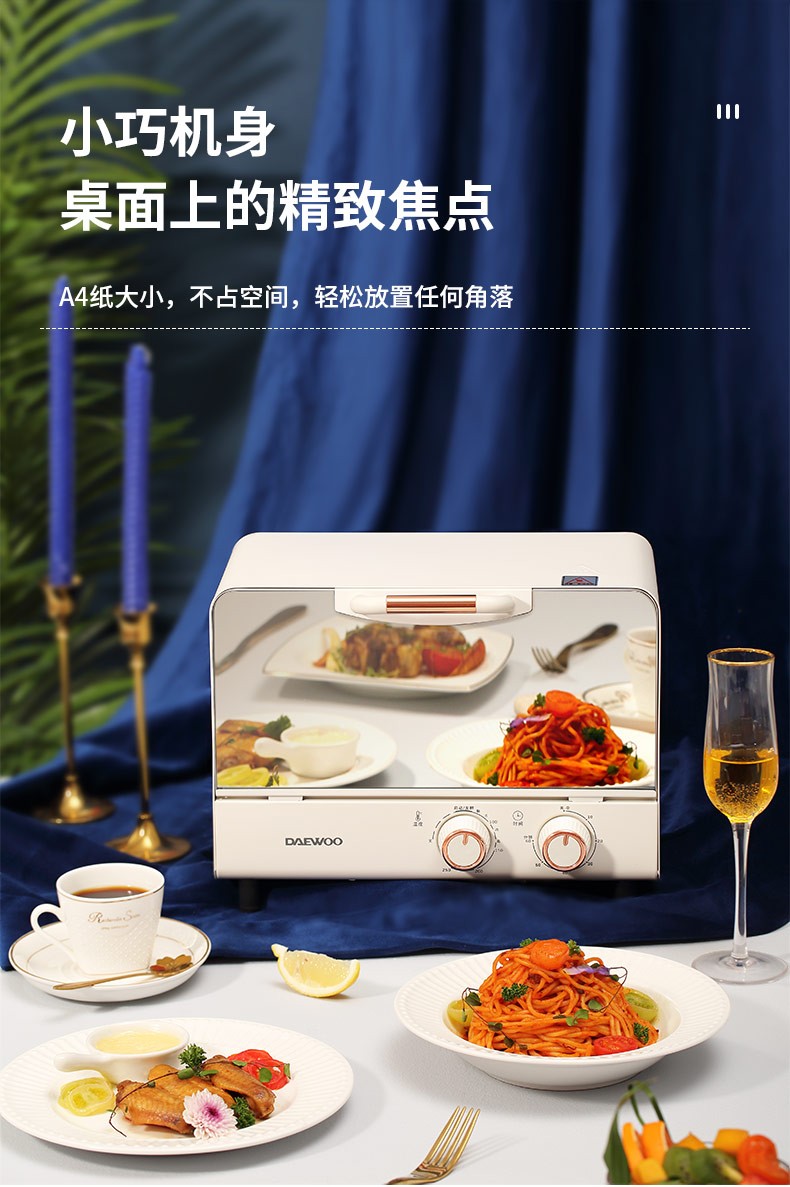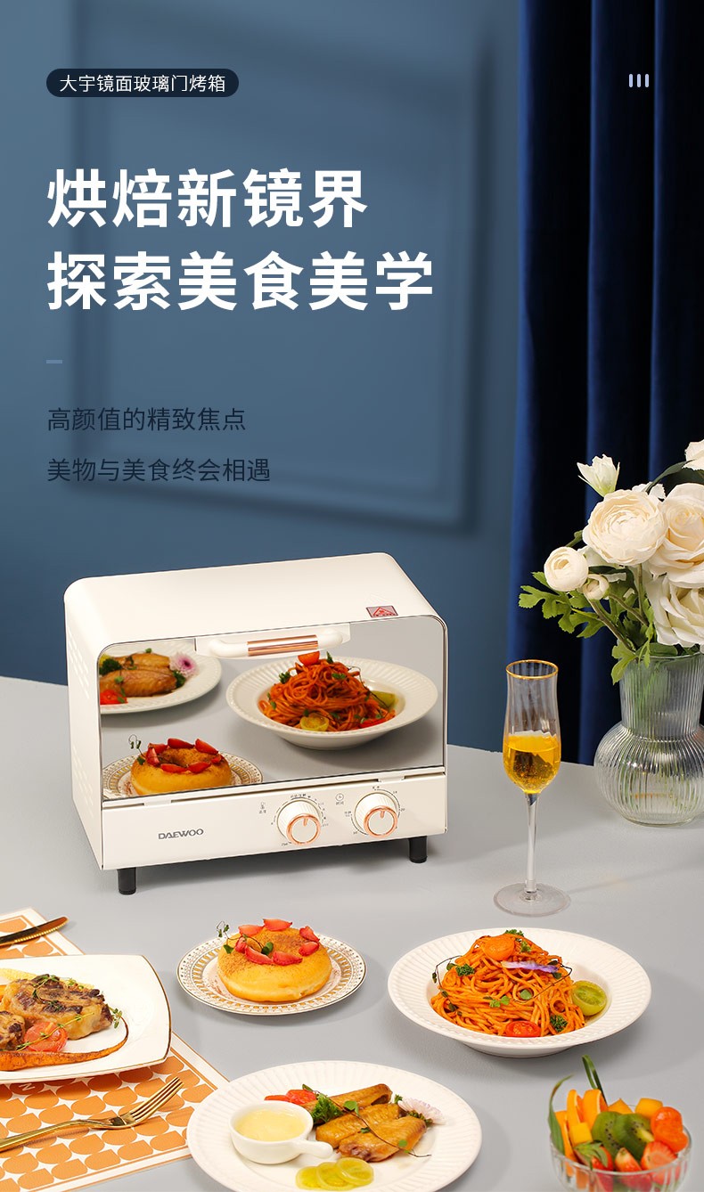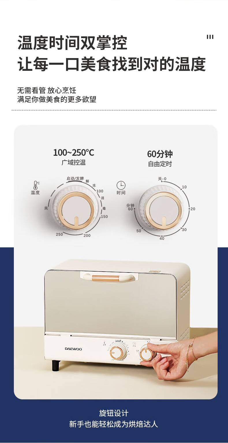 大宇(DAEWOO)迷你10L电烤箱蛋糕面包烘焙家用多功能台式电烤箱DY-KX01 DY-KX01 10L