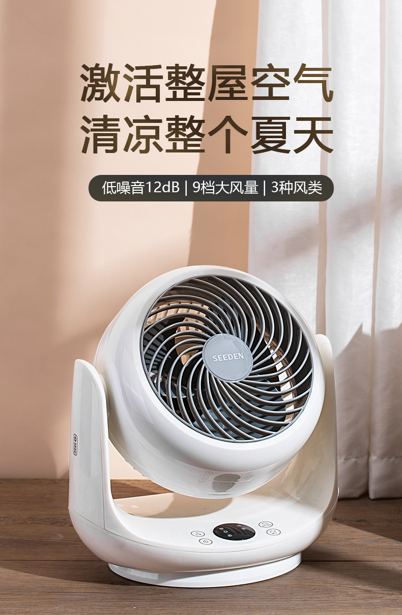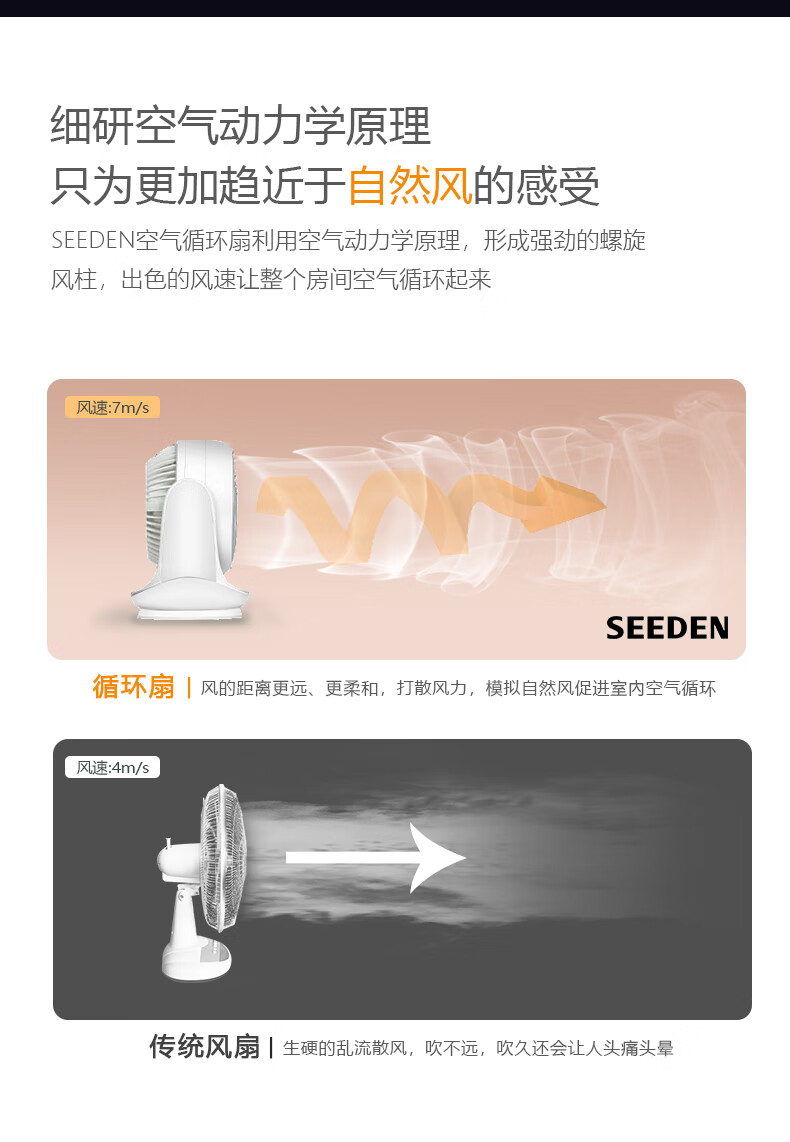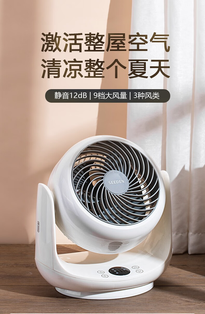 SEEDEN 空气循环扇家用台式电风扇学生宿舍办公室轻音遥控摇头台扇 1868智能触控款