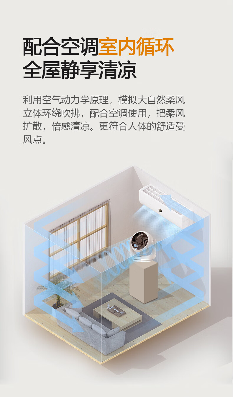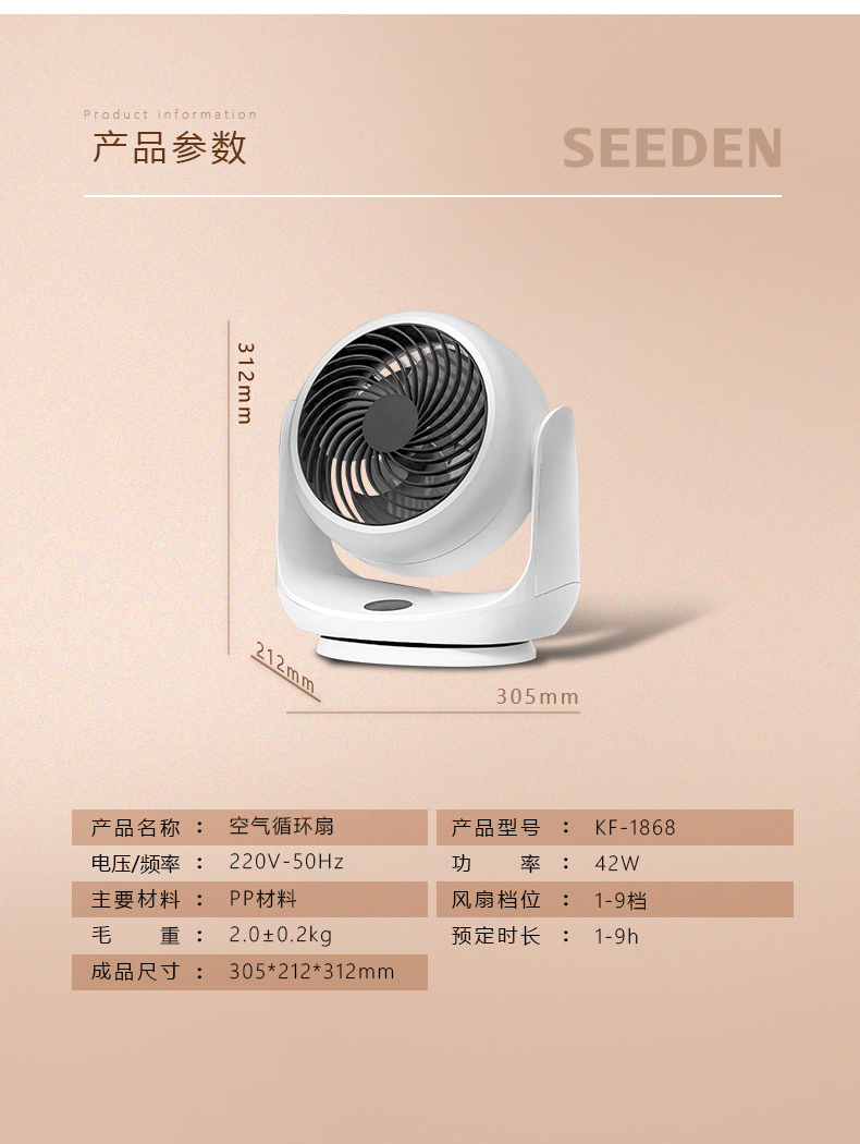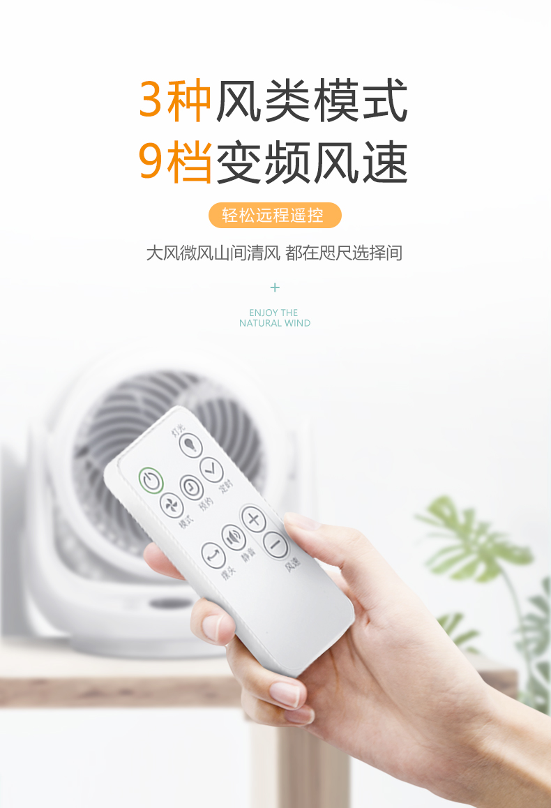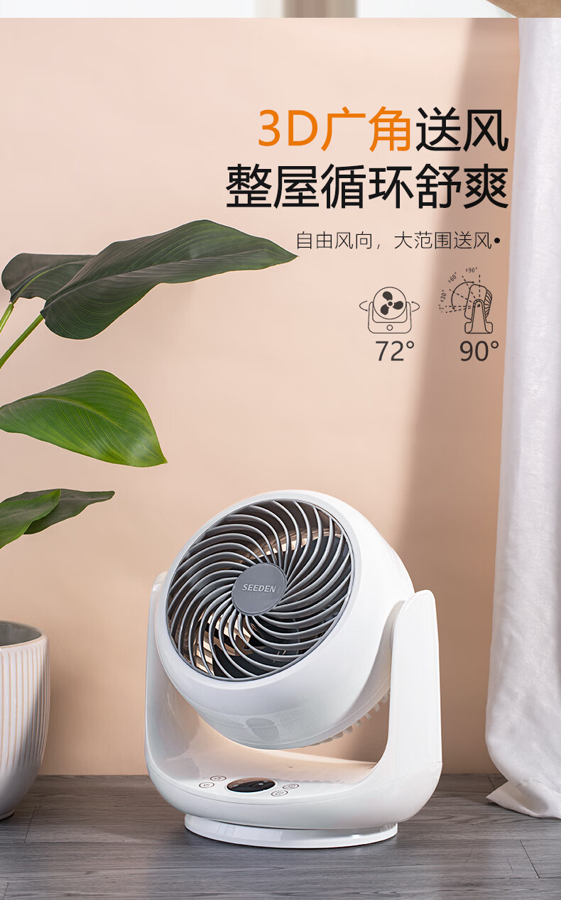 SEEDEN 空气循环扇家用台式电风扇学生宿舍办公室轻音遥控摇头台扇 1868智能触控款