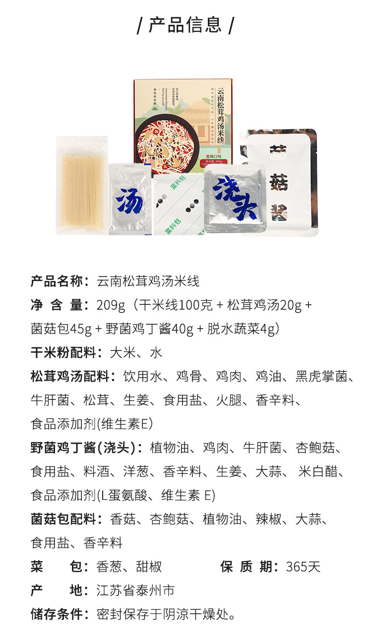 【地道风味丨云南松茸菌菇鸡汤米线209g*3/6盒】原味辣味可选,剑川花谷米+怒江独龙鸡+香格里拉松茸+山野牛肝菌齐聚一碗,色香味层次丰富,不再千碗一味,大块菌菇真有料