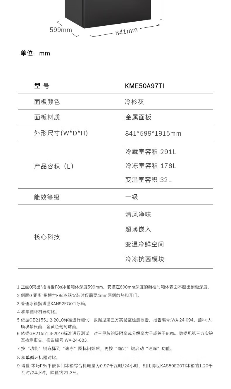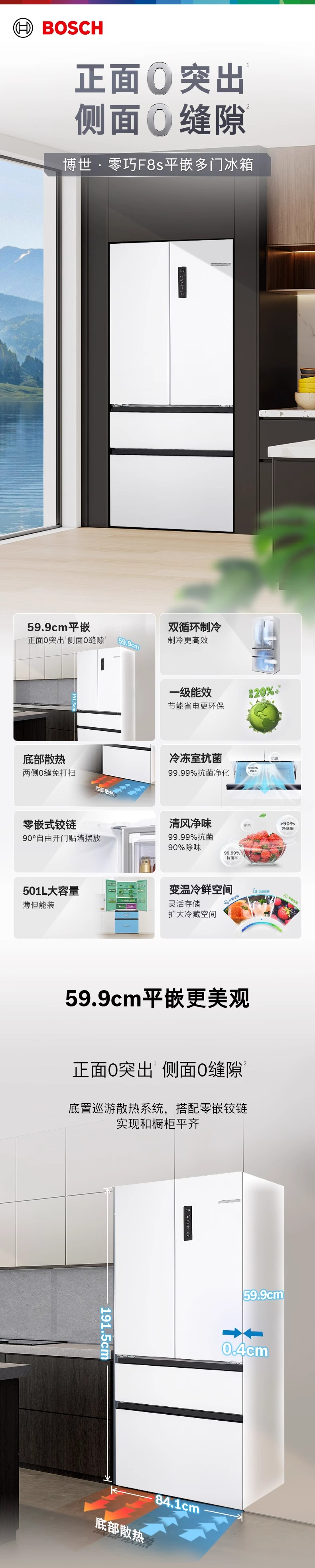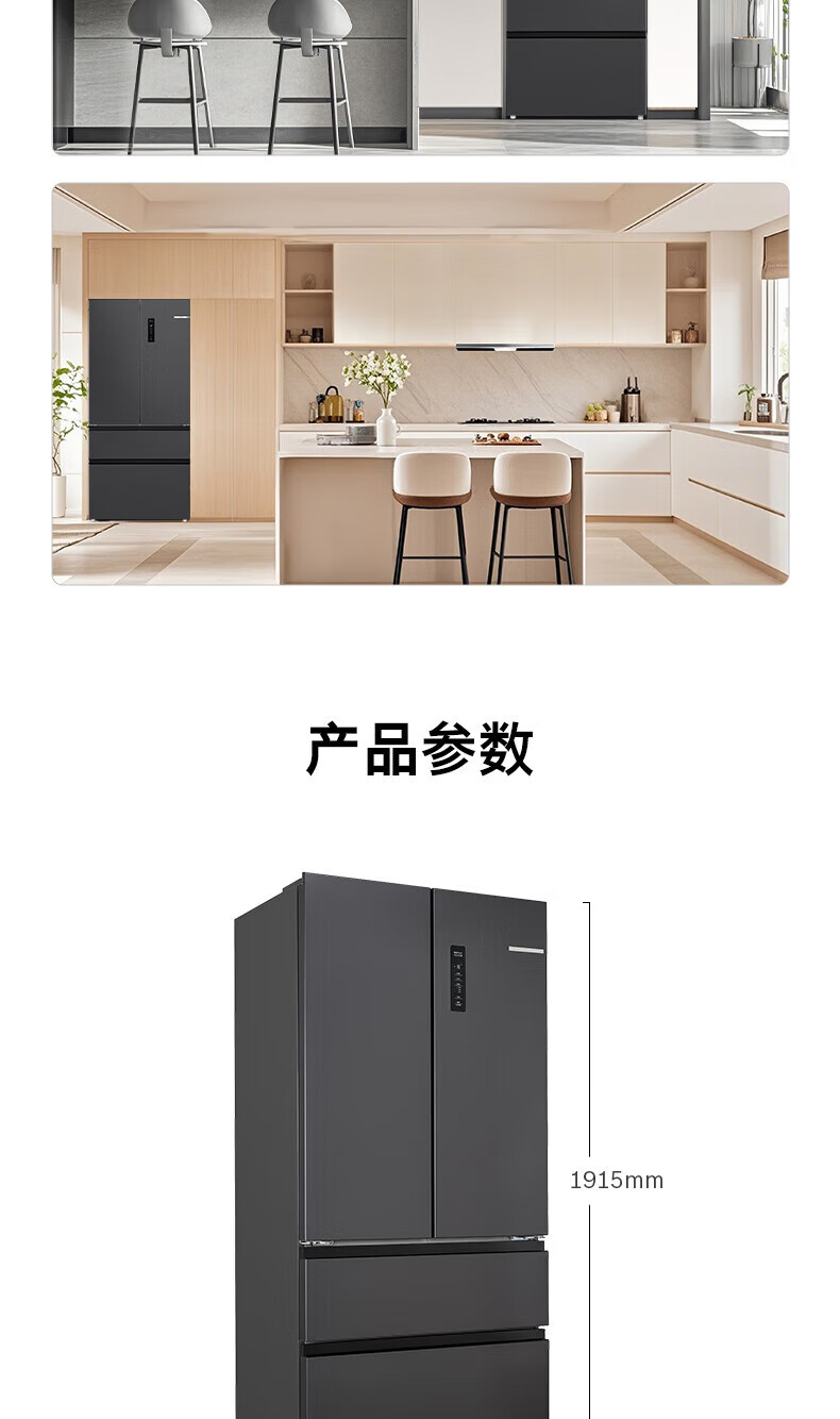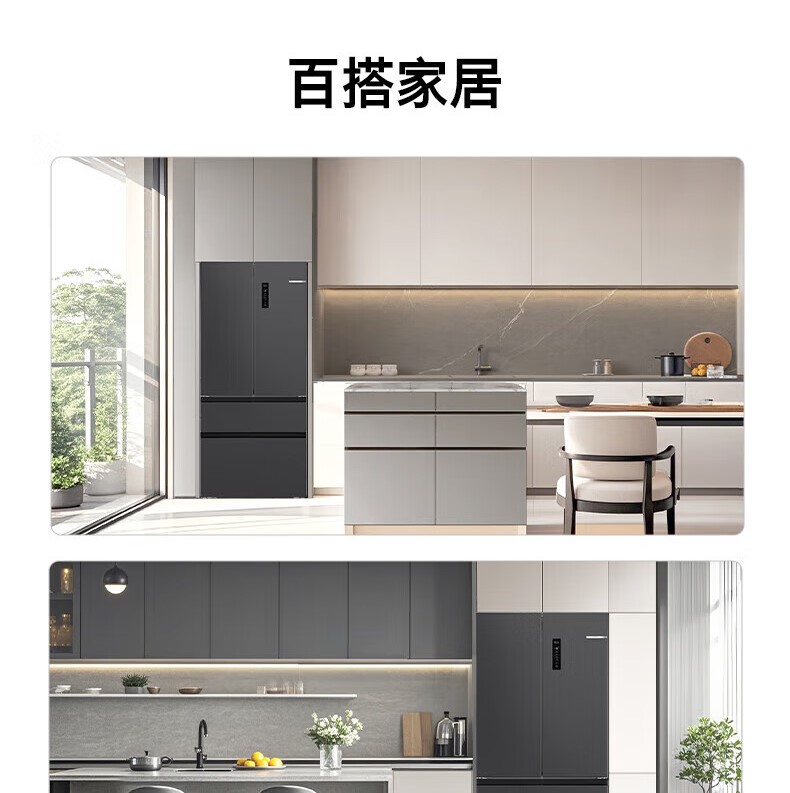 博世(BOSCH)【60cm超薄平嵌入】501L法式多门四开门家用电冰箱 双系统双循环大容量 变温保鲜美妆空间冷冻抗菌 白色KME50A20TI/KME50A97TI星云灰