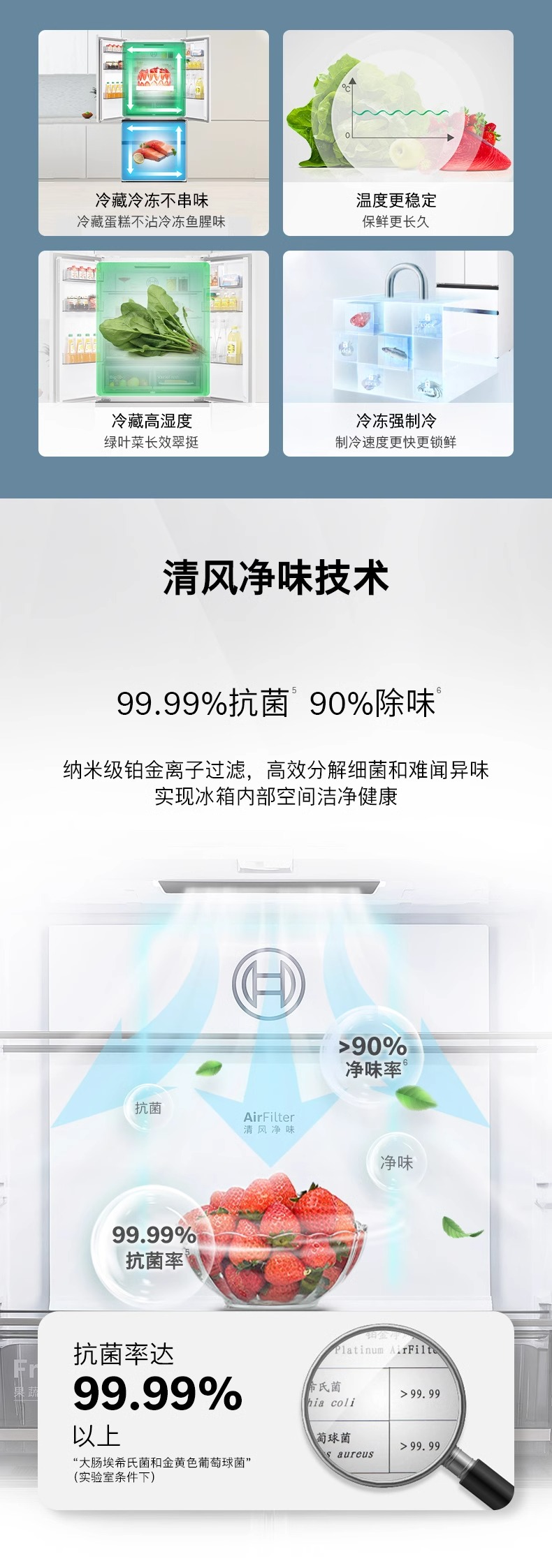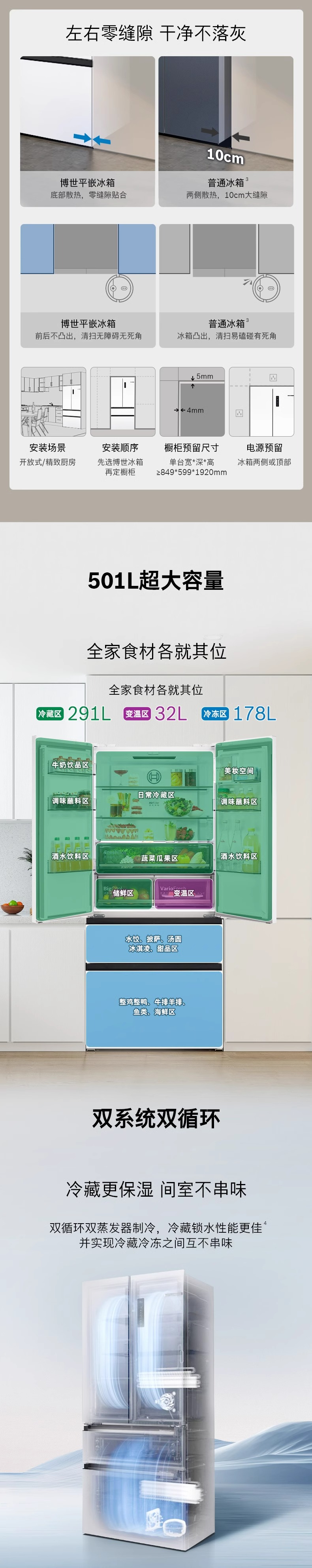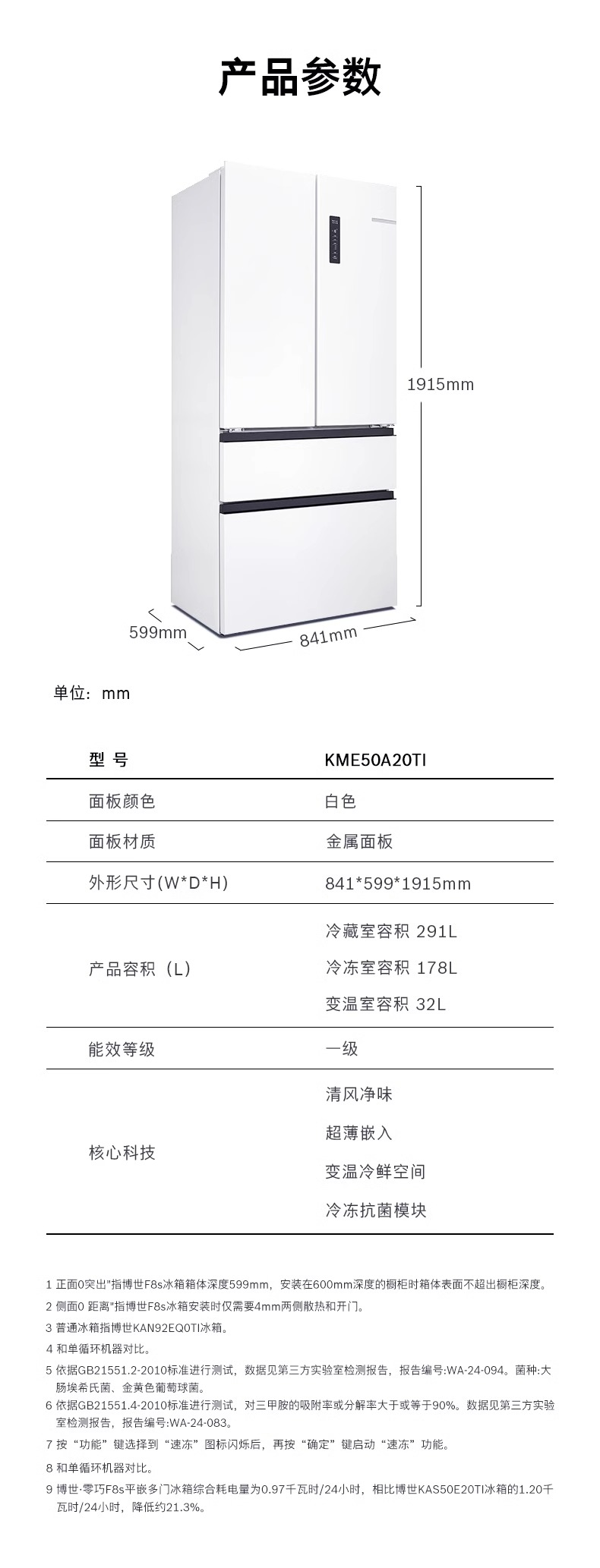 博世(BOSCH)【60cm超薄平嵌入】501L法式多门四开门家用电冰箱 双系统双循环大容量 变温保鲜美妆空间冷冻抗菌 白色KME50A20TI/KME50A97TI星云灰