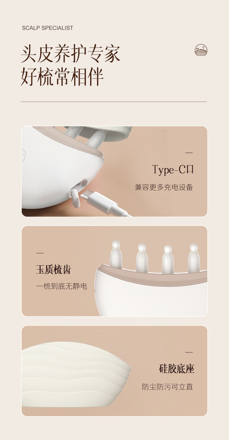科爱元素玉石小月梳 ▏头部经络按摩 【G】
