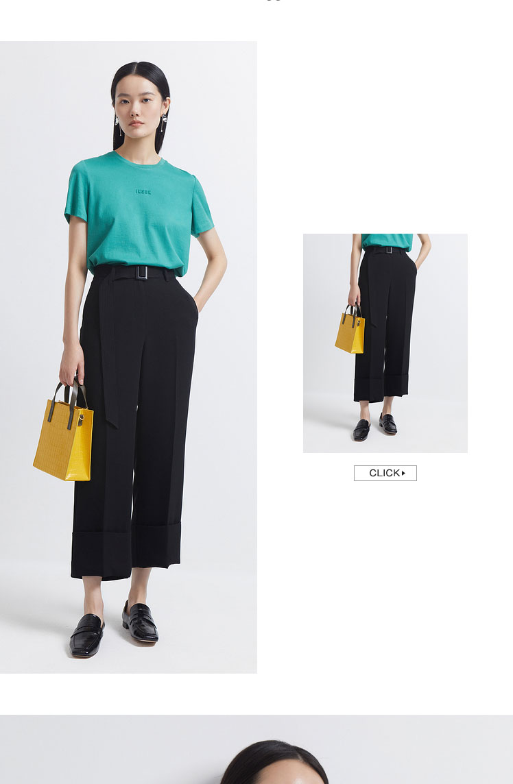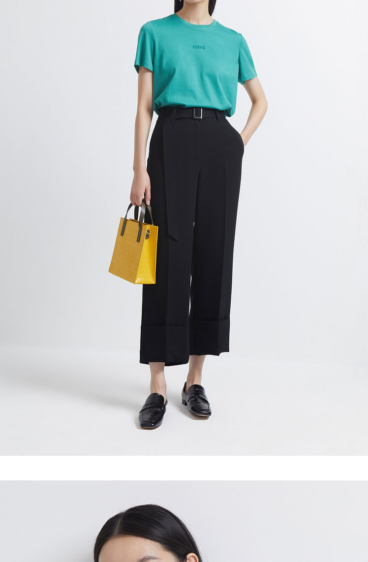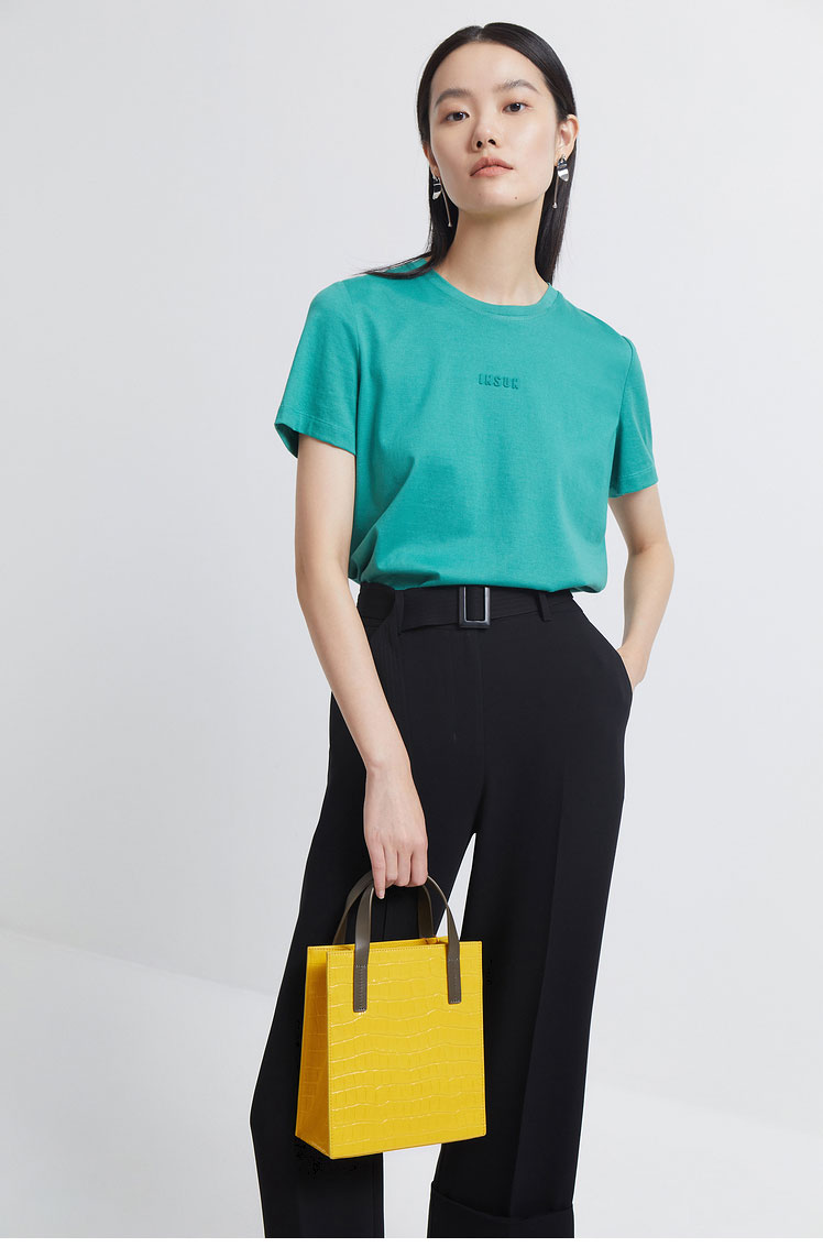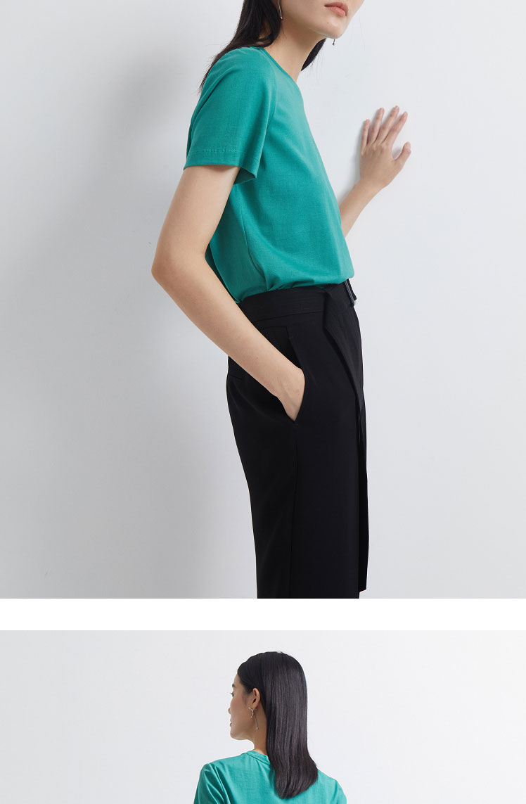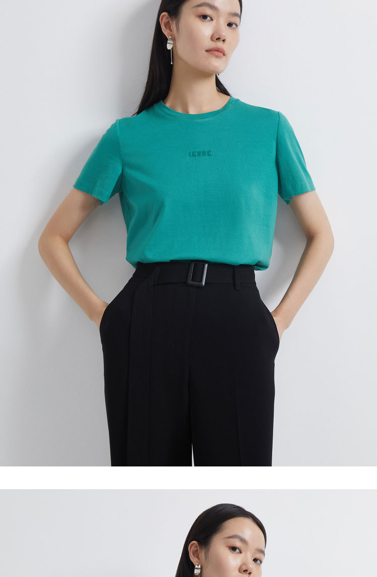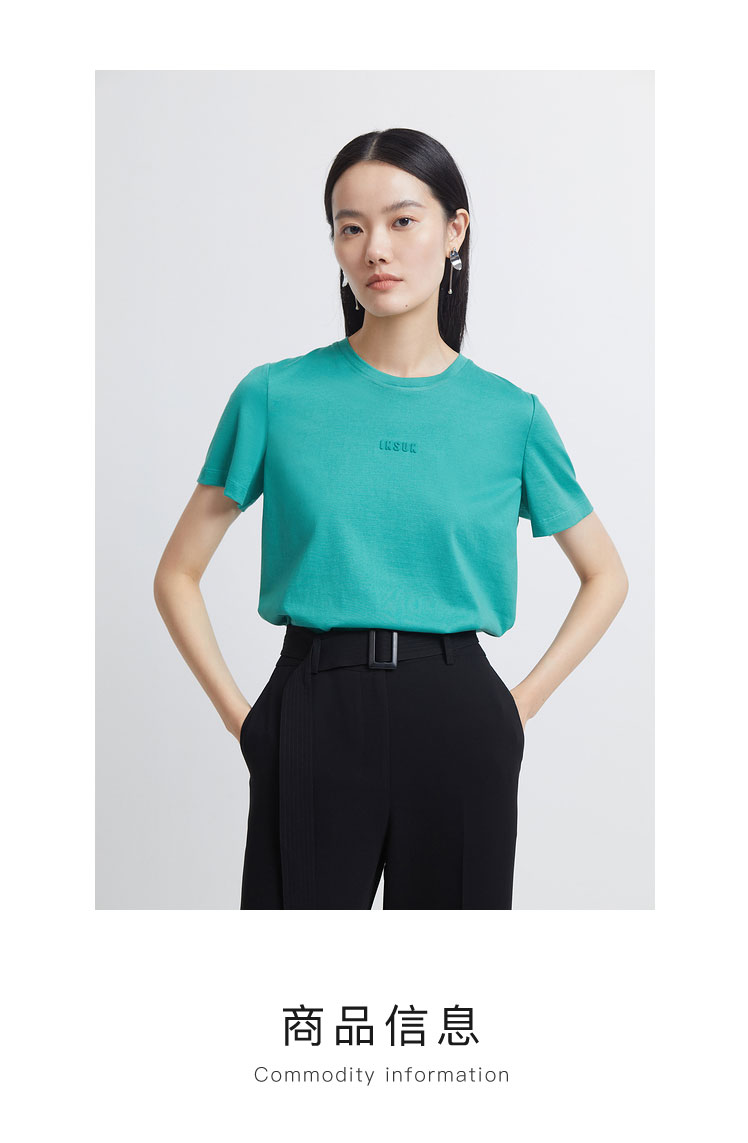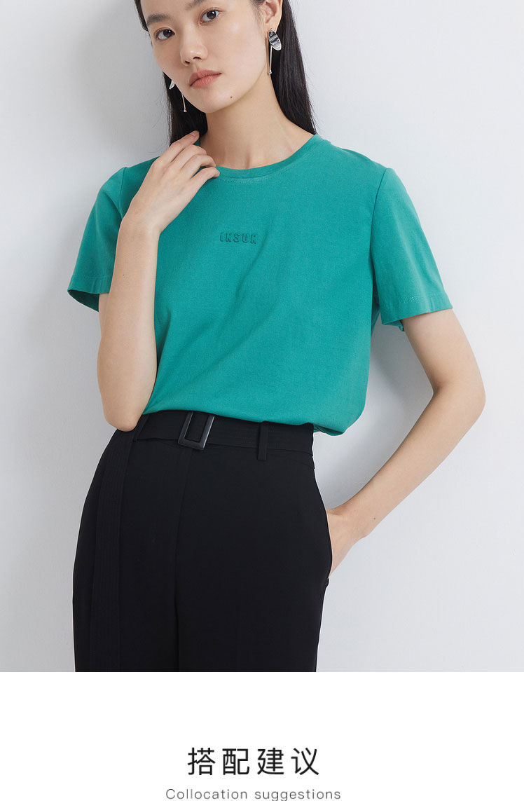 INSUN恩裳2022夏新品时尚爽朗醒目绿舒适纯棉简约休闲百搭T恤9C32260010