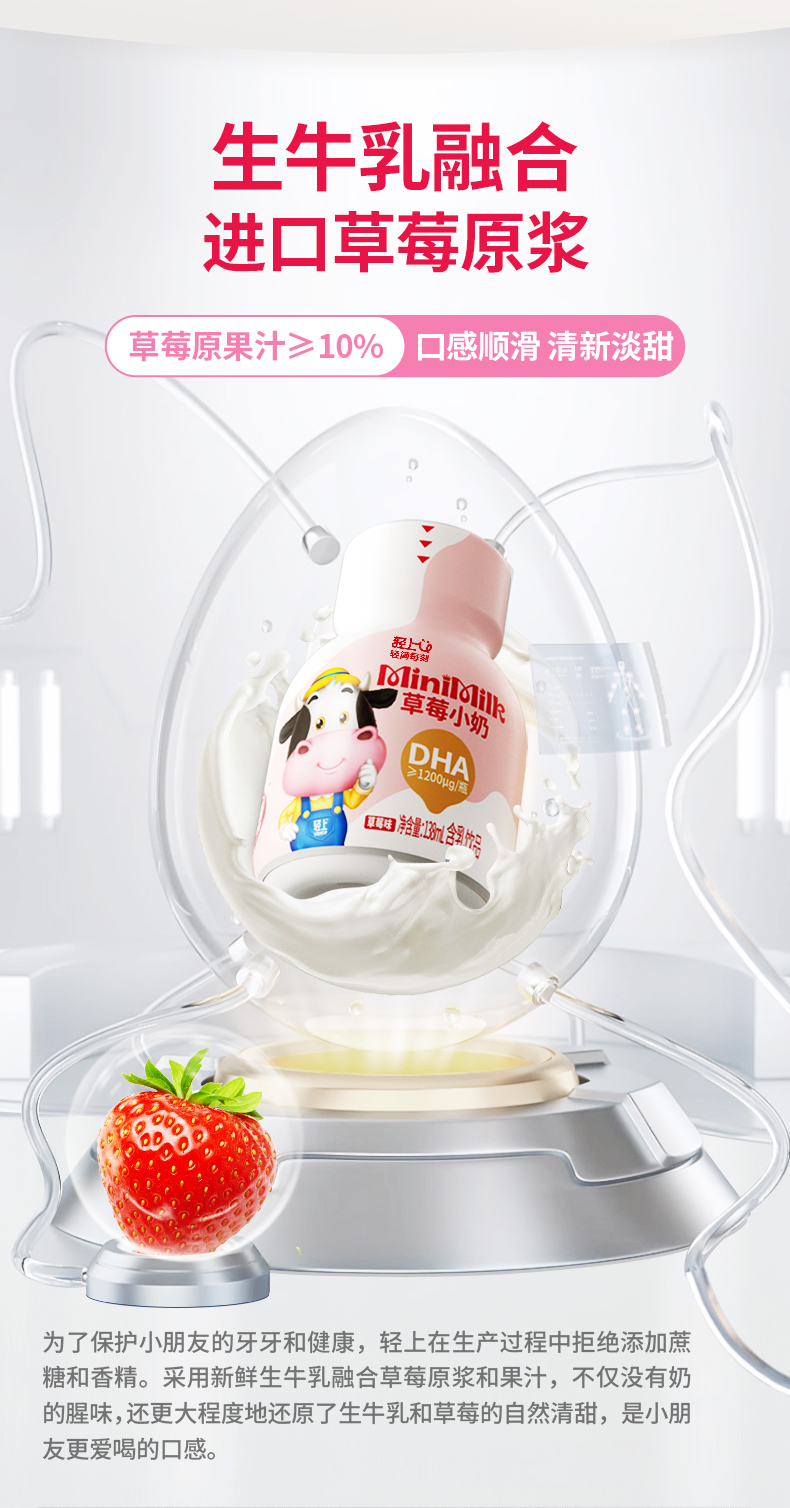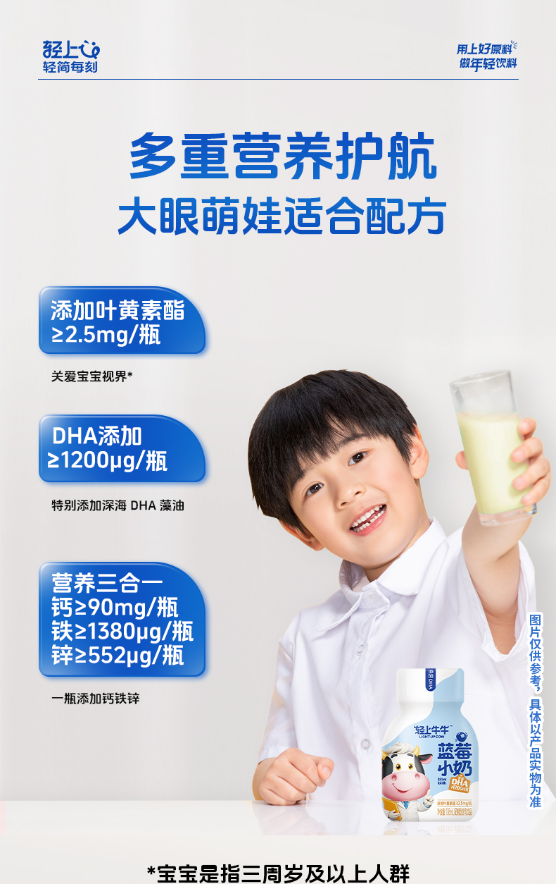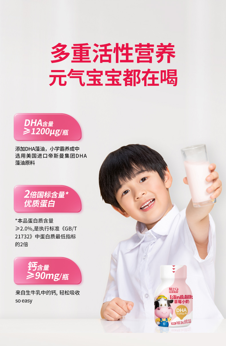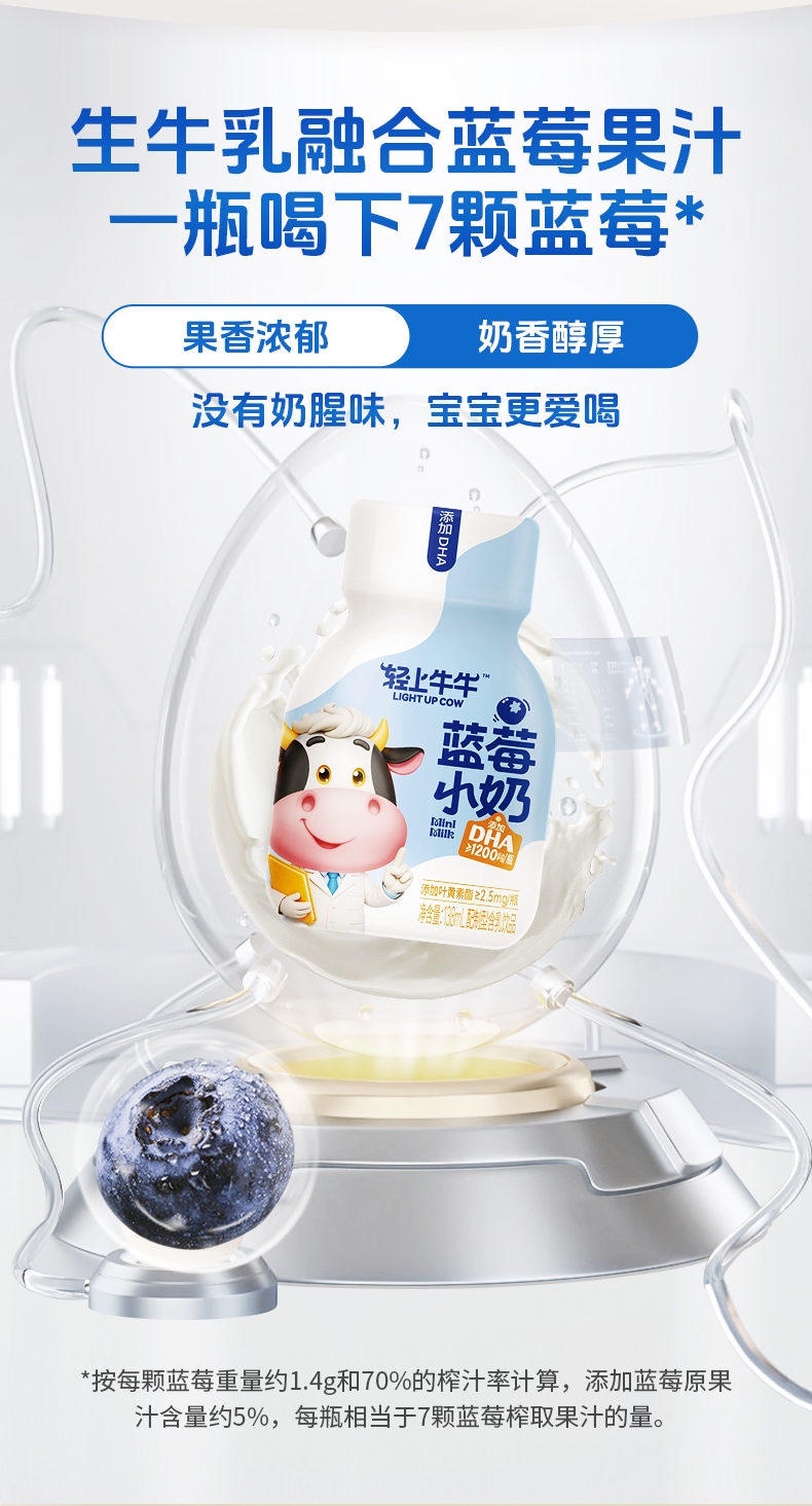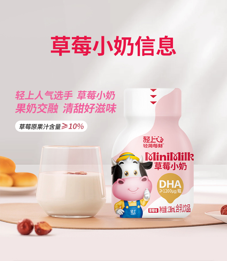 轻上15瓶小奶草莓/蓝莓/核桃小奶含乳饮品含DHA和优质蛋白