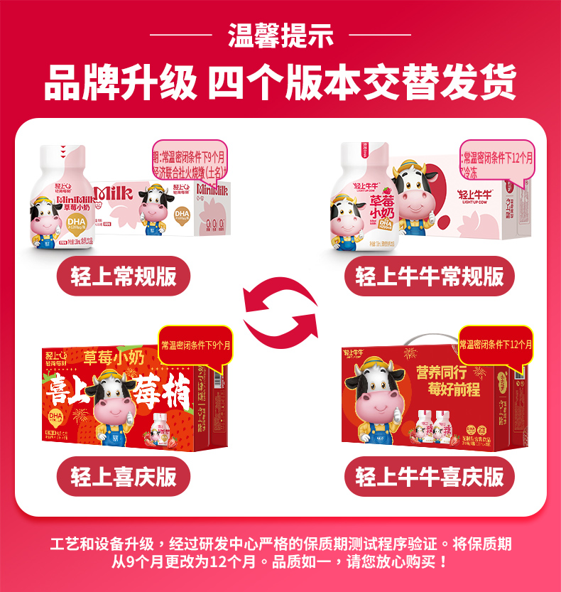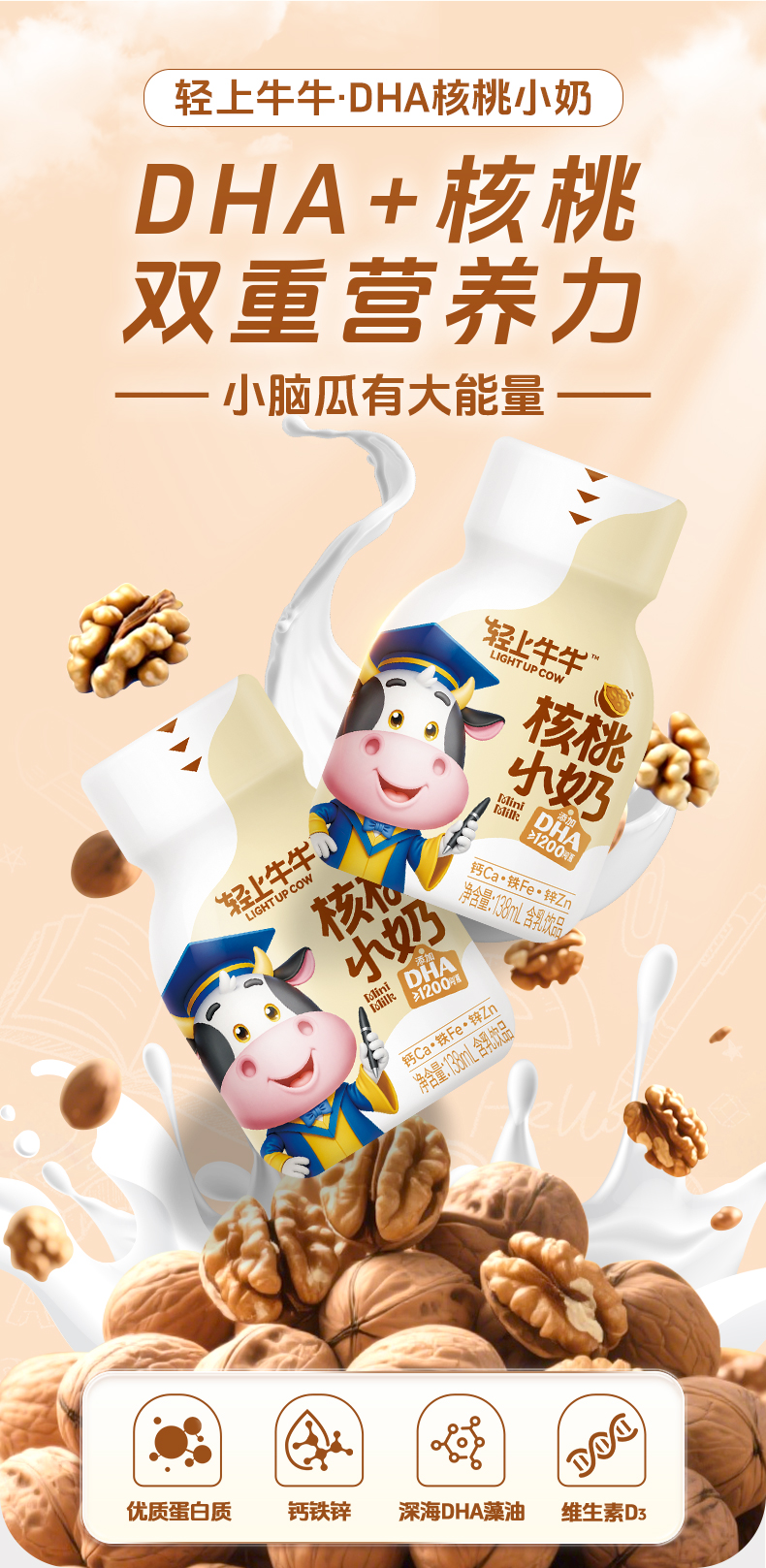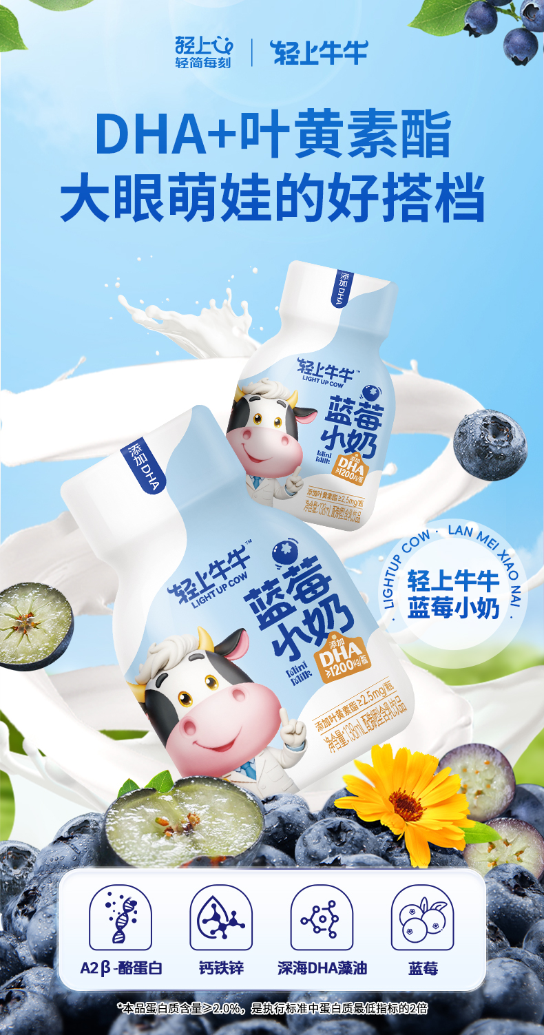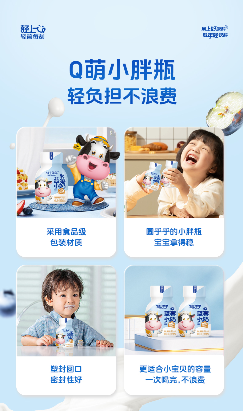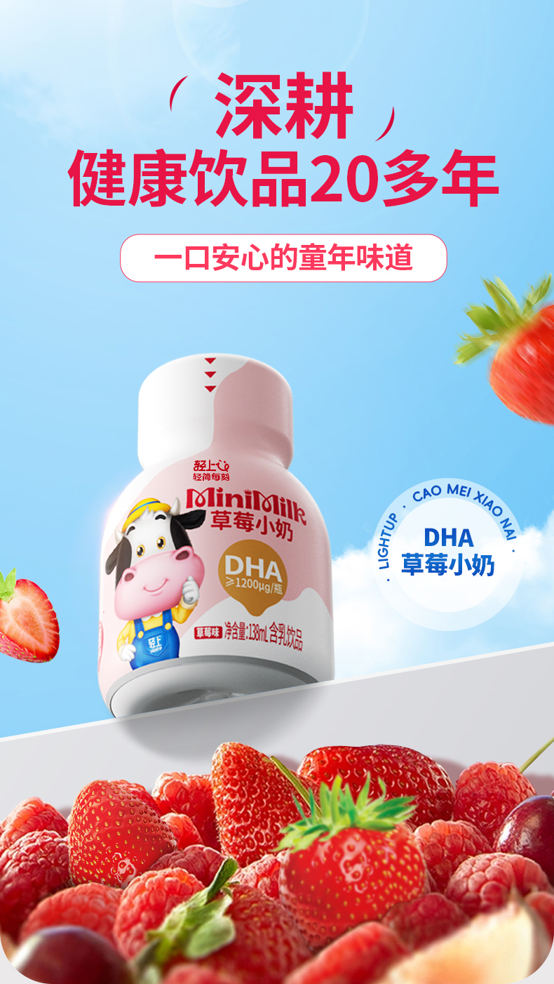 轻上15瓶小奶草莓/蓝莓/核桃小奶含乳饮品含DHA和优质蛋白