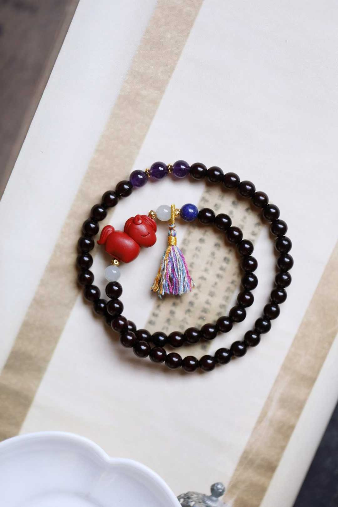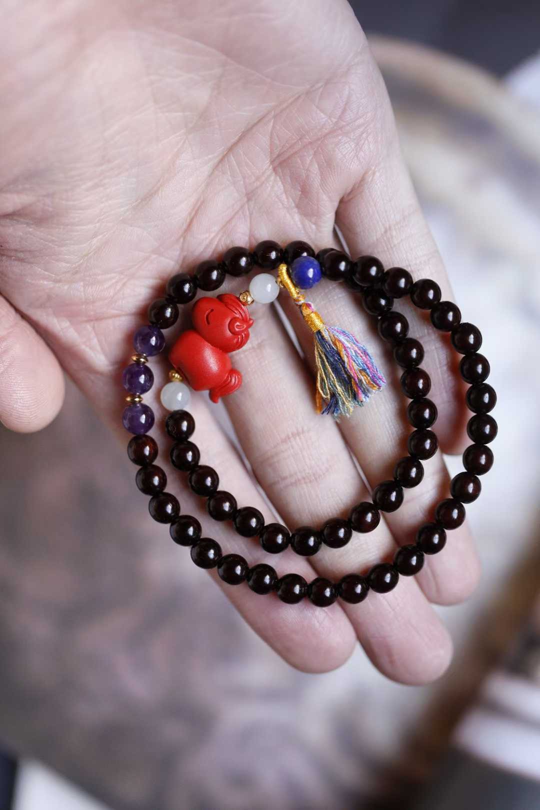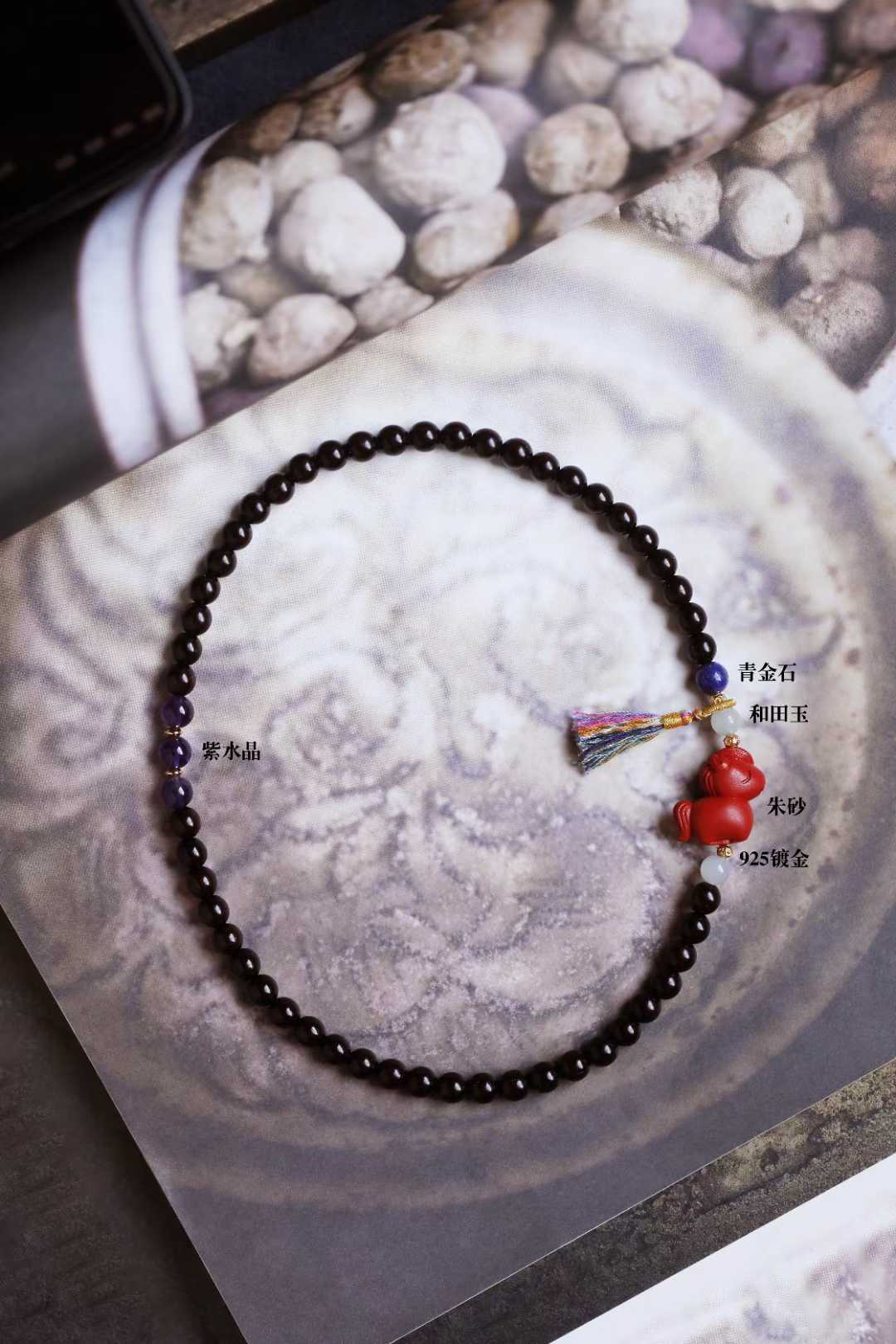 配件:和田玉、朱砂、青金石、紫水晶、925镀金