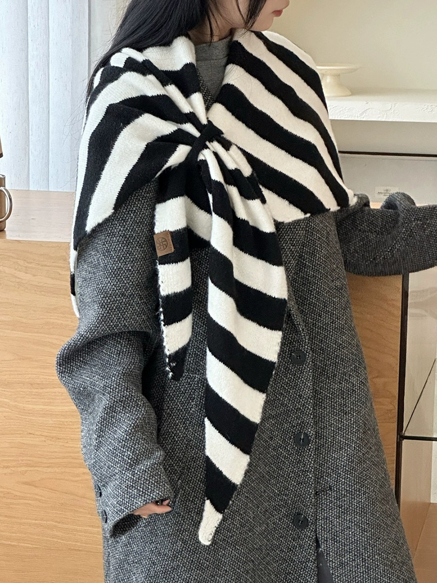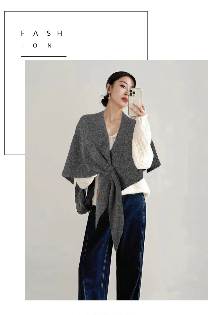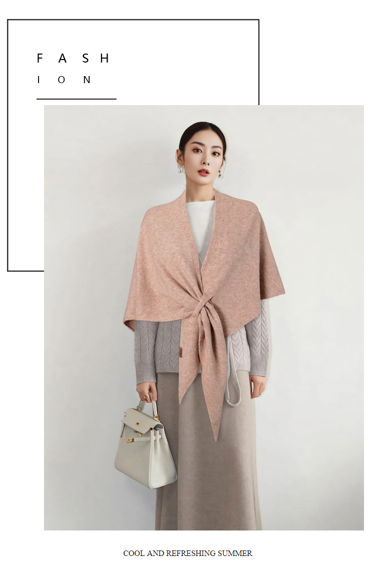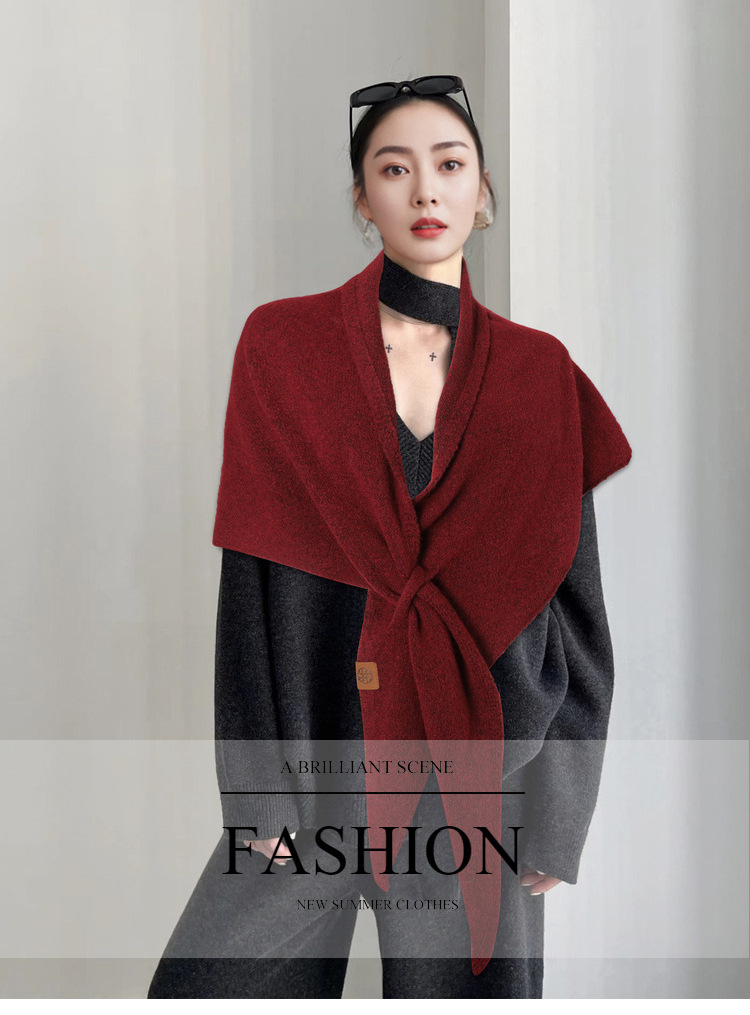 慵懒出街含羊毛三角围巾女秋冬护颈保暖围脖纯色大披肩空调房外搭冬季新款