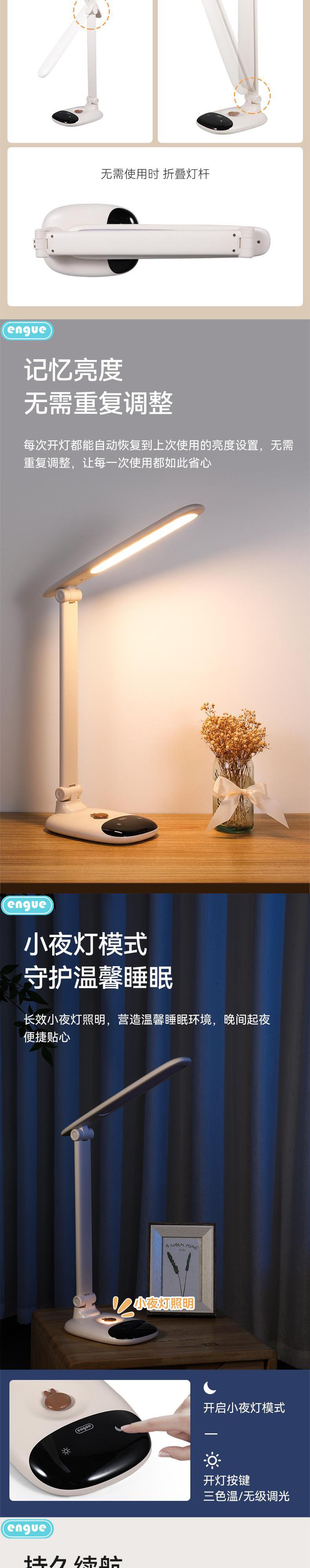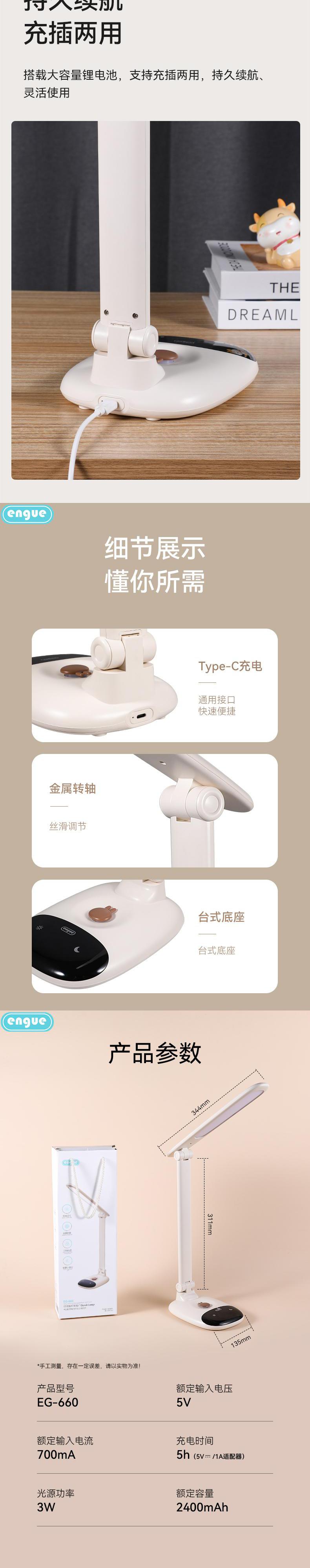 engue恩谷 远航充电台灯& 小夜灯 EG-660大容量电池停电应急充插两用