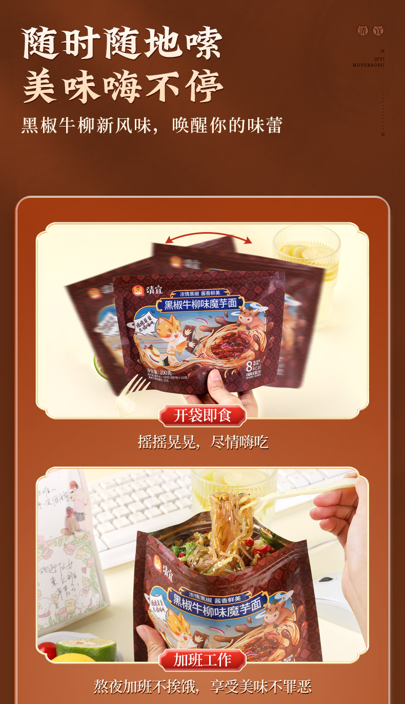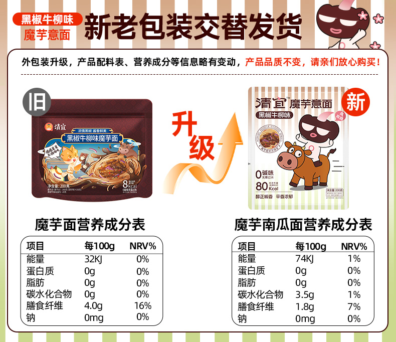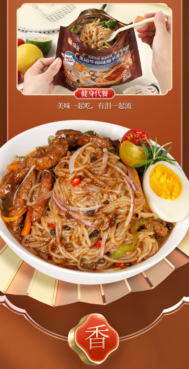 【39任选10件】黑椒牛柳味/虎皮辣椒味魔芋面*1袋