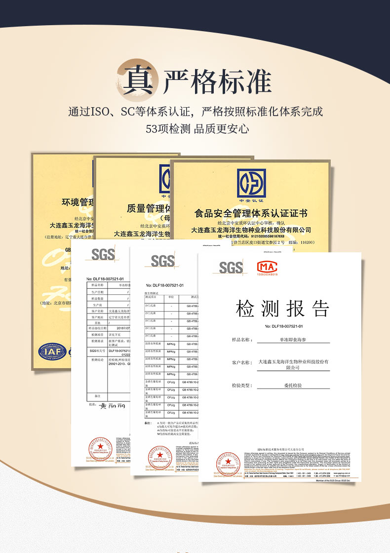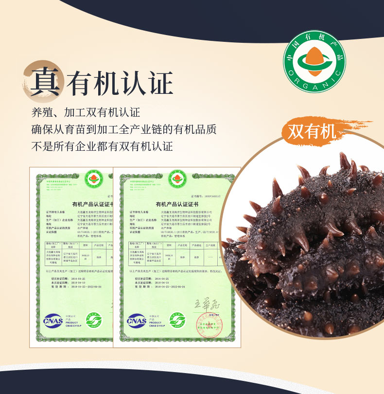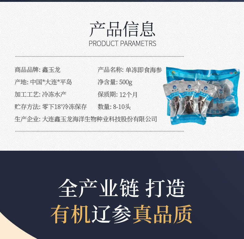 大连鑫玉龙有机单冻即食海参 8-10头/500g水产海鲜