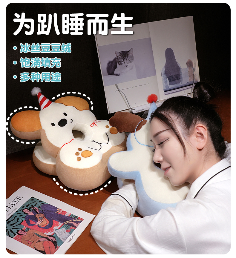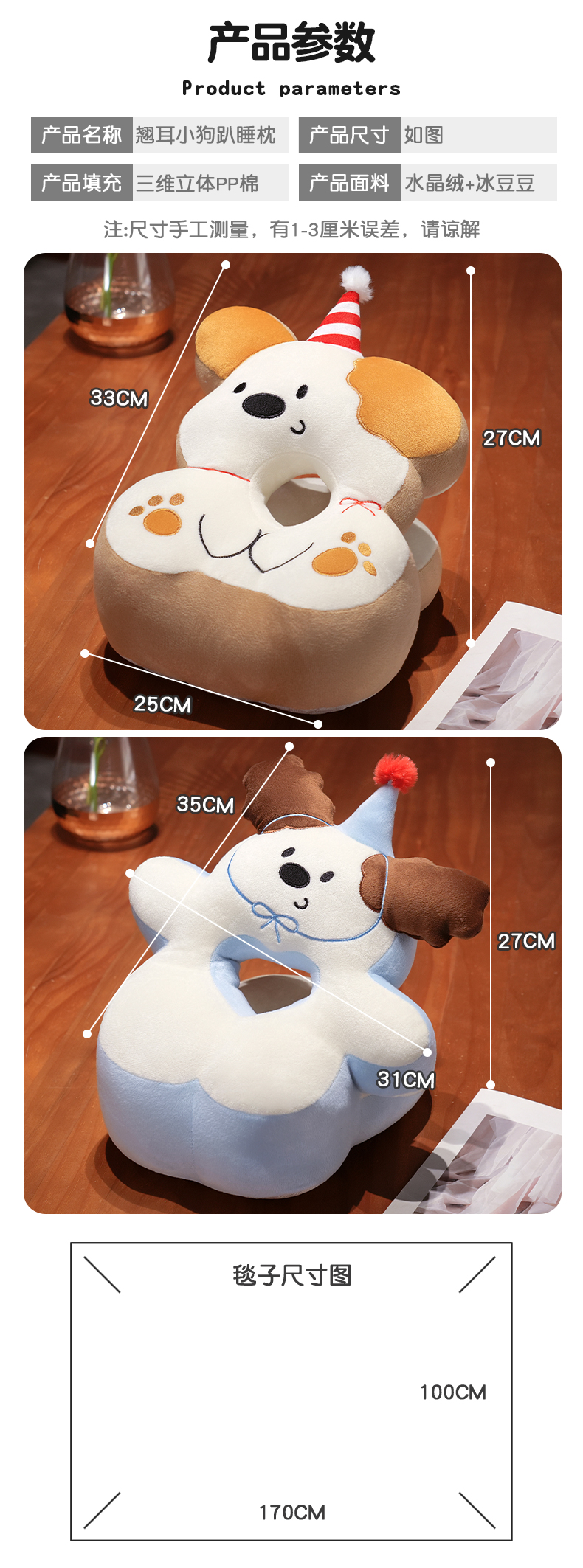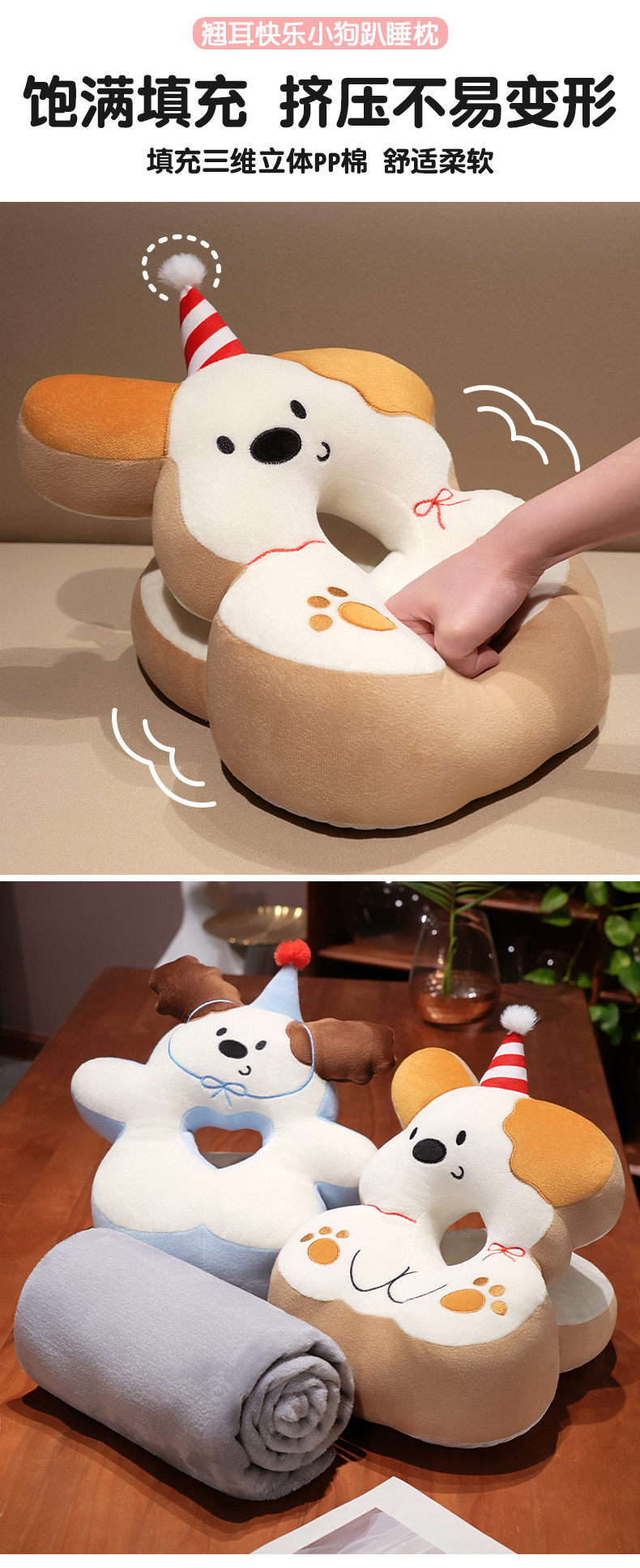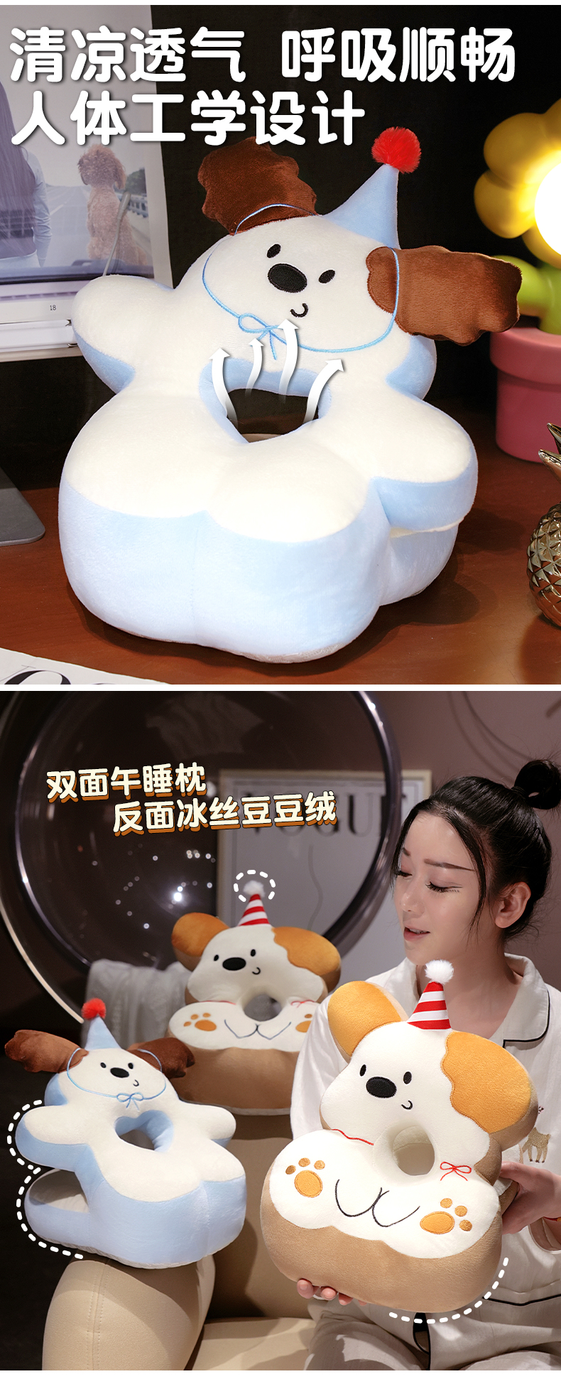 自然醒翘耳小狗冰豆豆双面午睡枕学生午休枕头趴桌子抱枕睡觉神器靠枕QYL