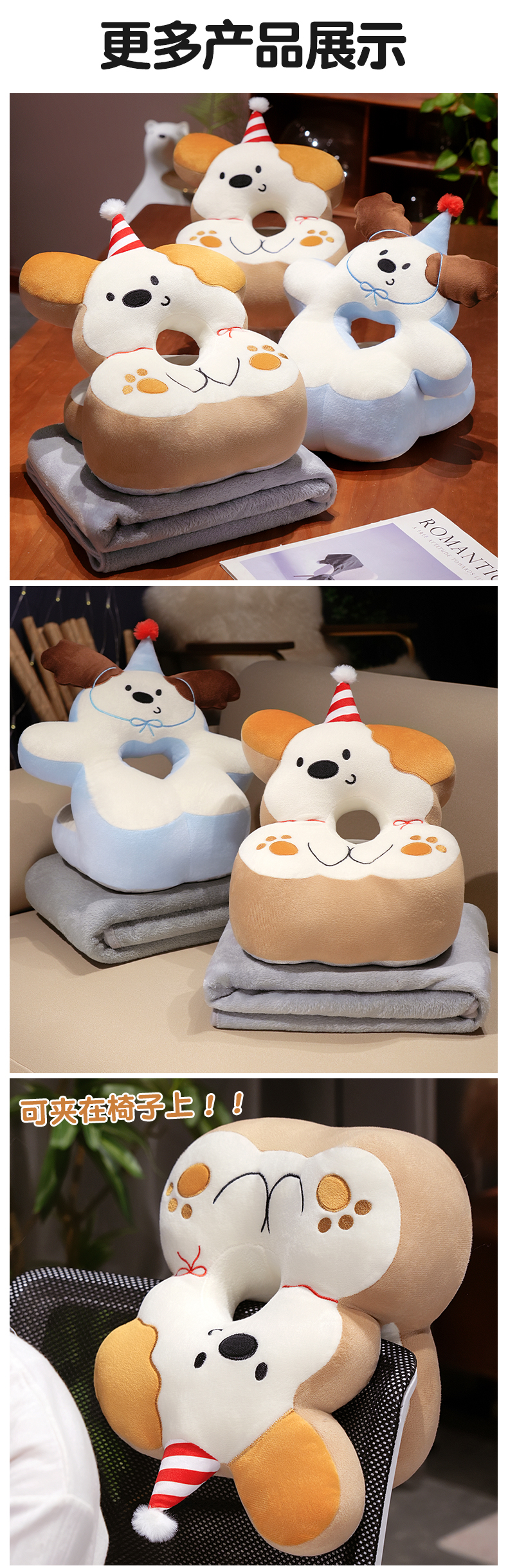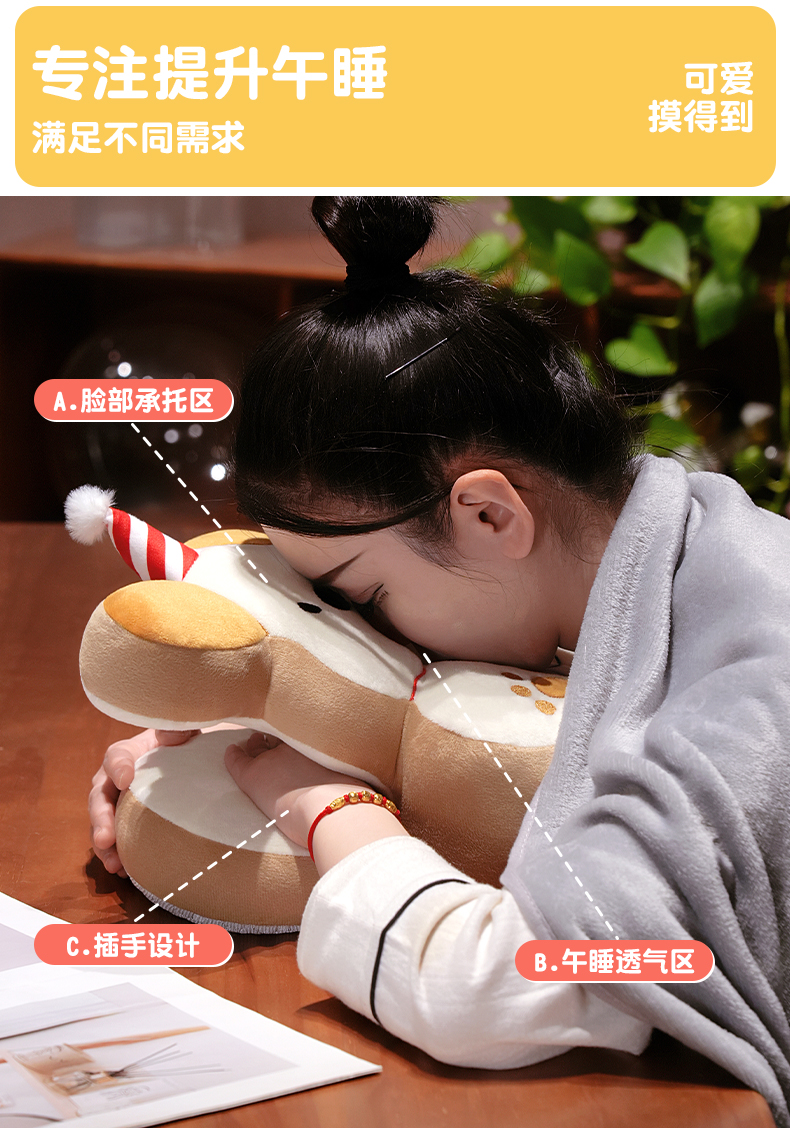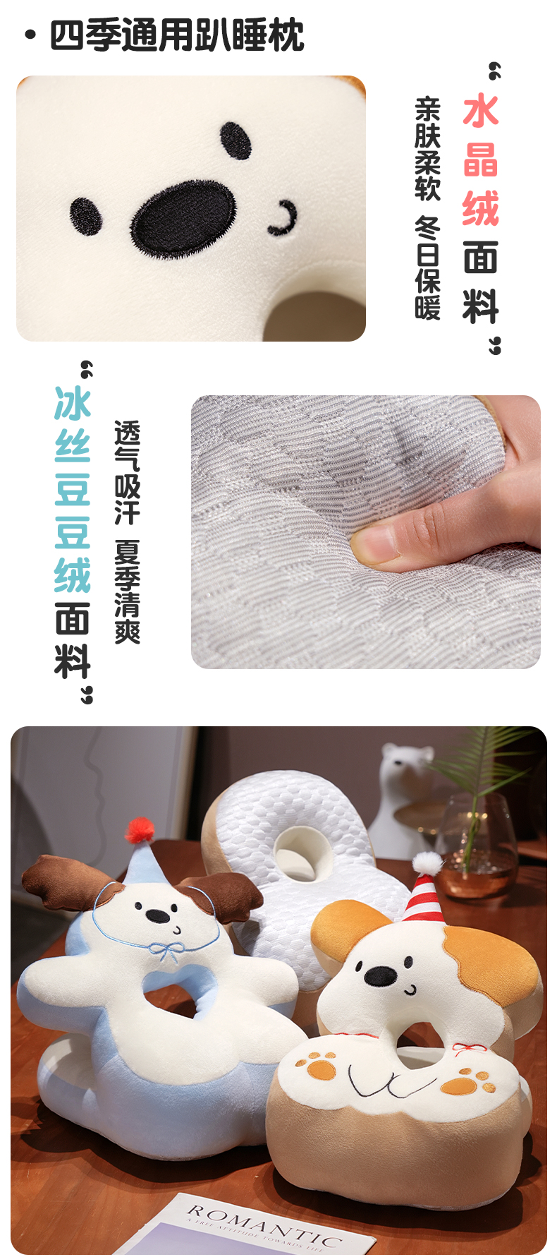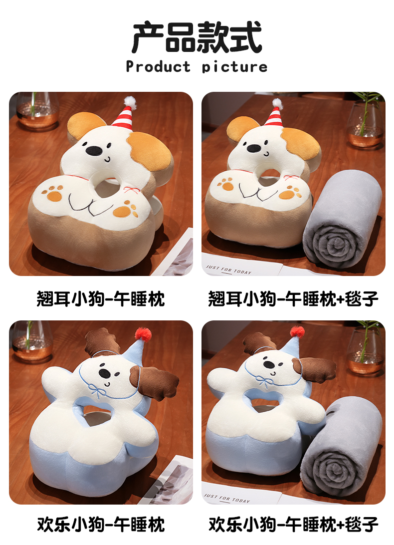 自然醒翘耳小狗冰豆豆双面午睡枕学生午休枕头趴桌子抱枕睡觉神器靠枕QYL