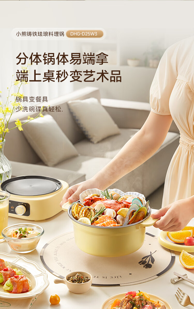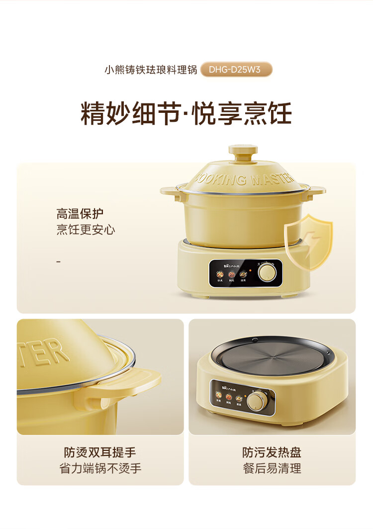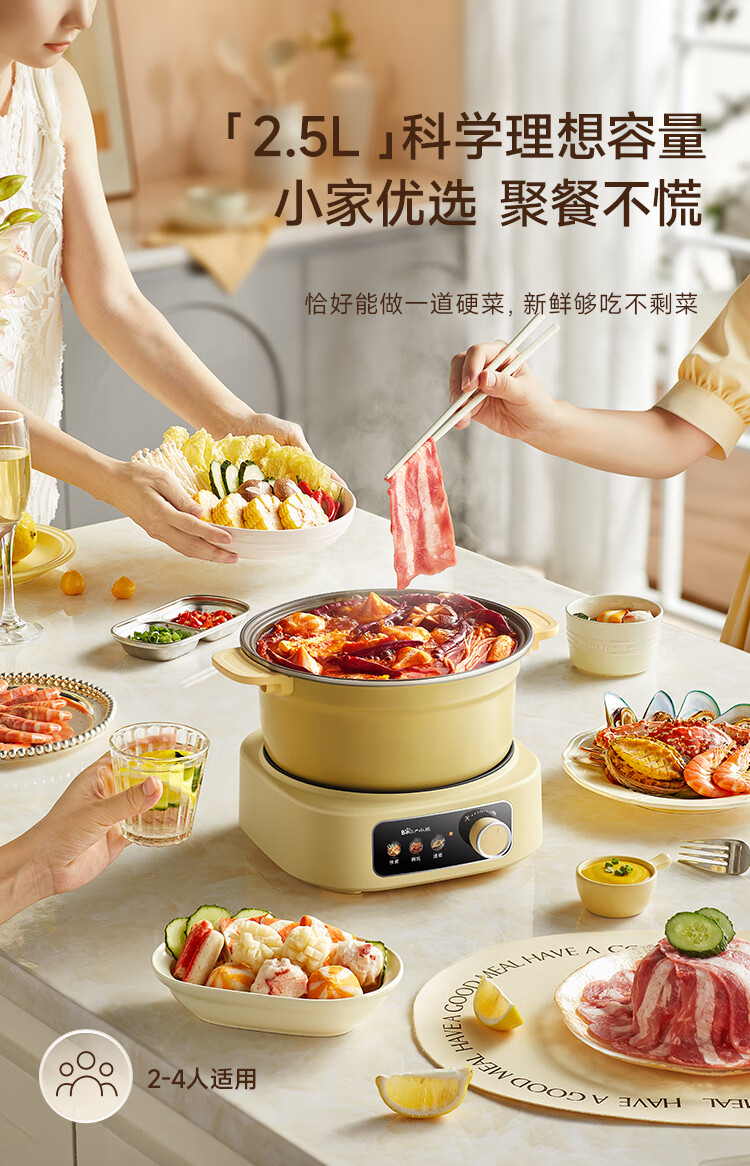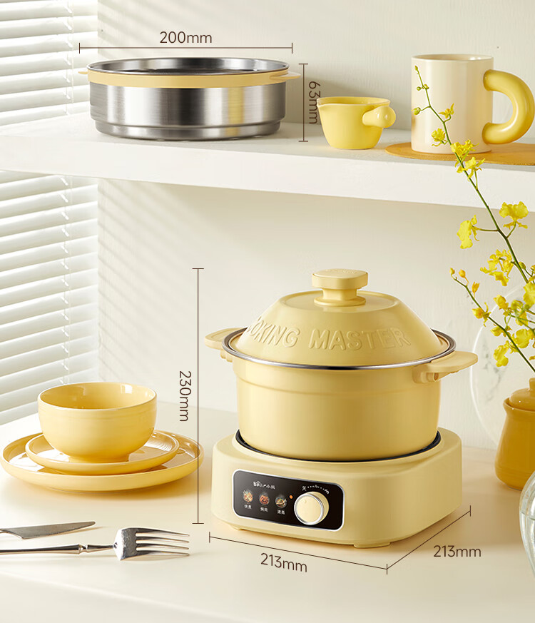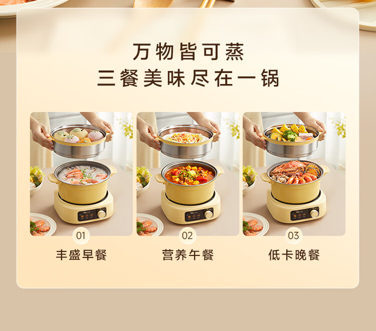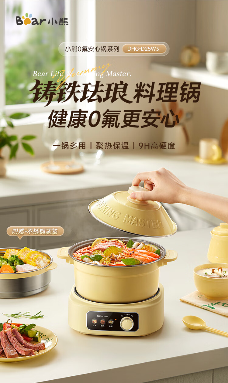 小熊铸铁珐琅电热火锅+蒸屉2.5L