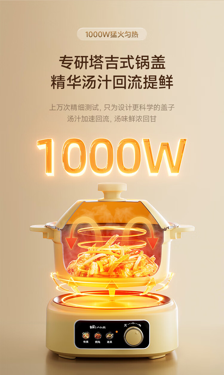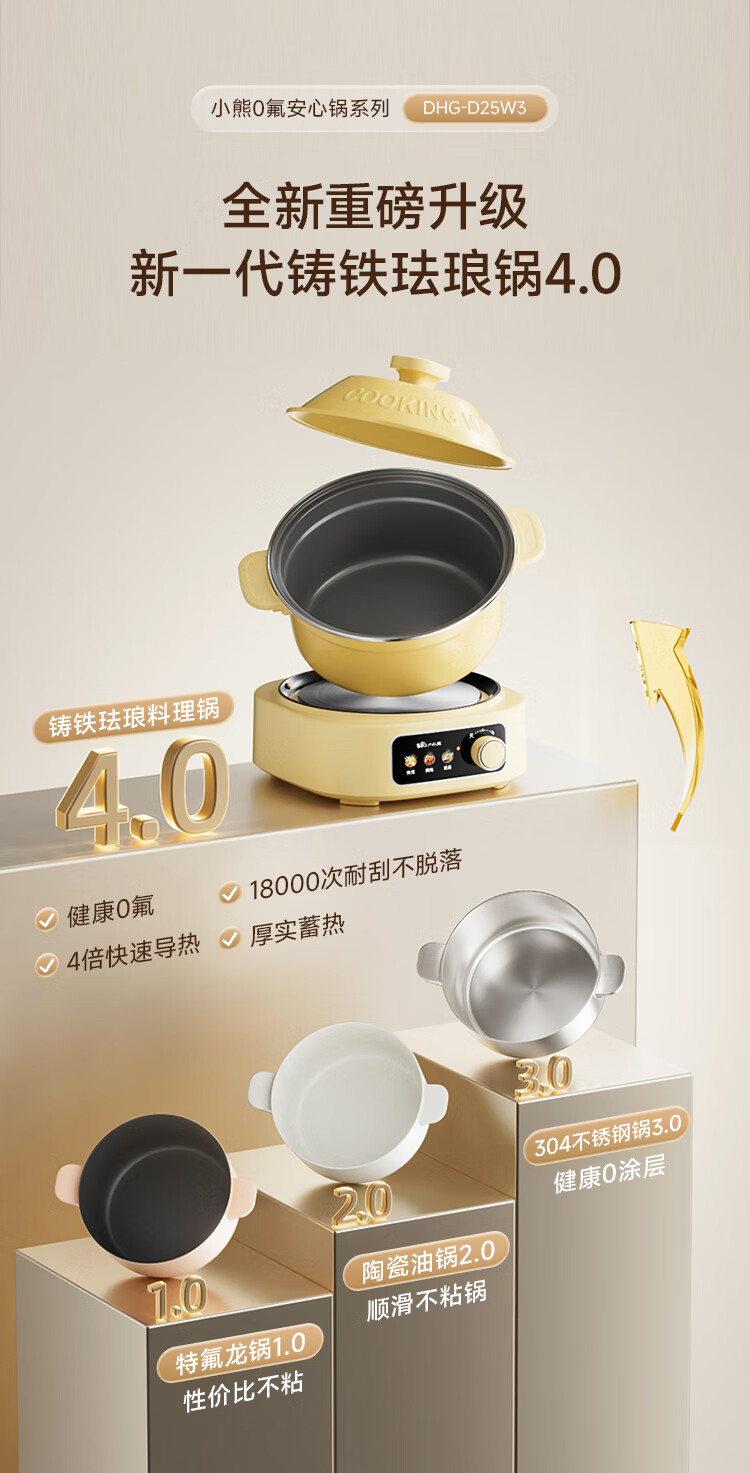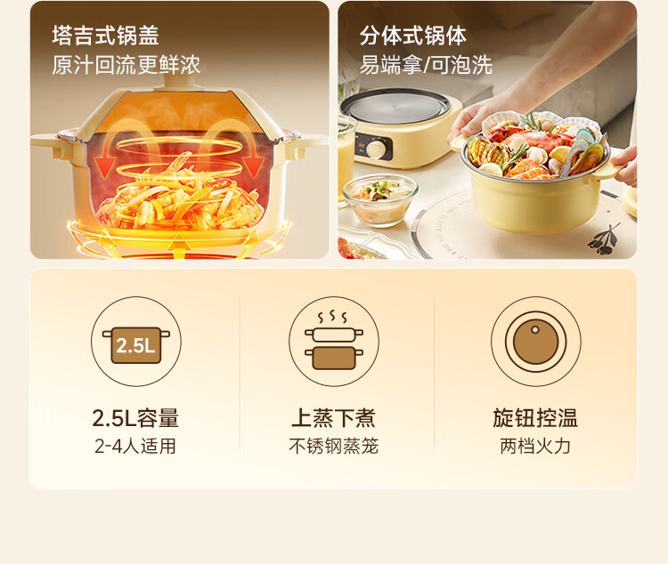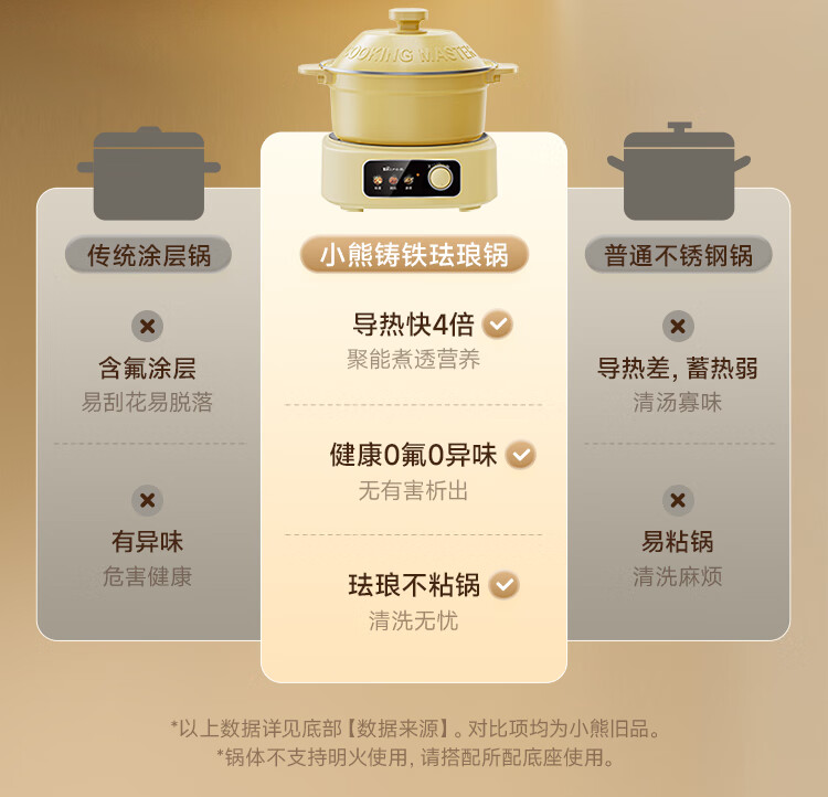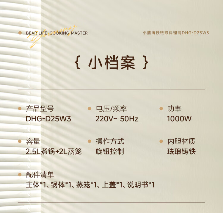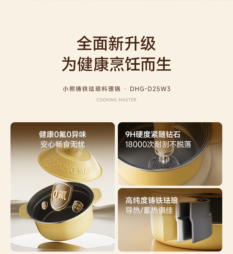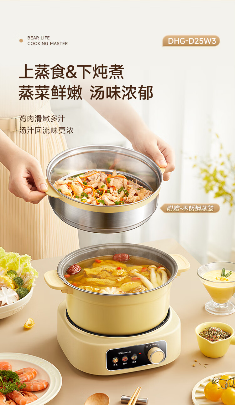 小熊铸铁珐琅电热火锅+蒸屉2.5L