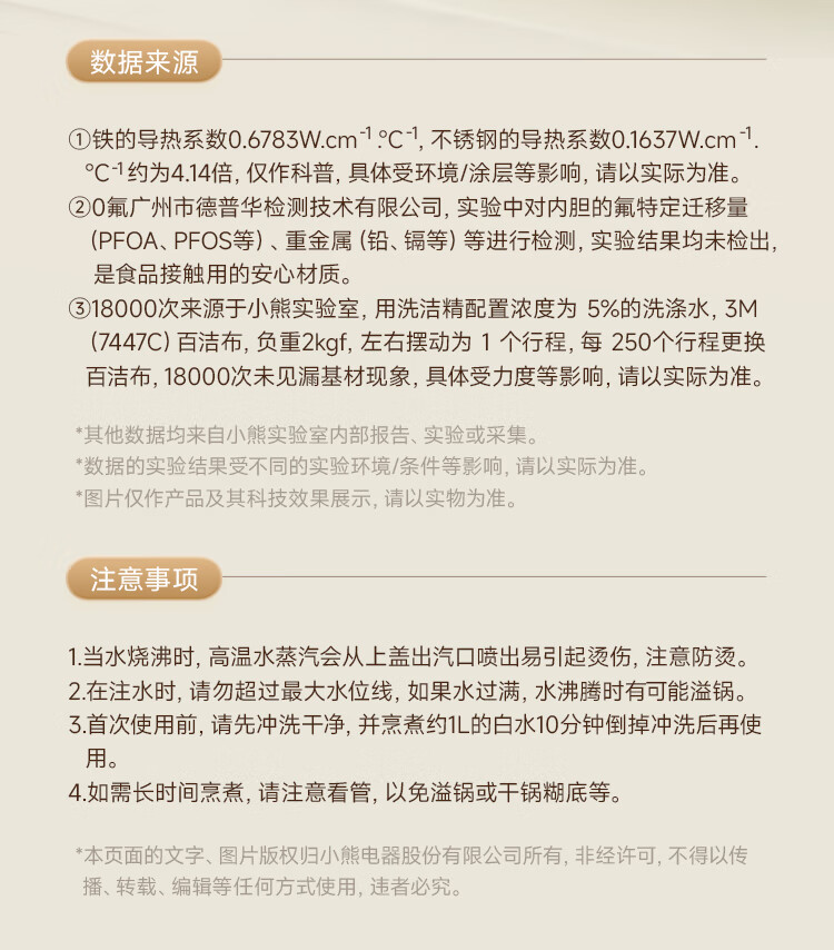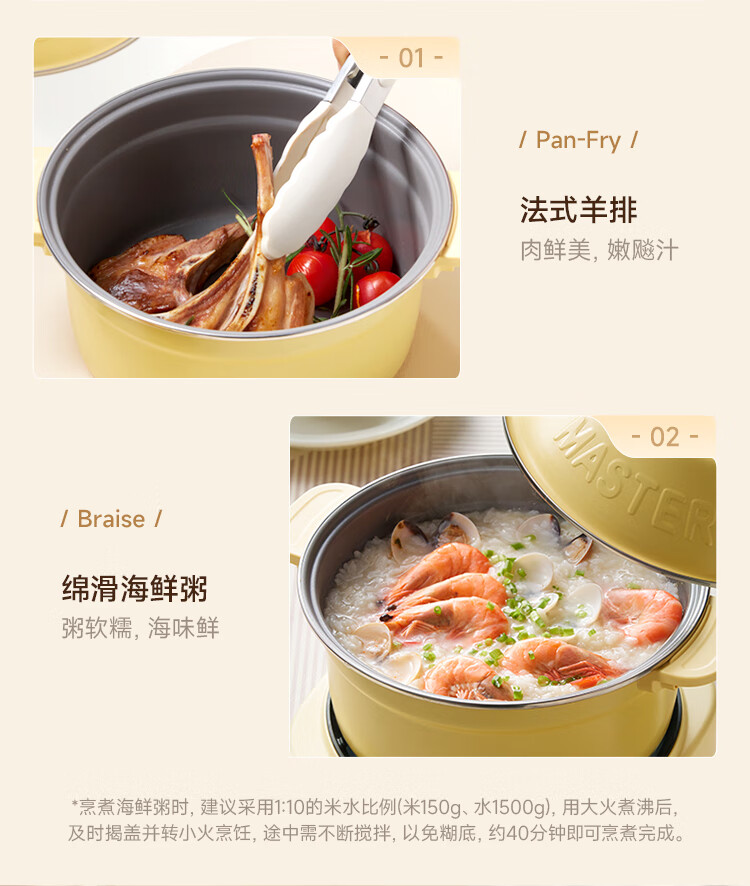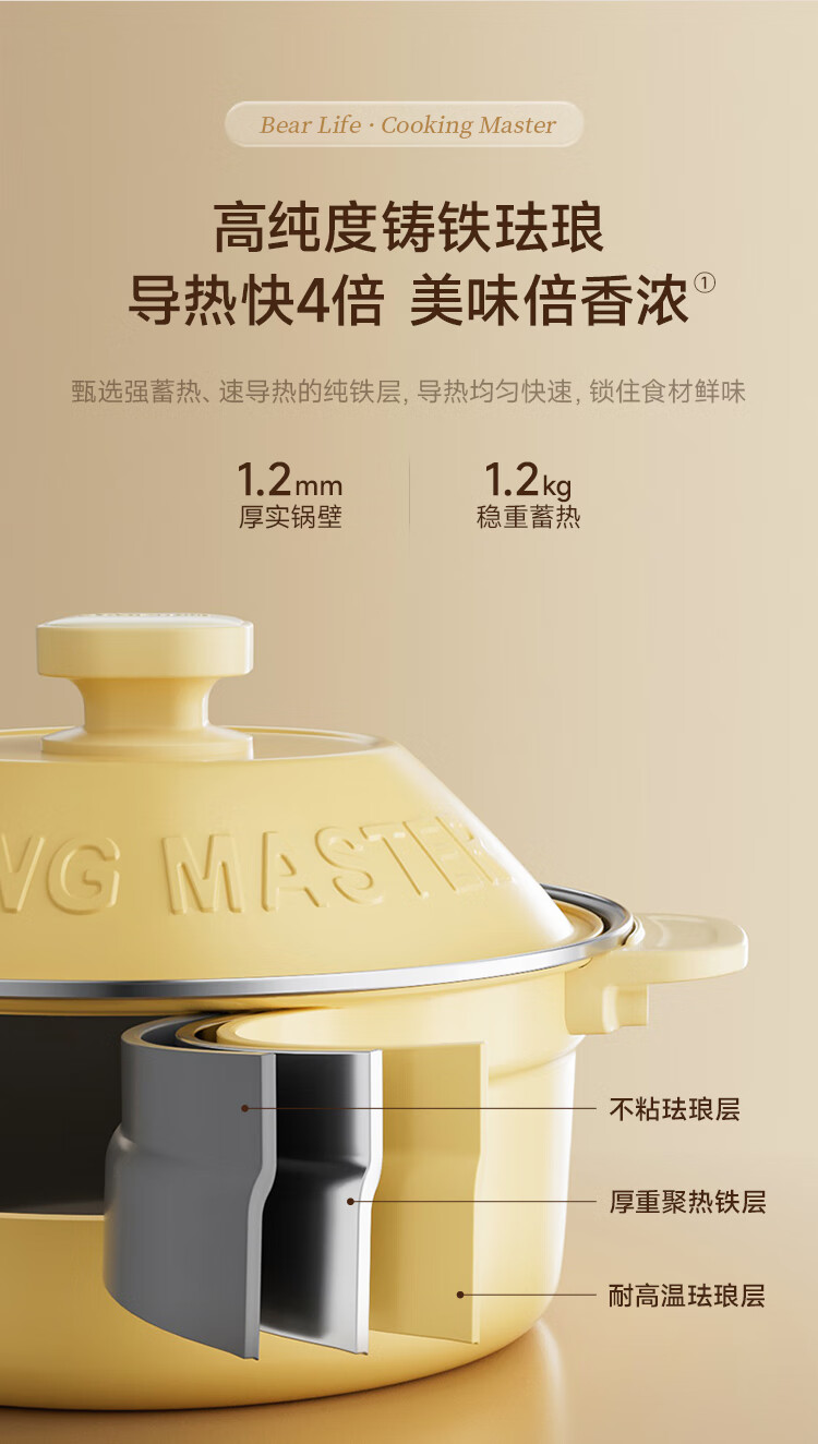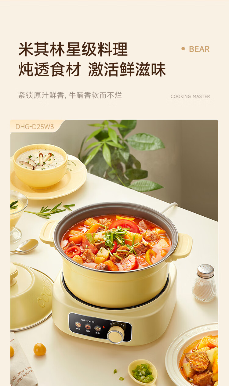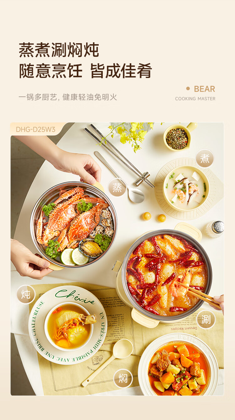 小熊铸铁珐琅电热火锅+蒸屉2.5L