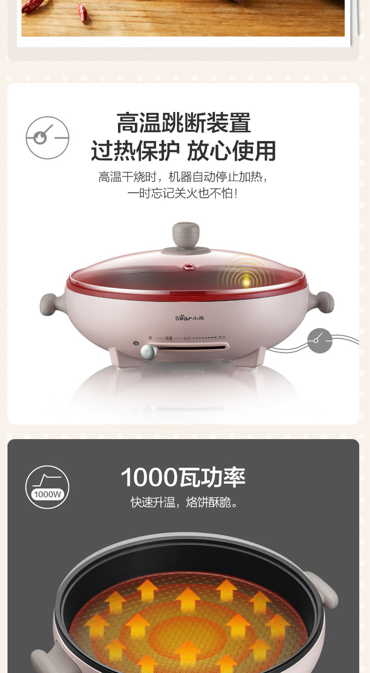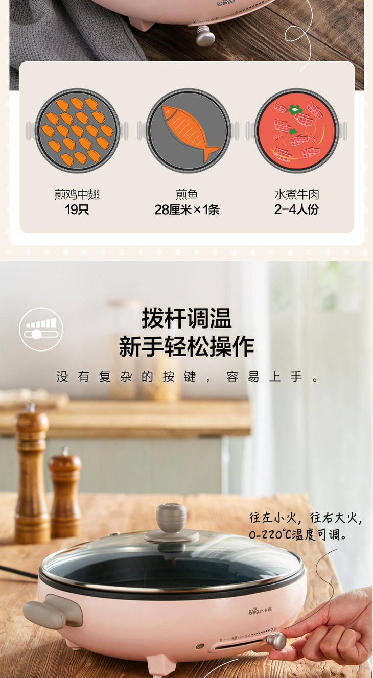 【家用电器】小熊电饼铛电煎锅不粘锅煎烙炸煮电火锅DBC-D12C1温度可调