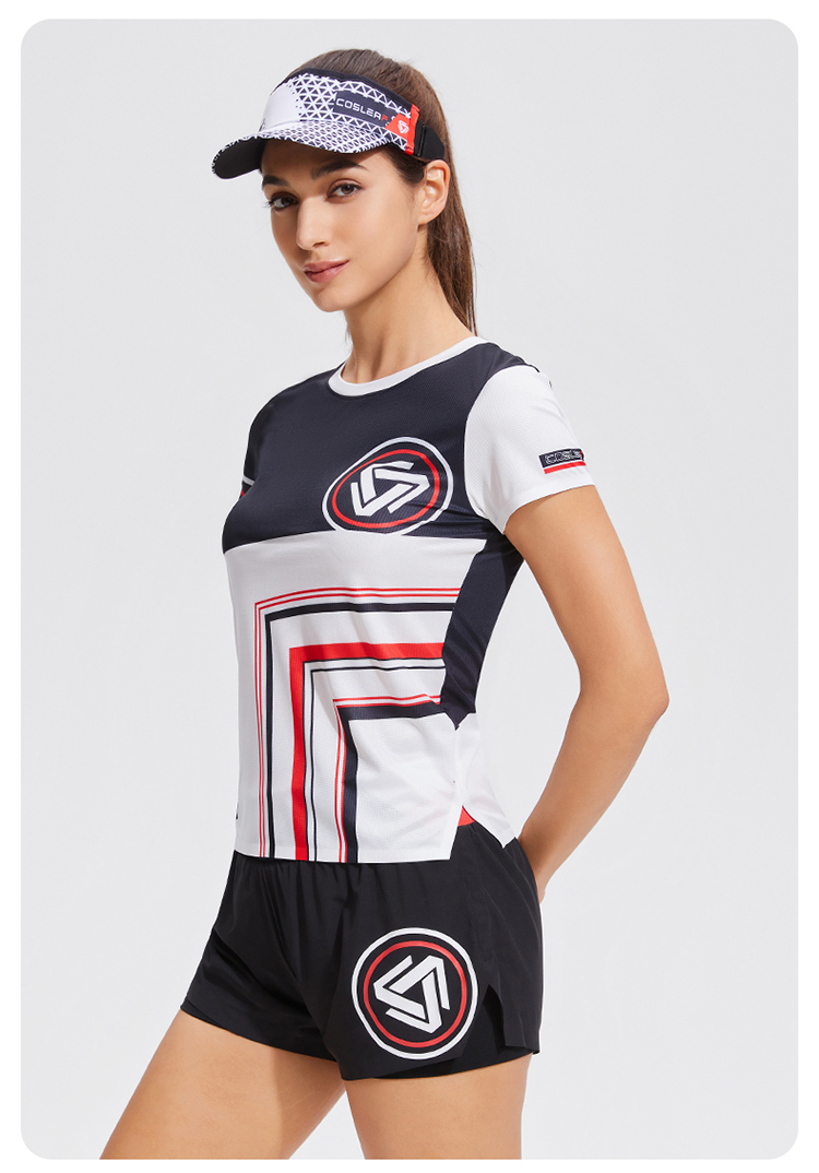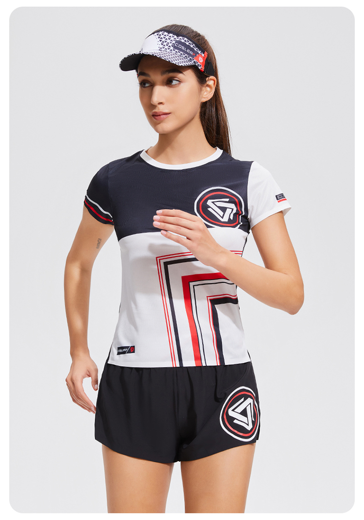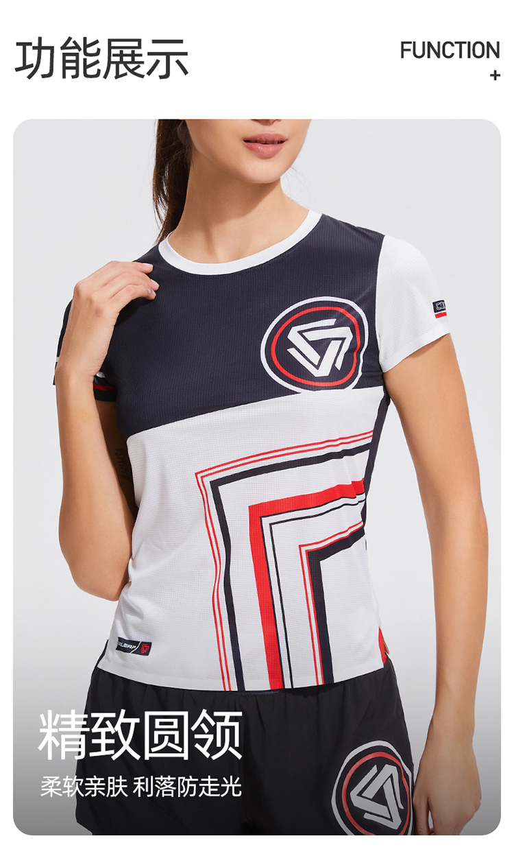 夏季科里芙圆领速干T恤跑步马拉松运动短袖拼色时尚女