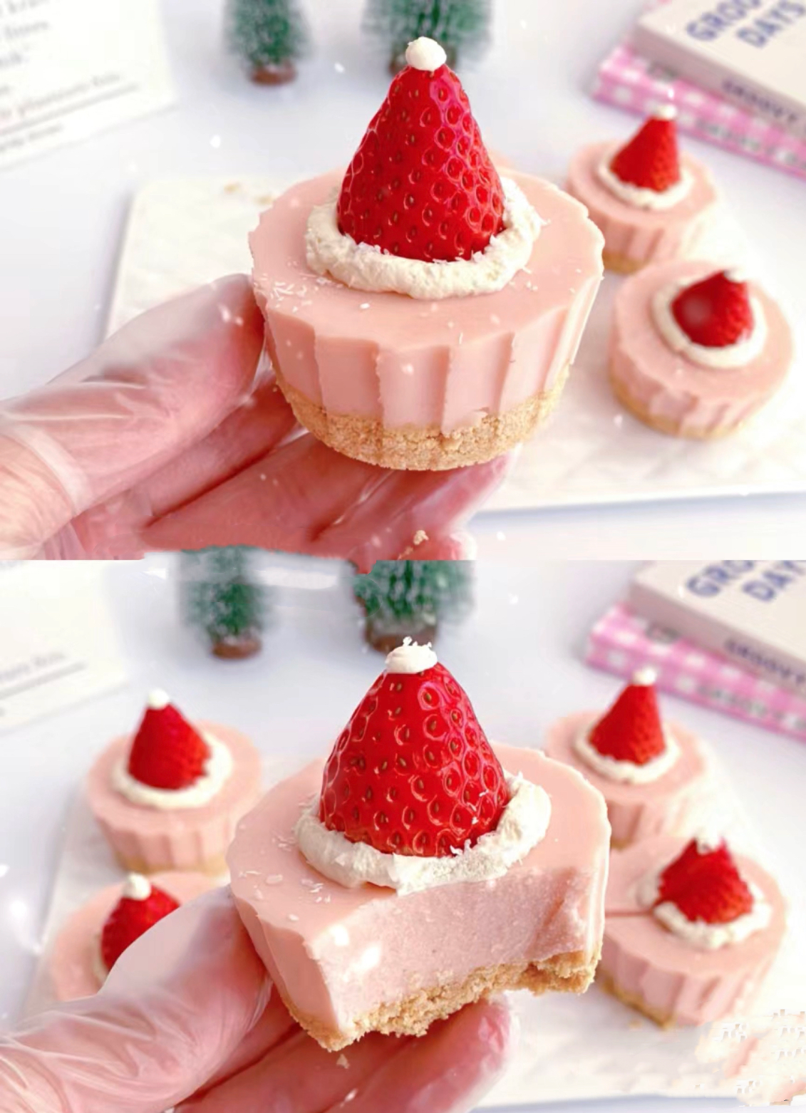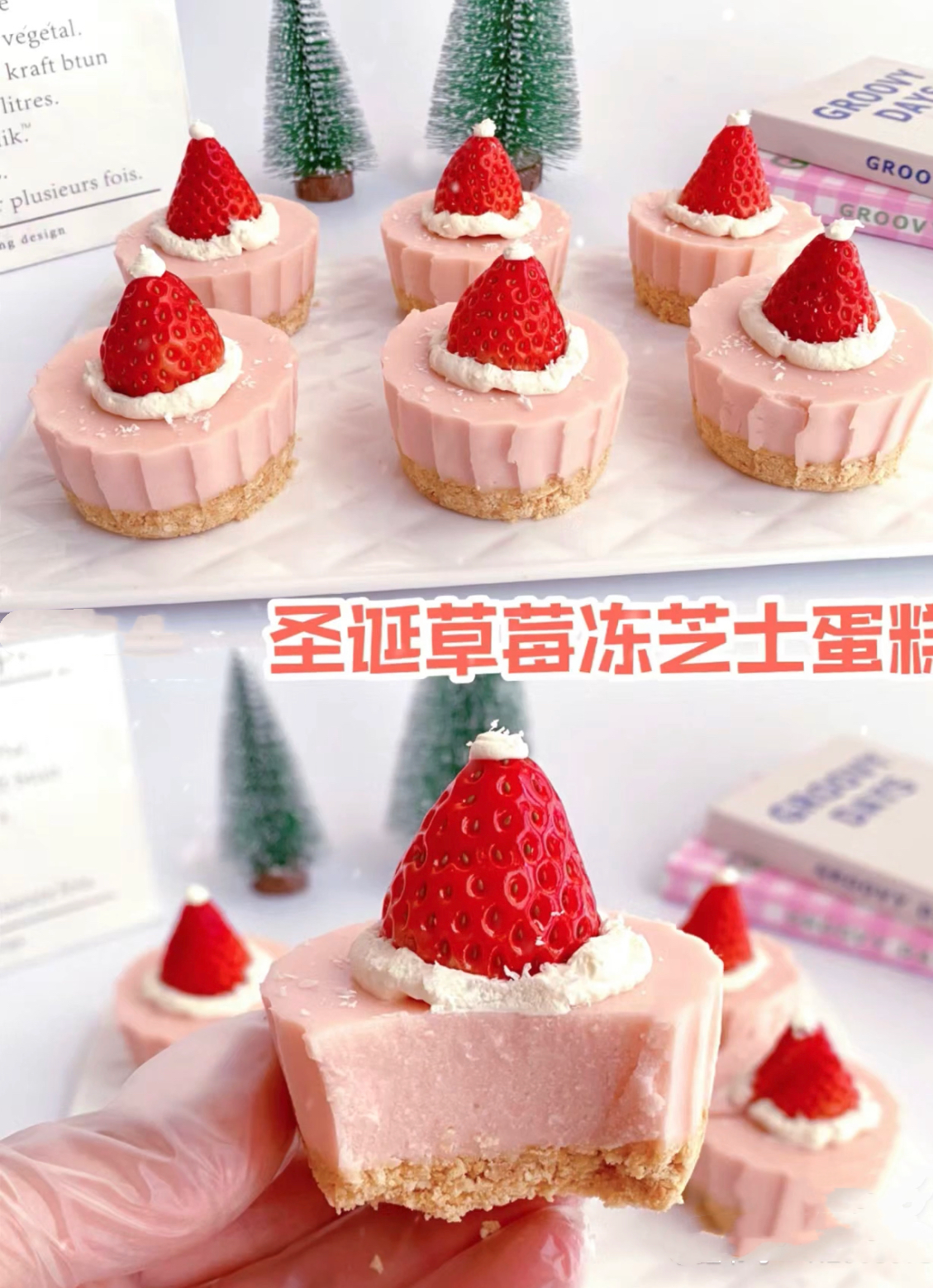 圣诞节冻芝士杯子蛋糕下午茶点心