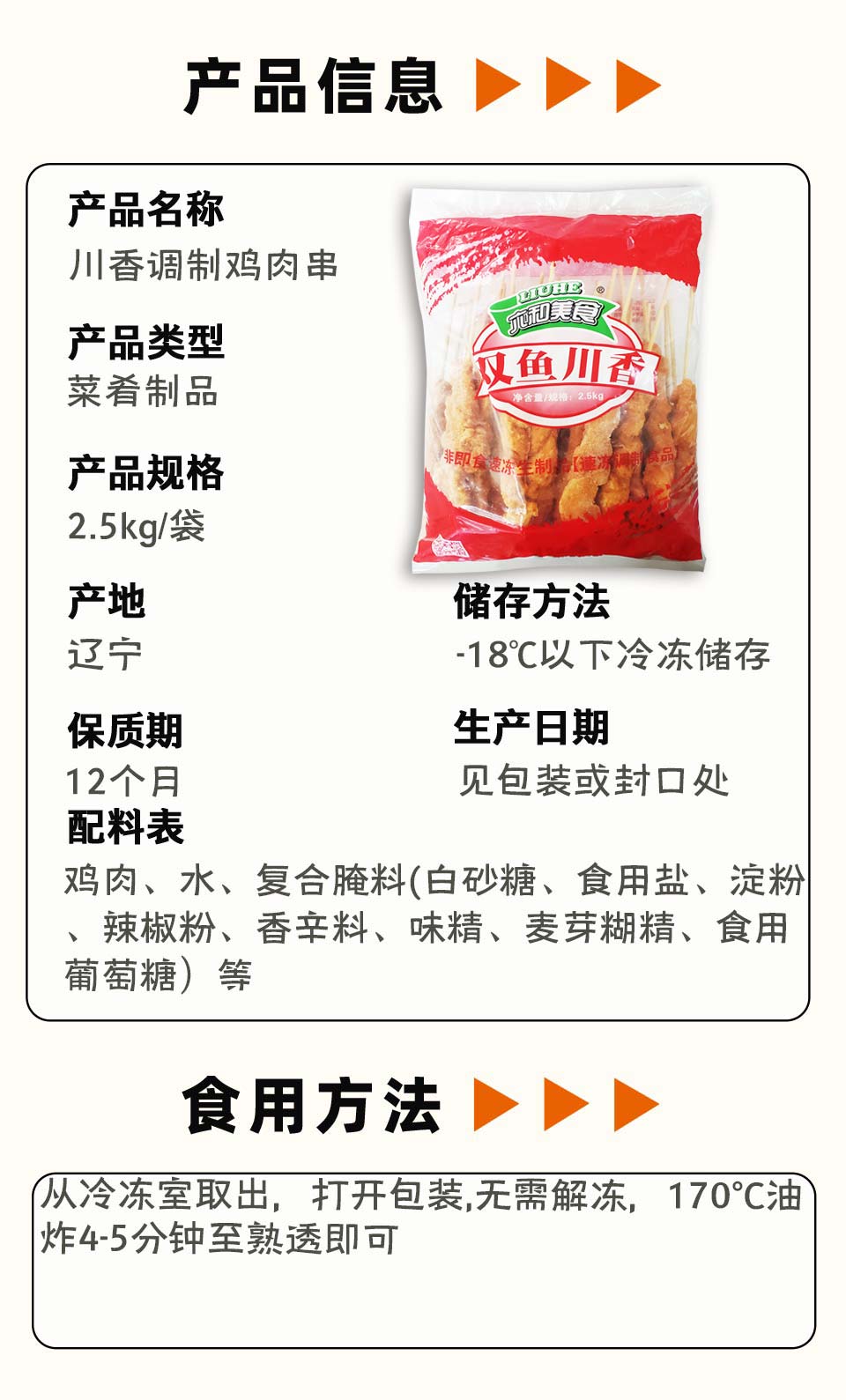 25B六和双鱼川香调制鸡肉串2.5kg/袋(40个) 4袋/件