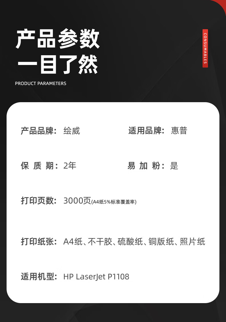 绘威 适用惠普P1108硒鼓HP Laserjet p1108激光打印机硒鼓 碳粉复印一体机墨盒硒鼓 墨粉盒