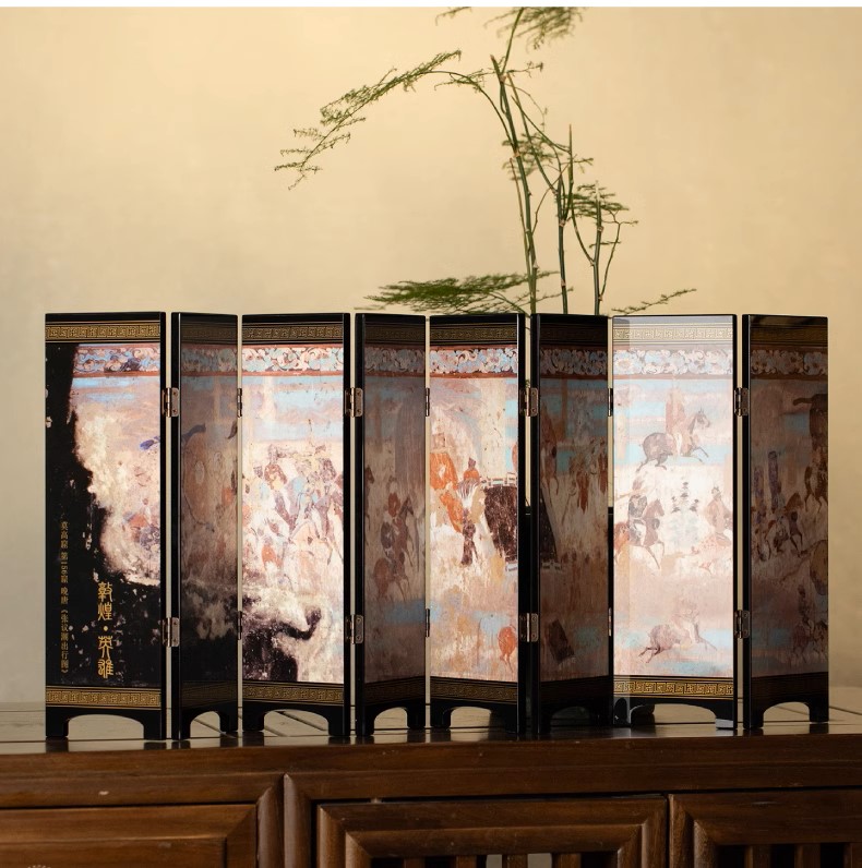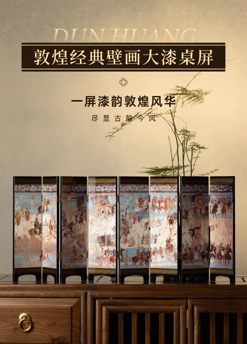 敦煌研究院 经典壁画大漆桌屏 桌面装饰摆件高级感办公室创意礼物