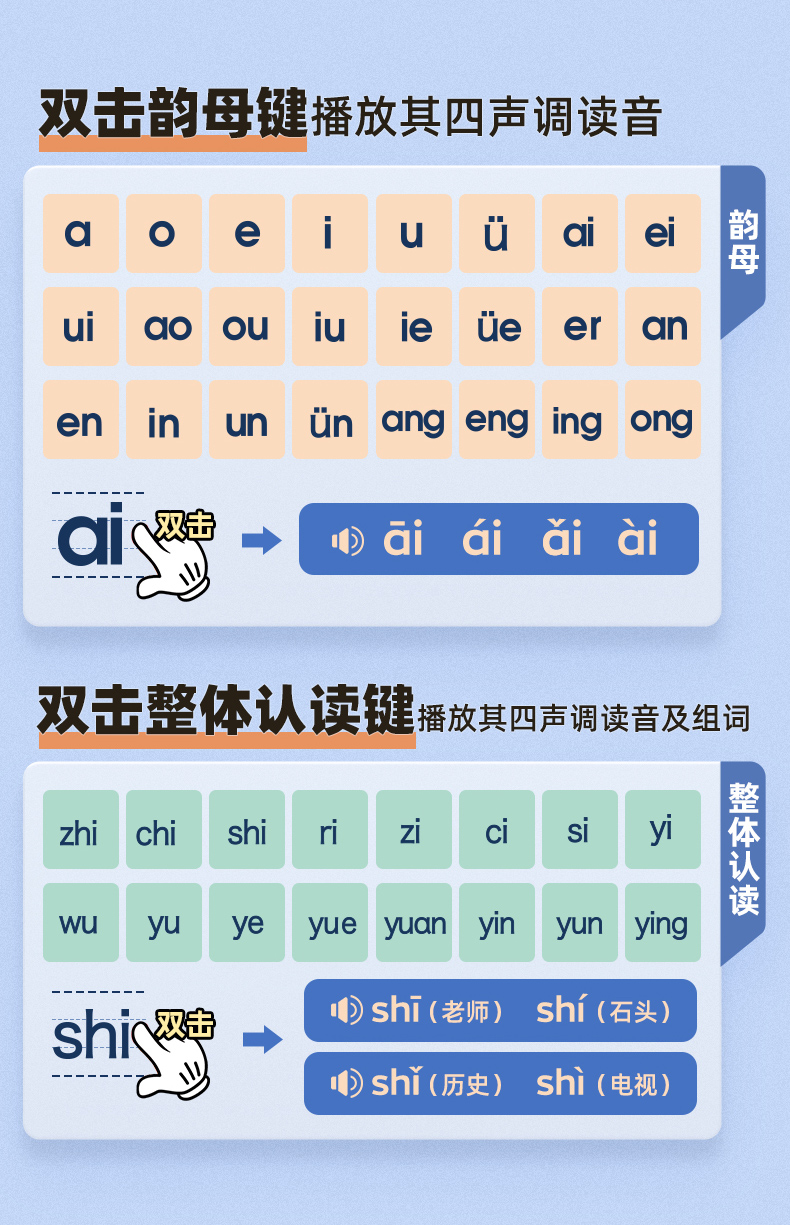 幼儿童拼音学习神器玩具挂图早教机拼读卡训练声韵字母表墙贴