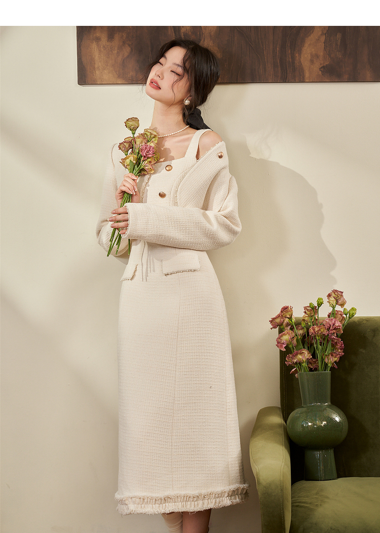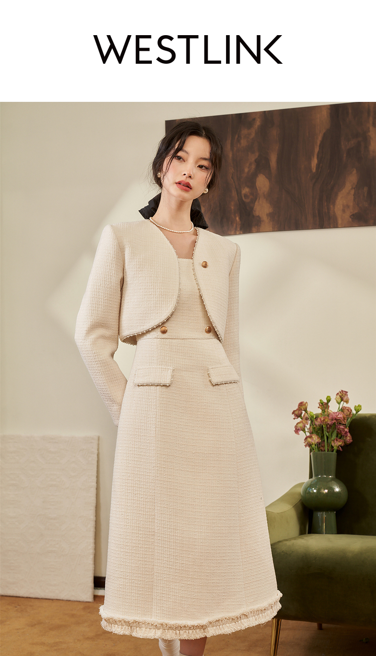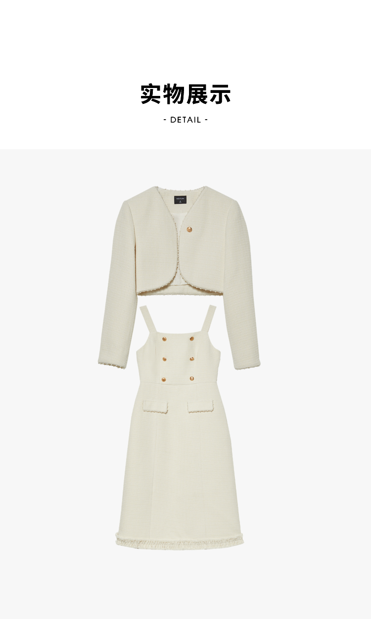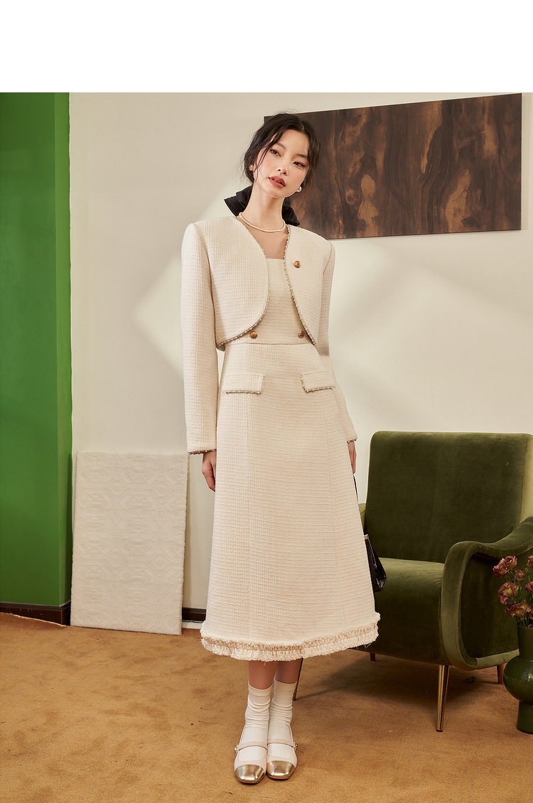 西遇法式小香风开衫套装裙2023秋冬新款短款外套通勤风流苏吊带裙V2132595/V2132594
