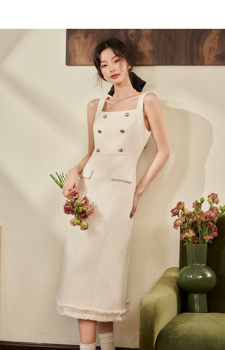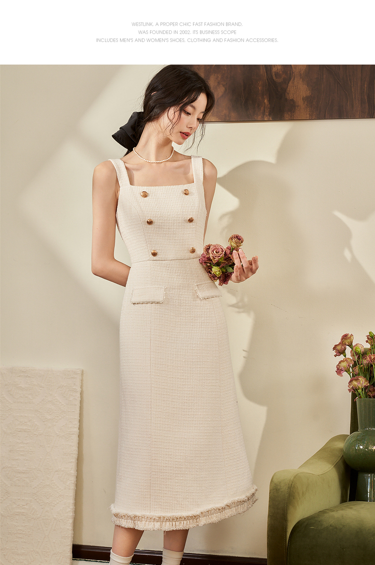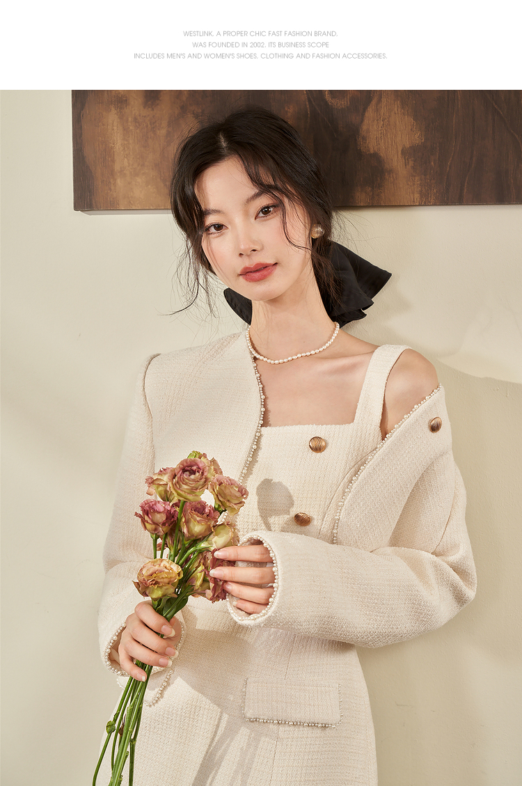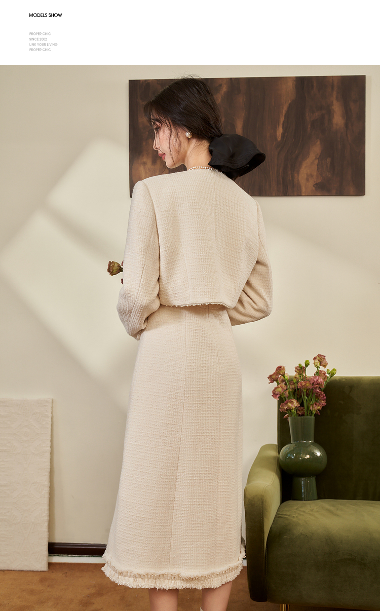 西遇法式小香风开衫套装裙2023秋冬新款短款外套通勤风流苏吊带裙V2132595/V2132594