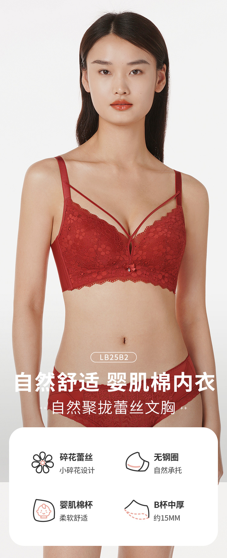都市丽人自然舒适B杯常规内衣蕾丝中厚3/4杯文胸三排扣无钢圈LB25B2