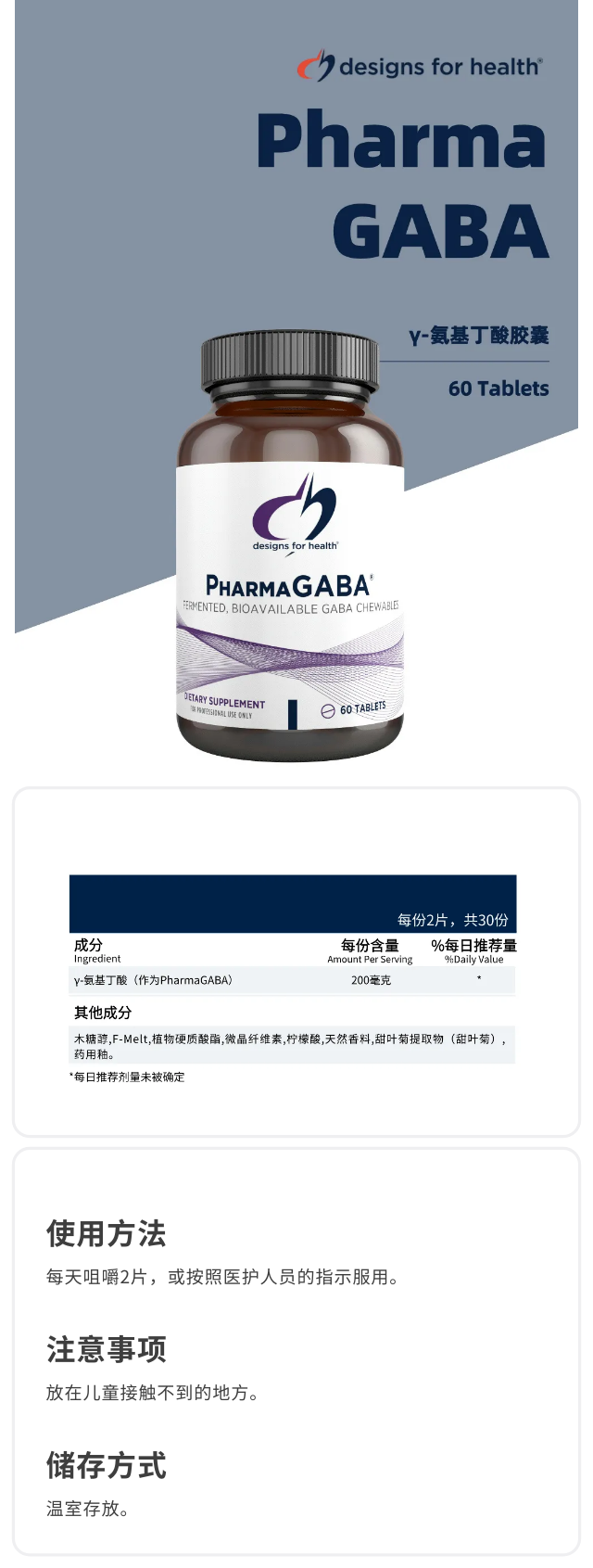 【香港直邮】海淘 健康设计Designs for health PharmaGABA γ-氨基丁酸胶囊 60粒/瓶 27/04