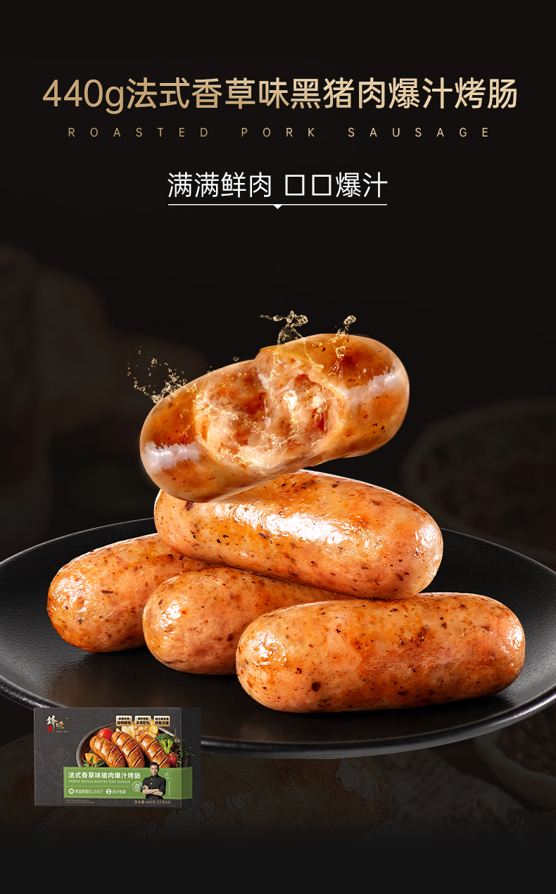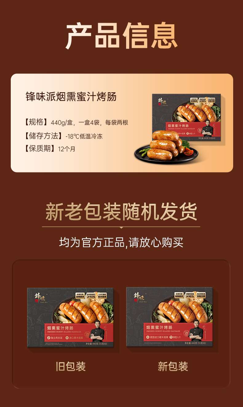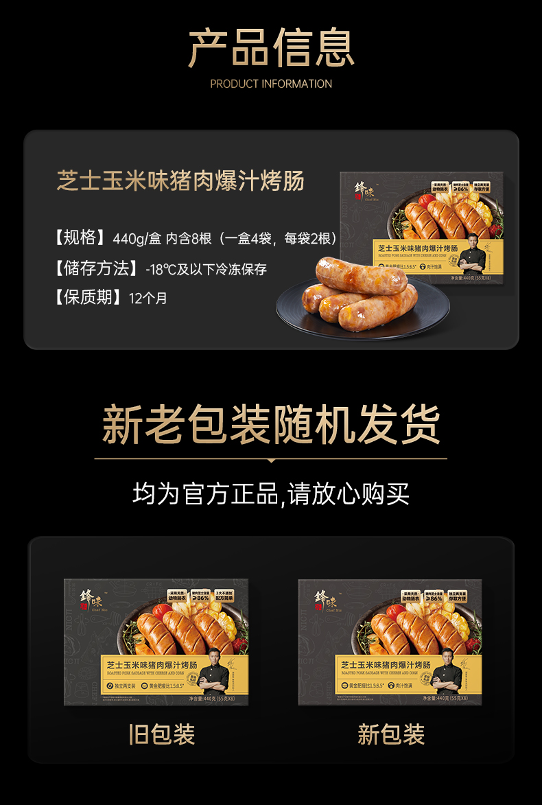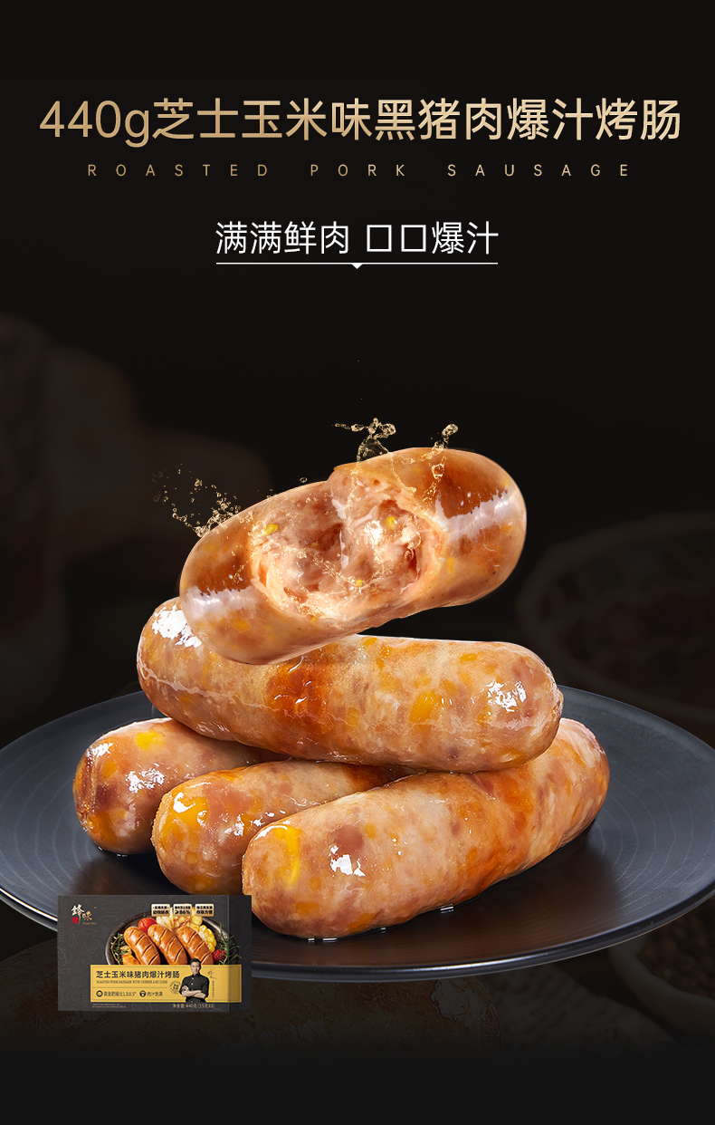 【自营】锋味派火山石烤肠香肠芝士玉米味440g/盒早餐火腿肠热狗肠空气炸锅 黑胡椒烤肠原味烤肠混合口味