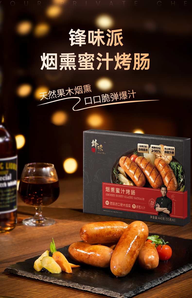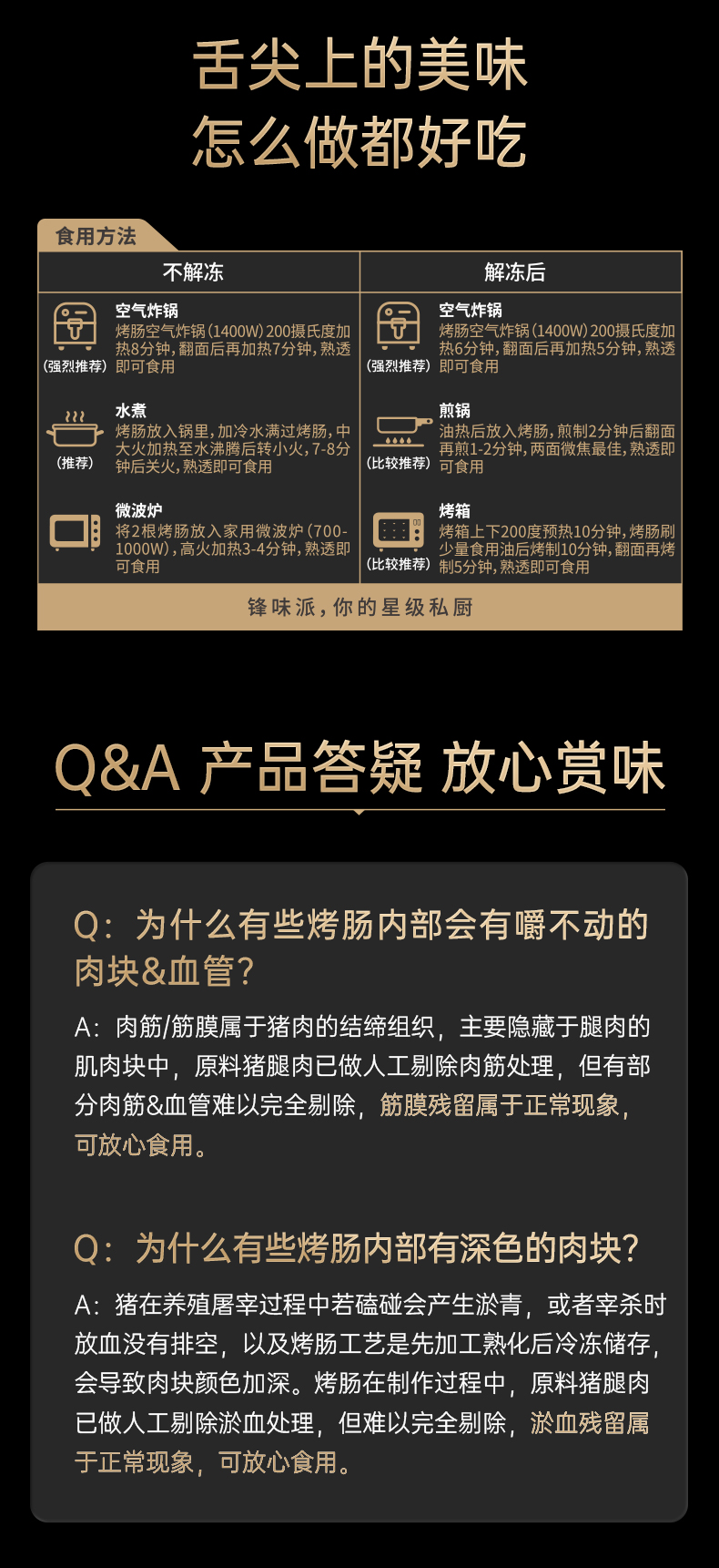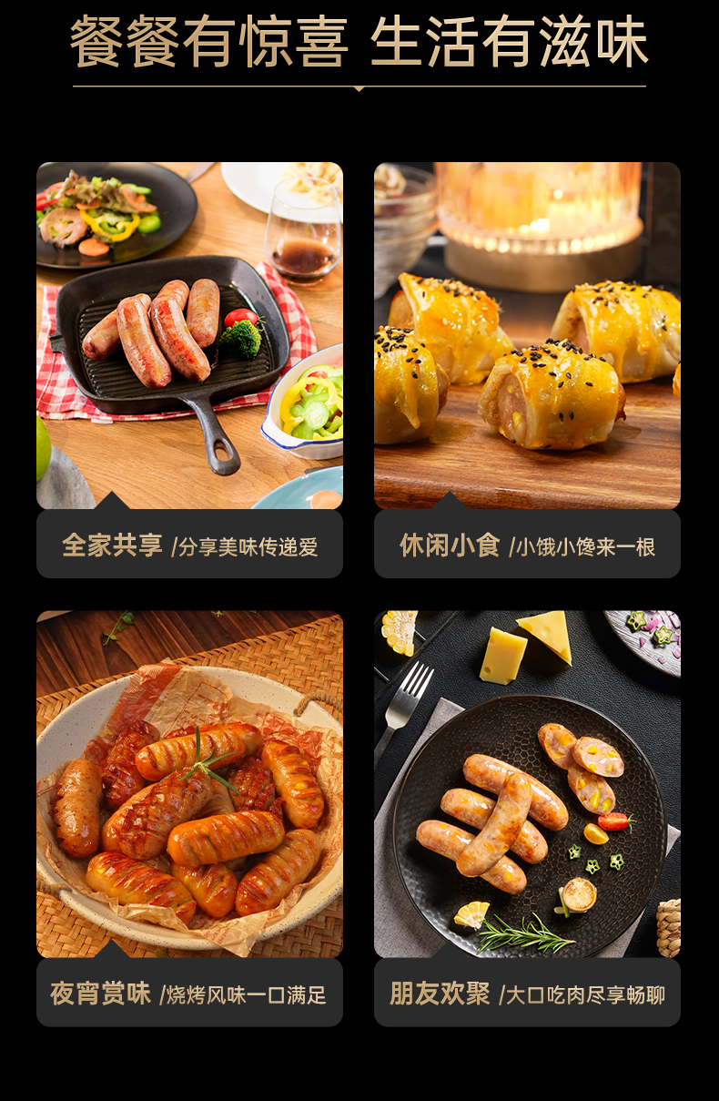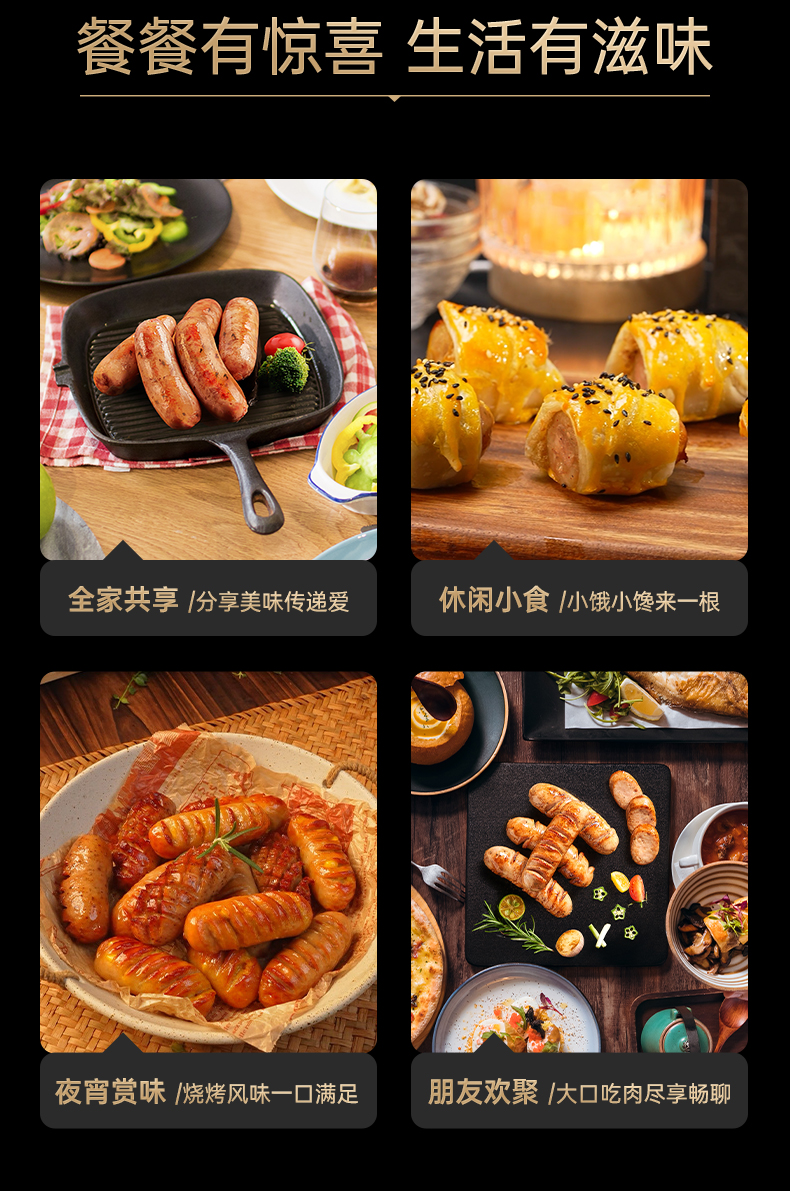 【自营】锋味派火山石烤肠香肠芝士玉米味440g/盒早餐火腿肠热狗肠空气炸锅 黑胡椒烤肠原味烤肠混合口味