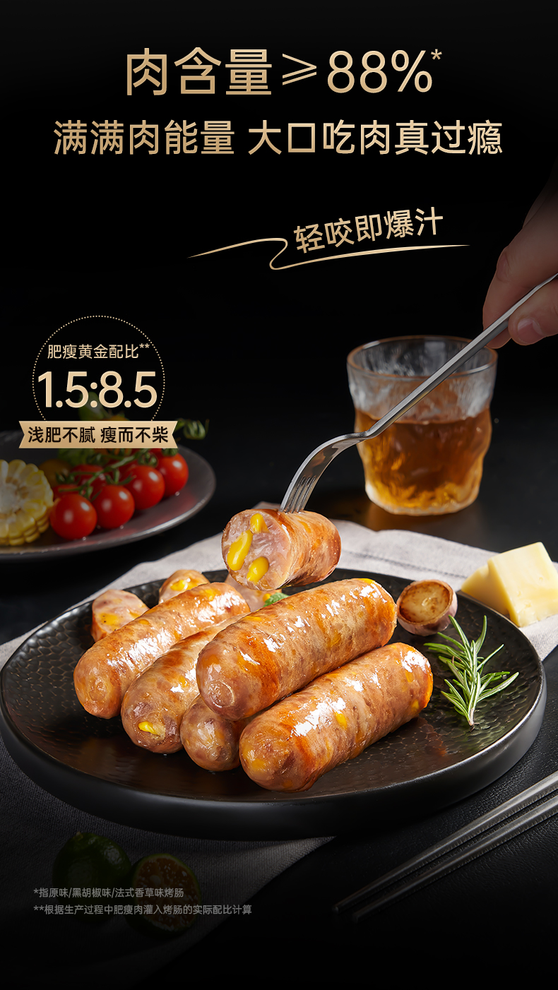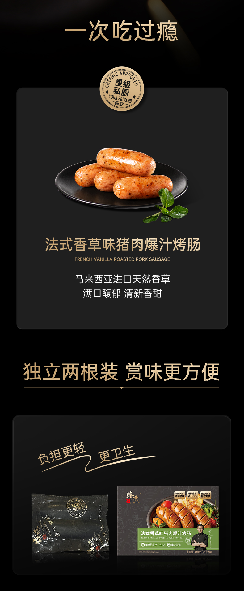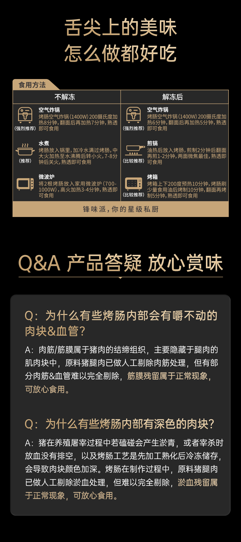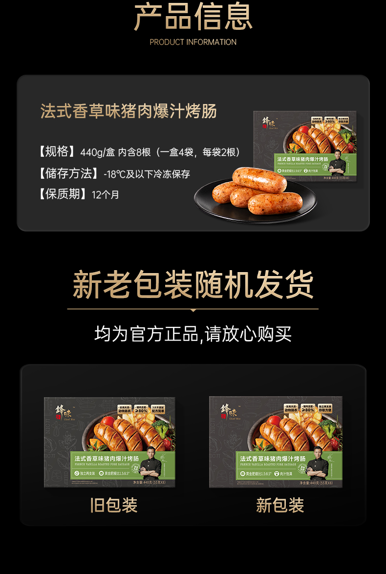 【自营】锋味派火山石烤肠香肠芝士玉米味440g/盒早餐火腿肠热狗肠空气炸锅 黑胡椒烤肠原味烤肠混合口味