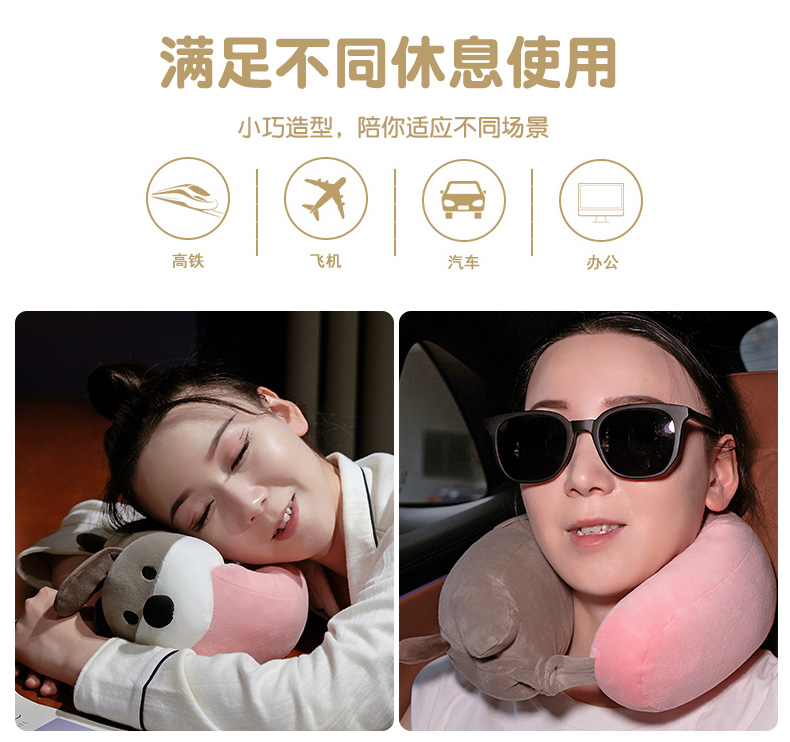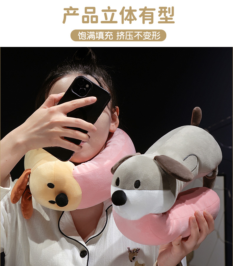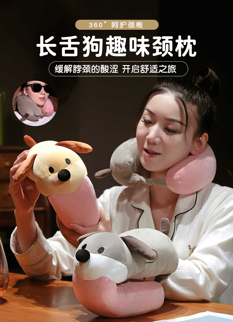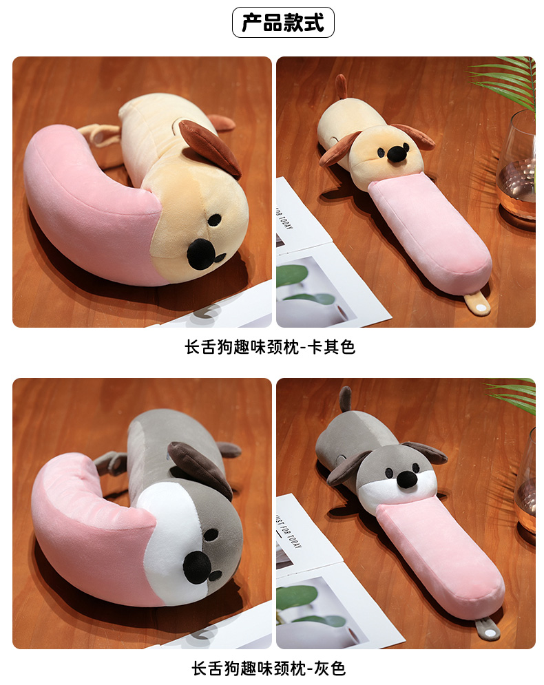 自然醒长舌狗系列趣味U枕创意狗狗毛绒玩具公仔护颈枕飞机旅行头枕QYL
