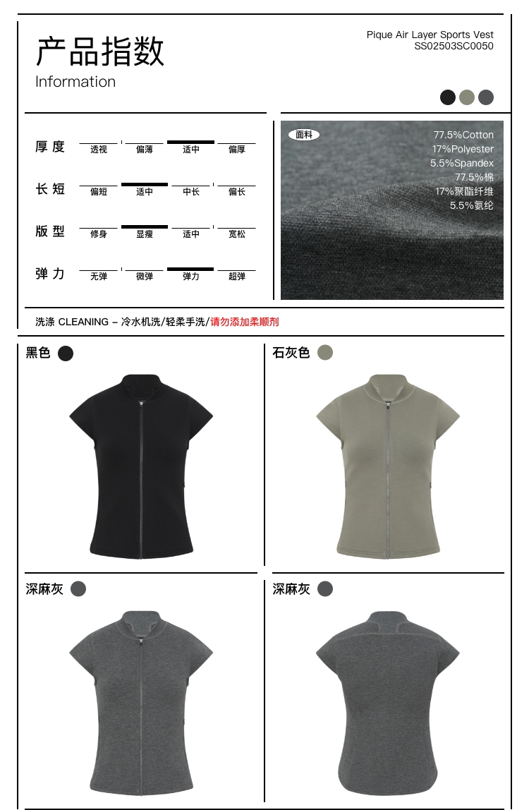 oneup珠地空气层运动马甲