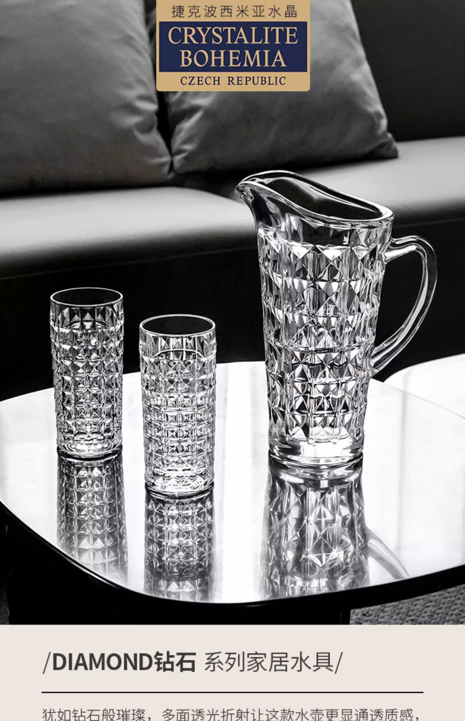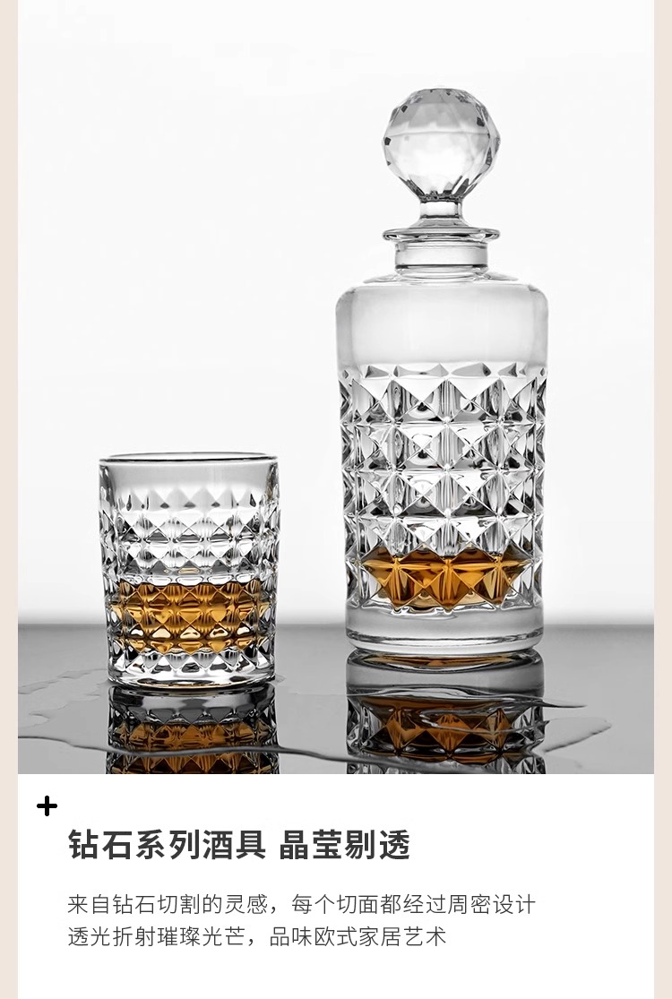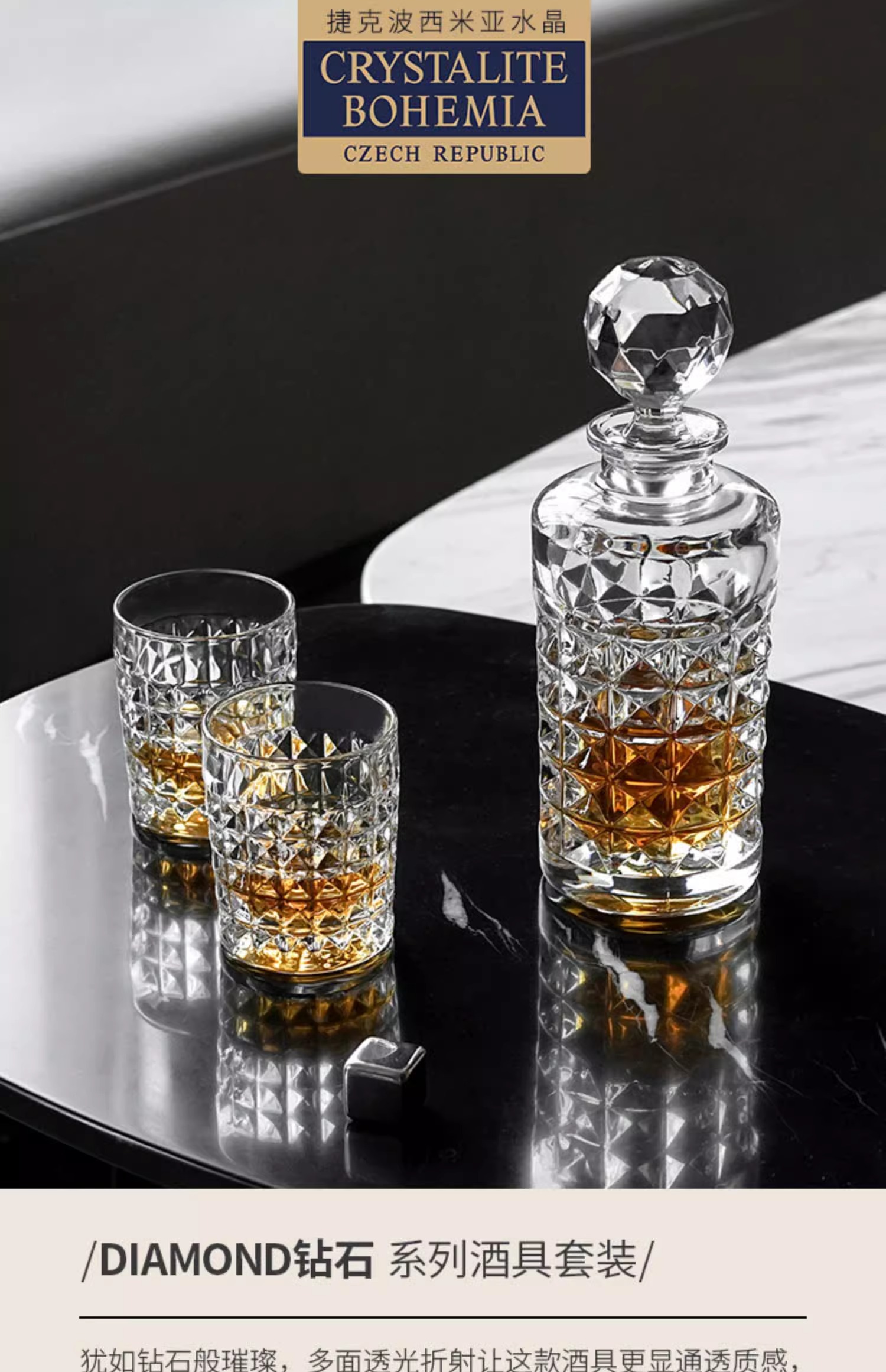 【样品特惠5.5折,仅1套,无货退款】捷克进口BOHEMIA 水晶玻璃威士忌烈酒杯洋酒杯果汁杯创意啤酒杯子钻石威士忌套装1樽6杯