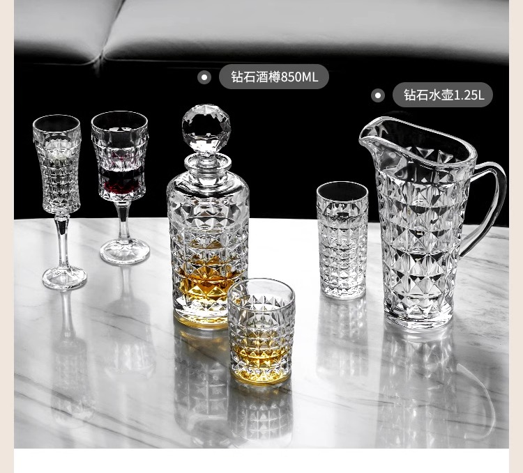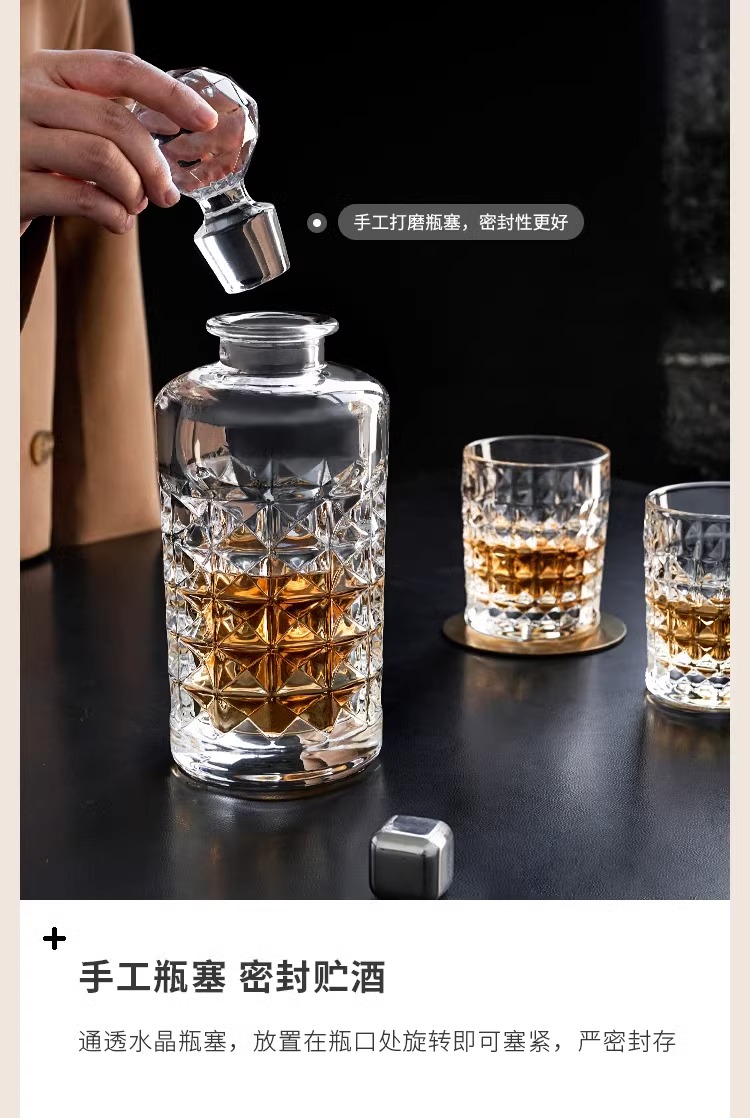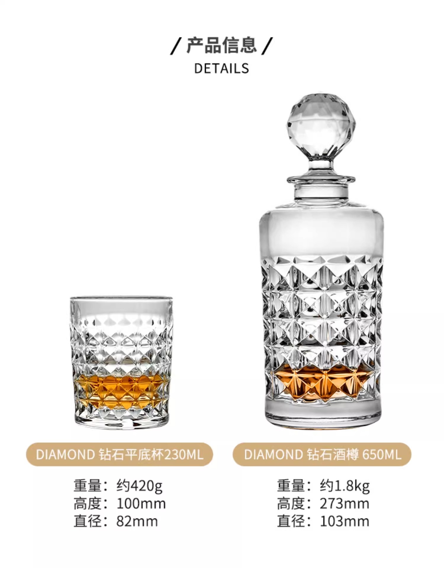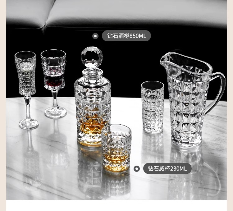 【样品特惠5.5折,仅1套,无货退款】捷克进口BOHEMIA 水晶玻璃威士忌烈酒杯洋酒杯果汁杯创意啤酒杯子钻石威士忌套装1樽6杯