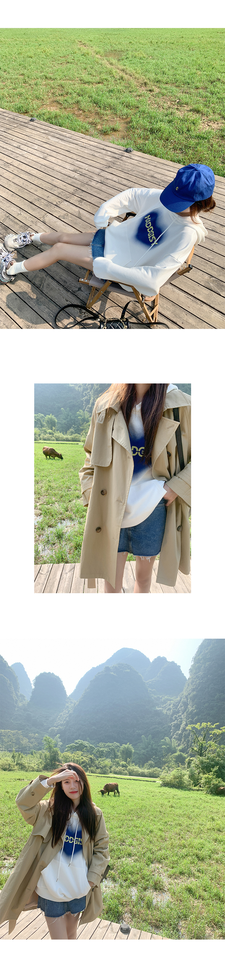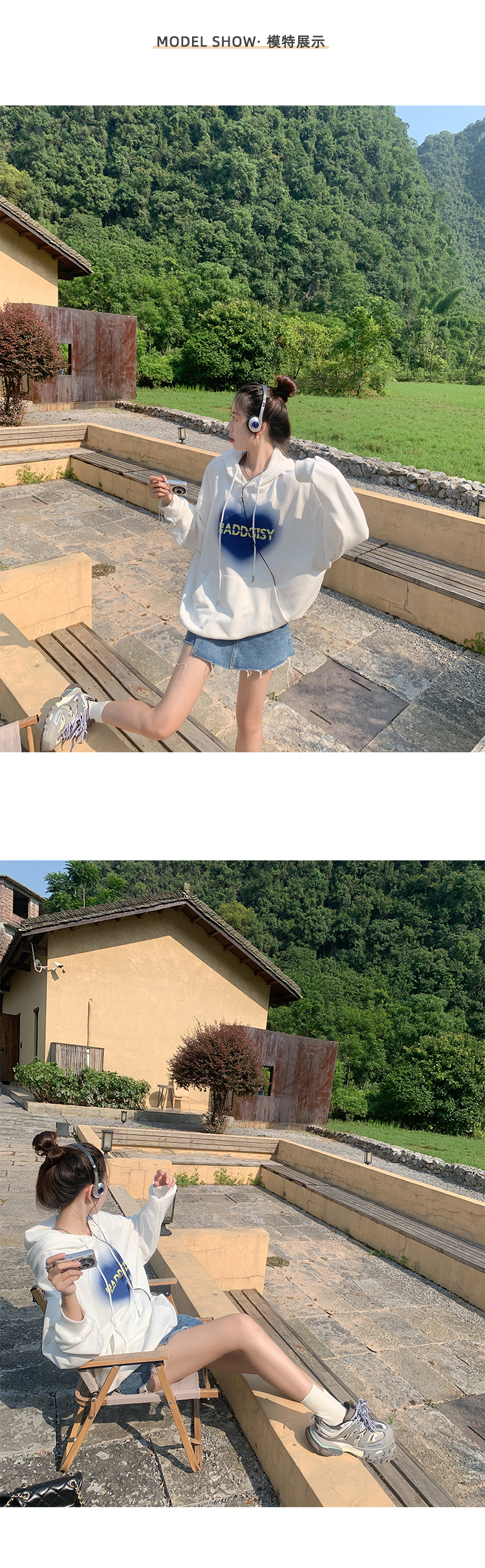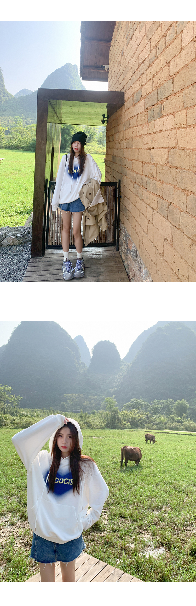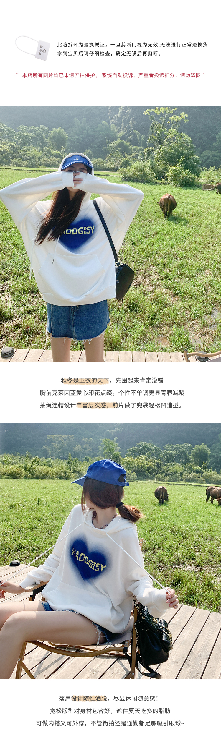 白色长袖连帽卫衣
