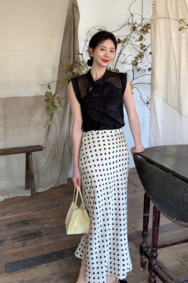 ELLA JADE 新中式盘扣上衣波点半裙套装 20288