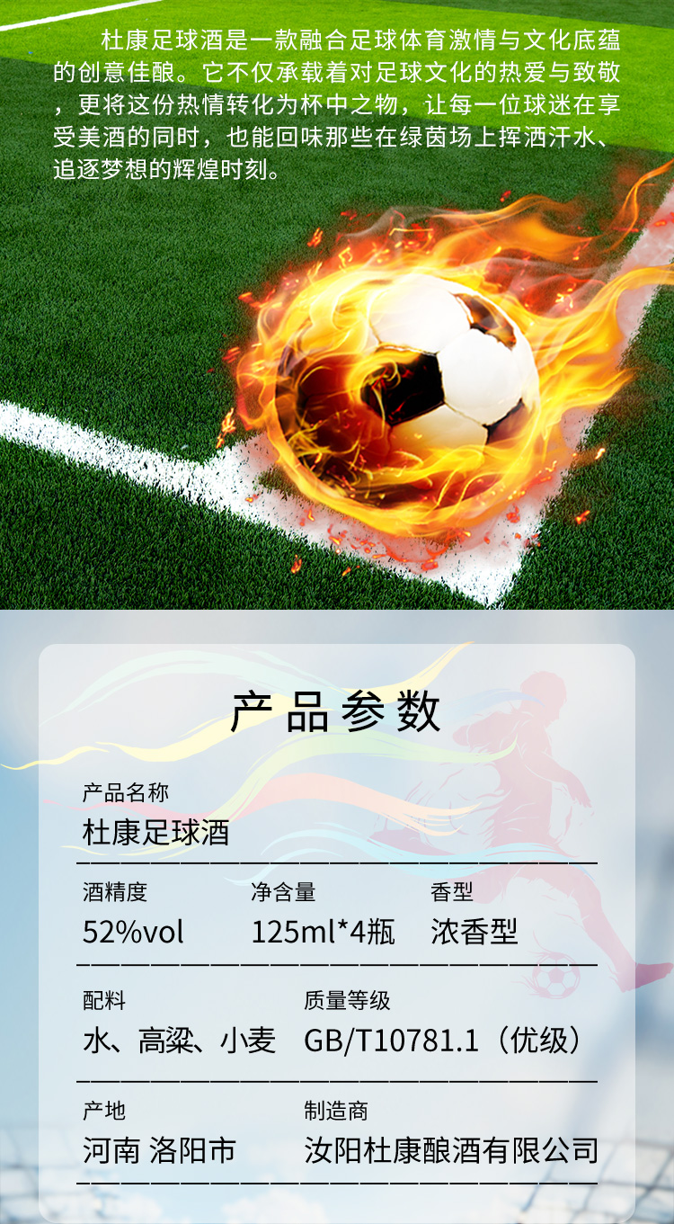 【99到手4瓶礼盒,有礼袋】杜康足球酒 52度125ml*4瓶优级 浓香型 纯粮食酒 (拍5盒发整箱)