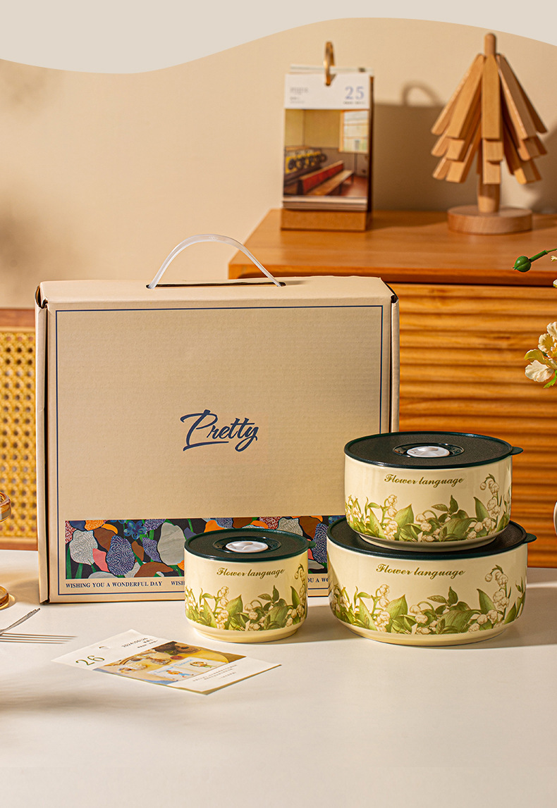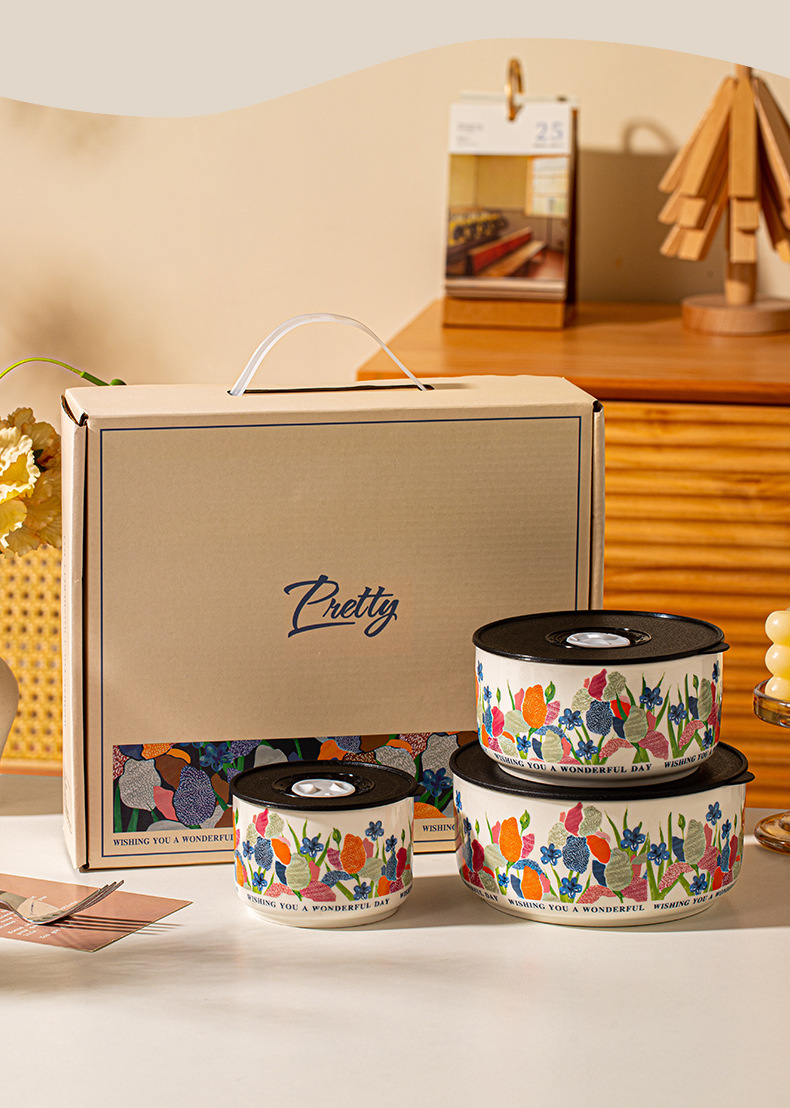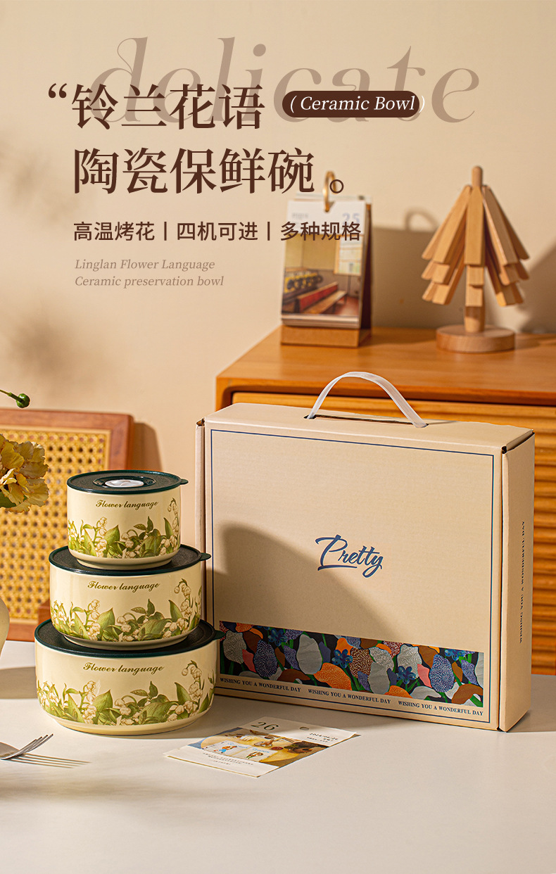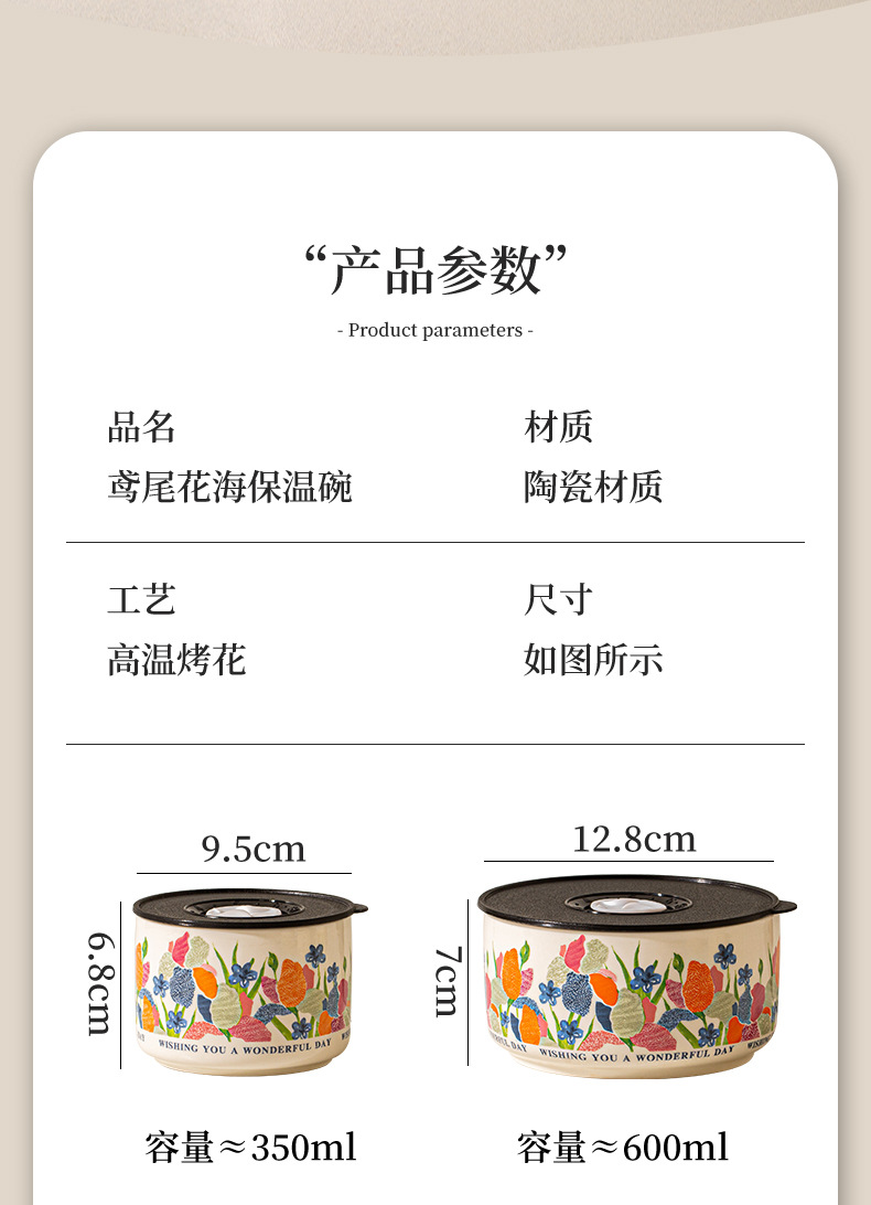 【食品级 陶瓷碗饭盒 】可用微波炉家用带盖便当盒 密封碗泡面碗 节日实用送礼礼品