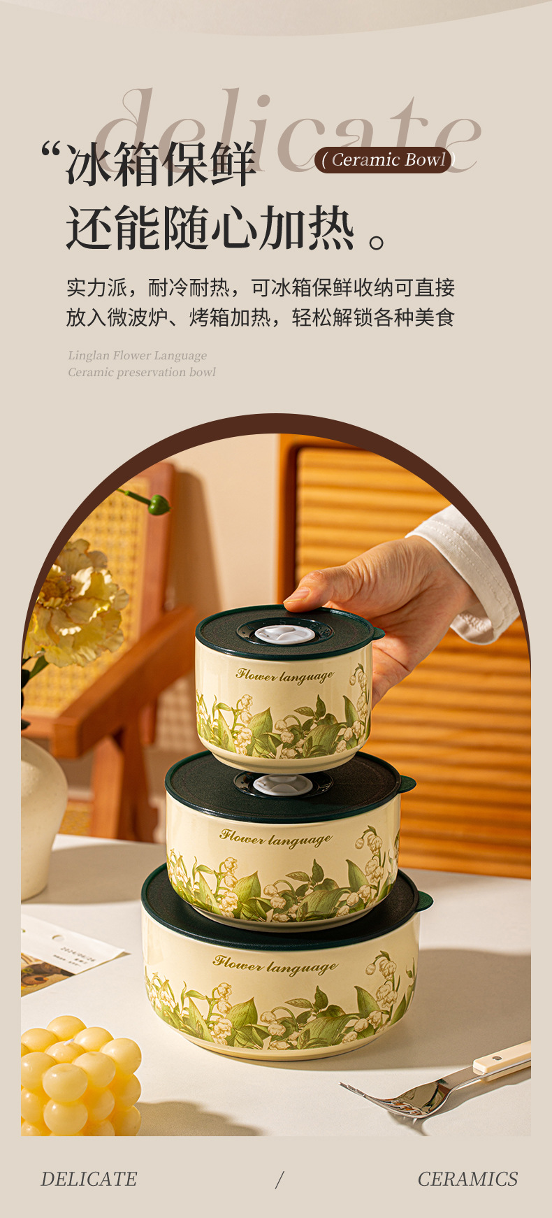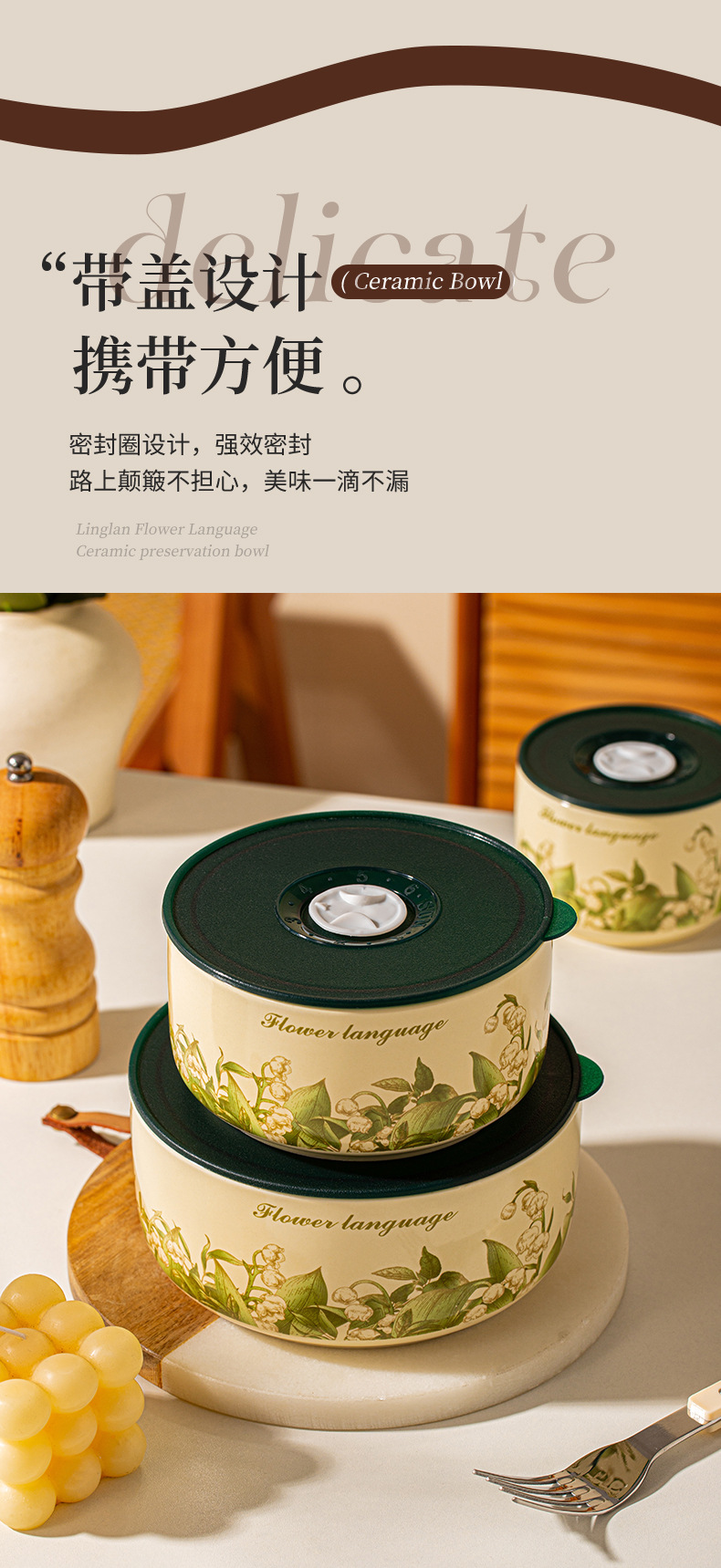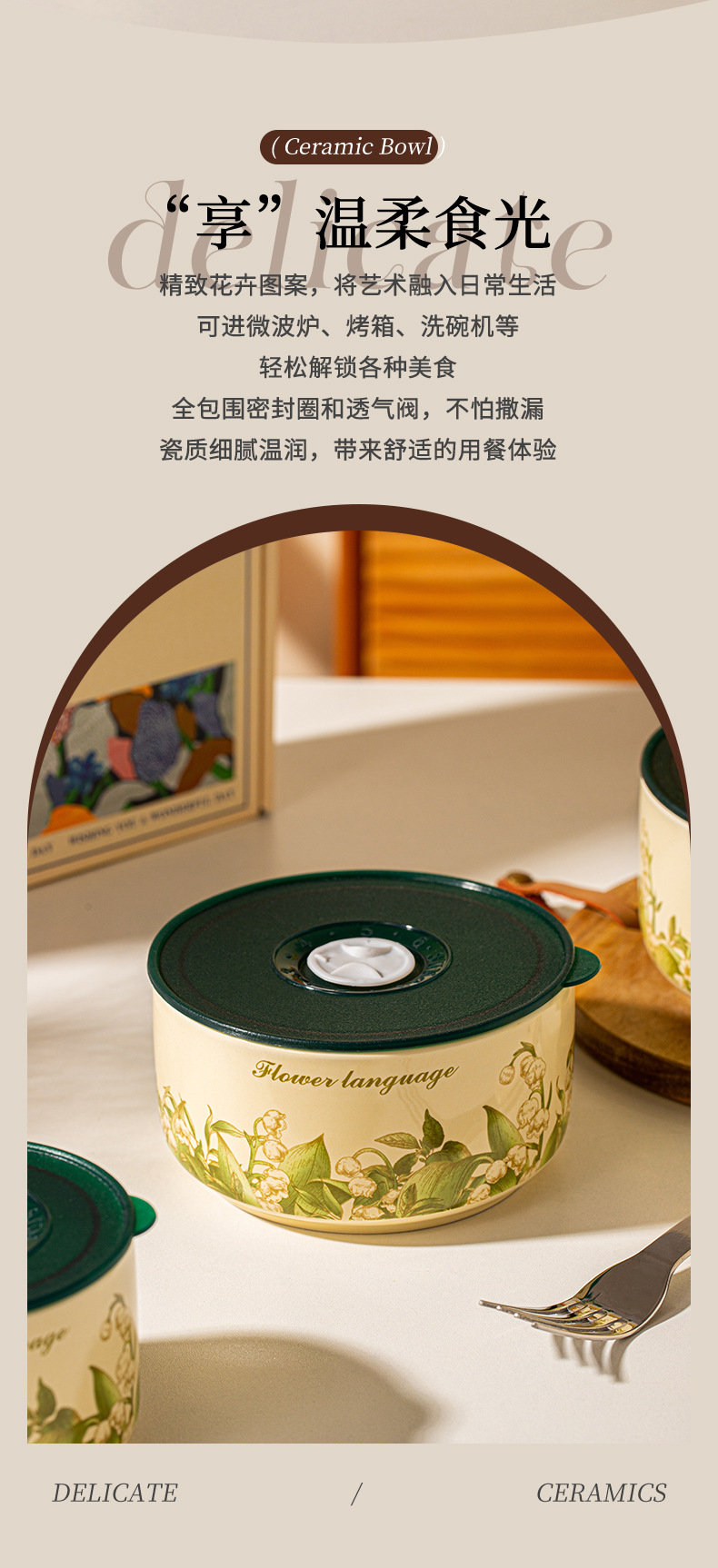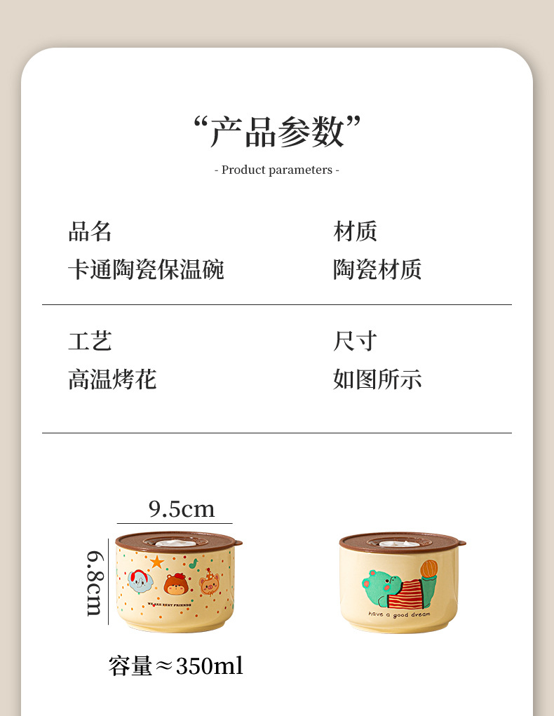 【食品级 陶瓷碗饭盒 】可用微波炉家用带盖便当盒 密封碗泡面碗 节日实用送礼礼品